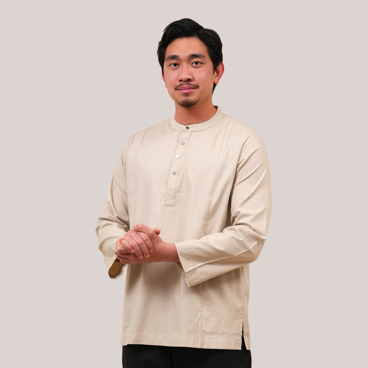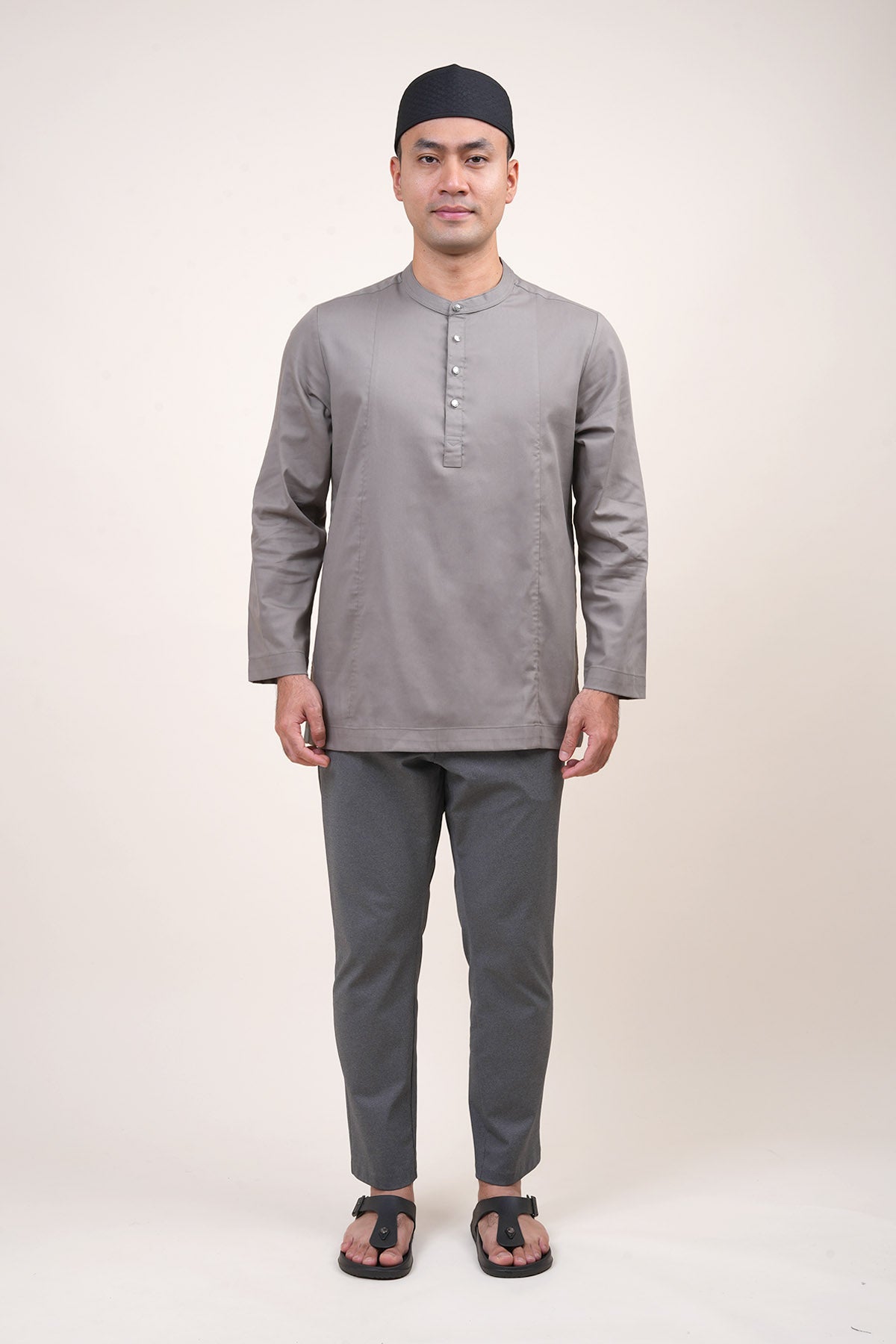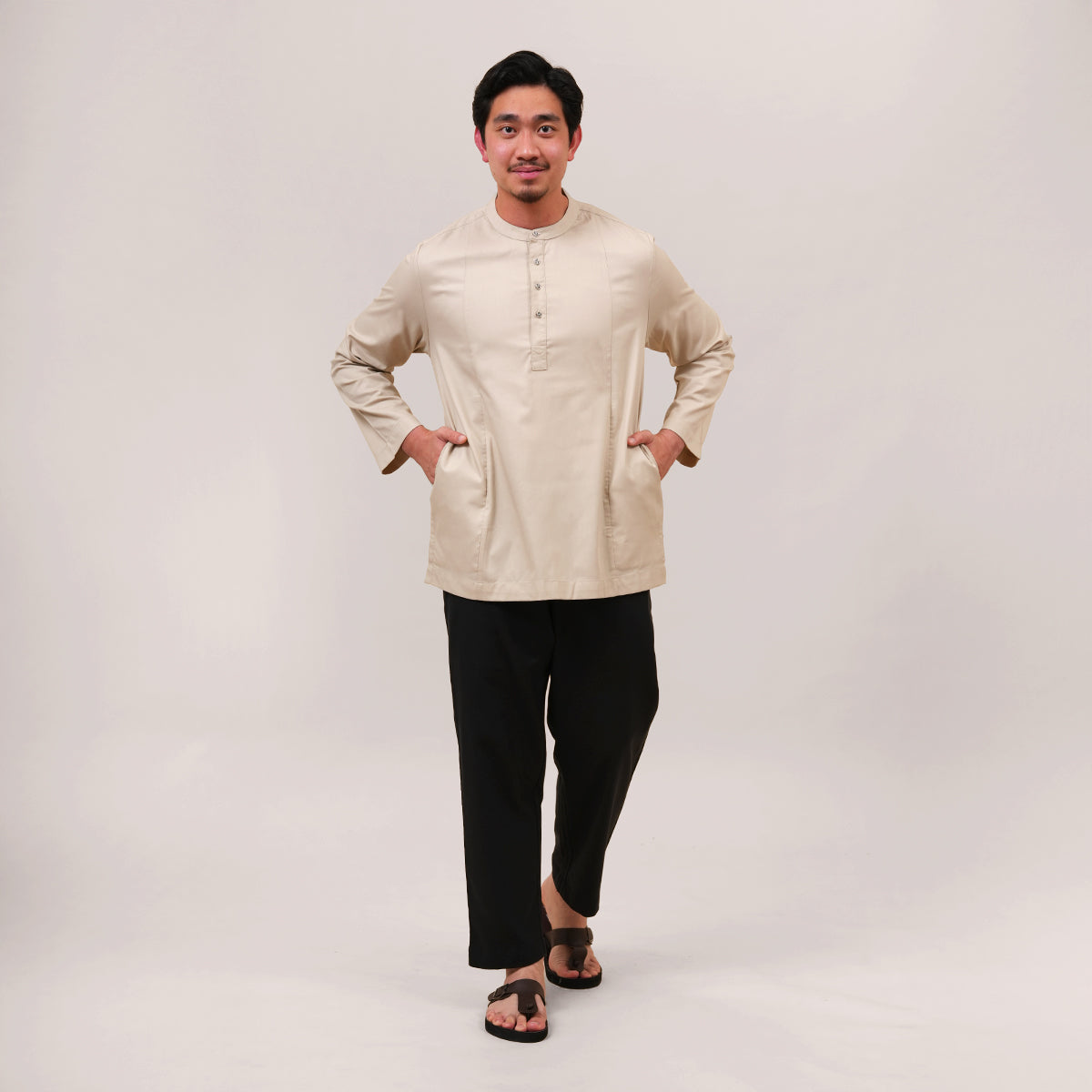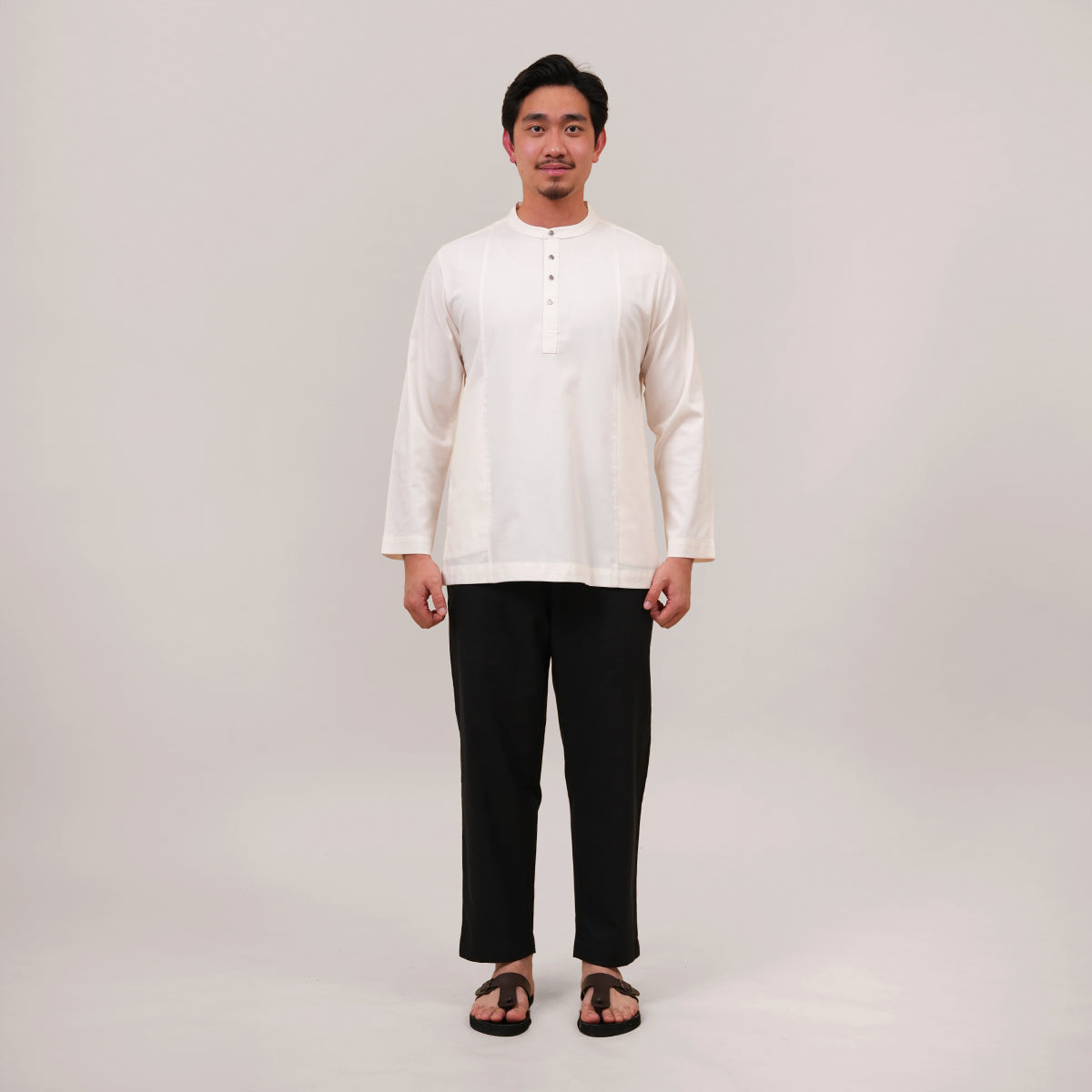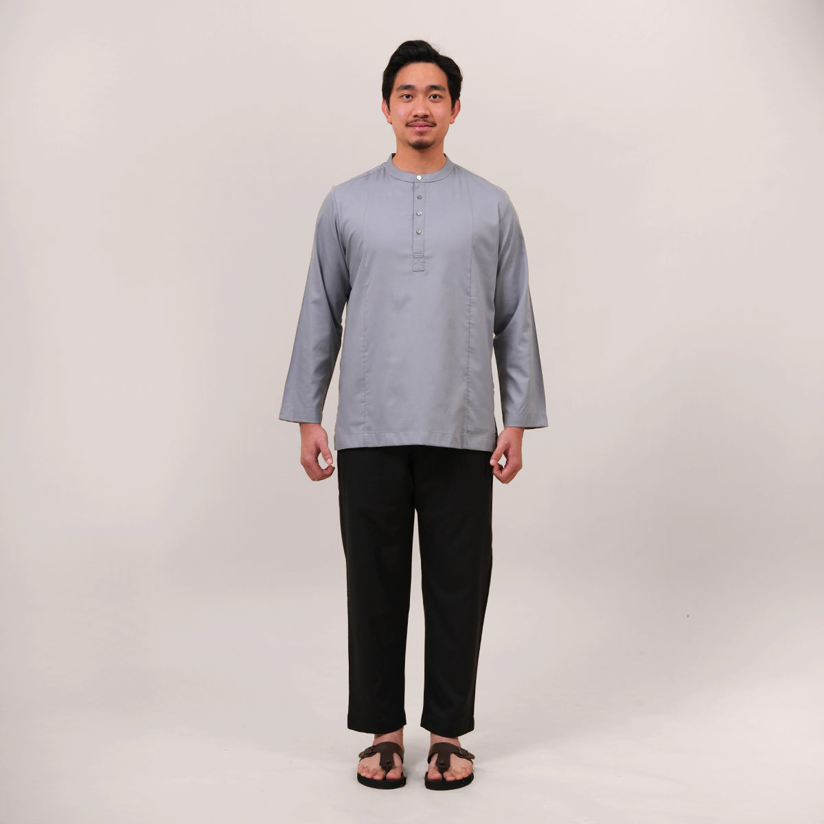 Combining traditional Malay heritage with a modern touch features a classic cekak musang collar and a button arrangement inspired by the baju Melayu. This long-sleeved top is designed for both religious worship and formal occasions, offering a modest silhouette that does not emphasize body shape while ensuring maximum comfort through its side pockets and side slits. The name "Anas," which means "friendliness" in Arabic, perfectly reflects the approachable and versatile nature of this design. Now available in a fresh range of new colors, it serves as a practical yet sophisticated staple for the contemporary man's wardrobe.
