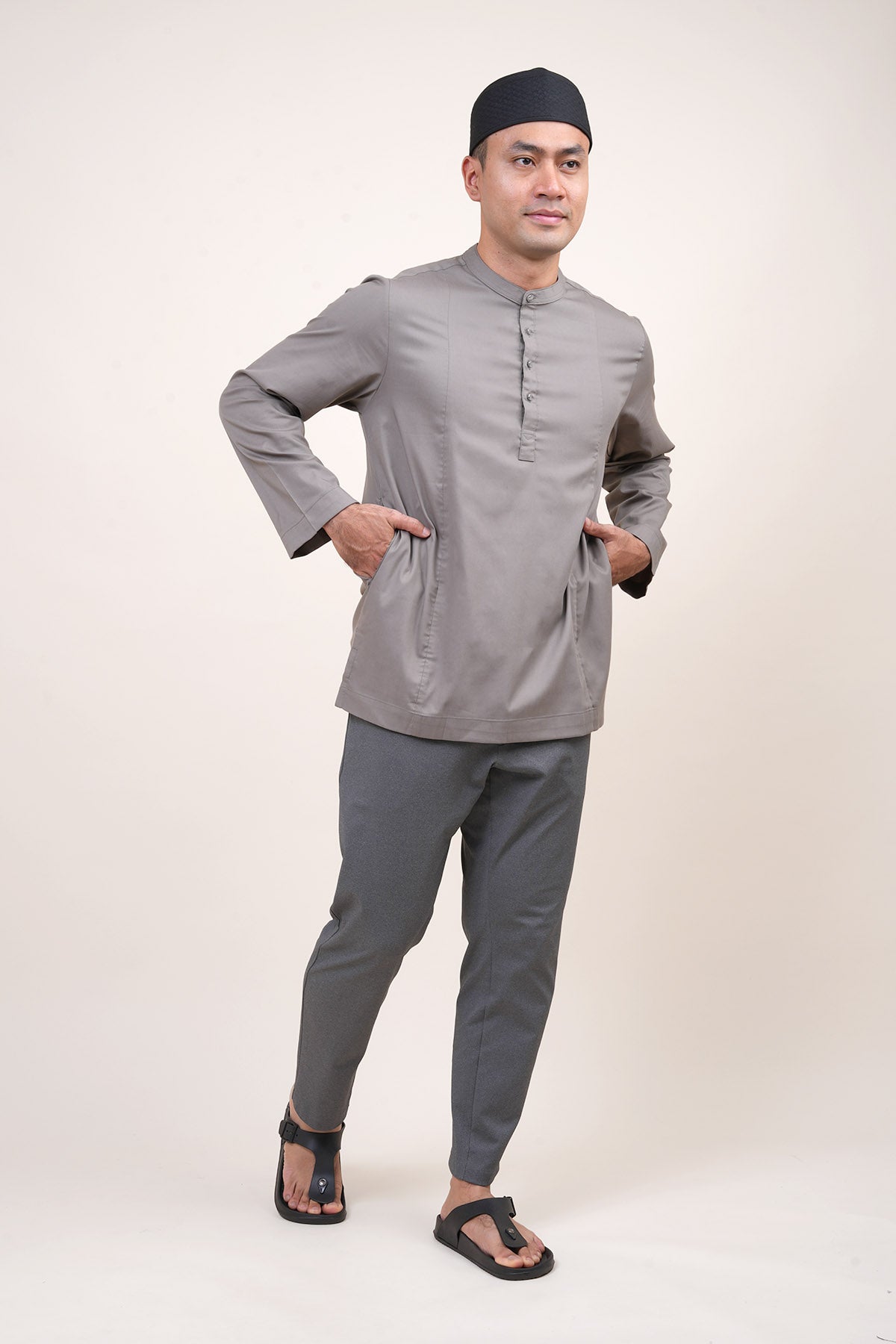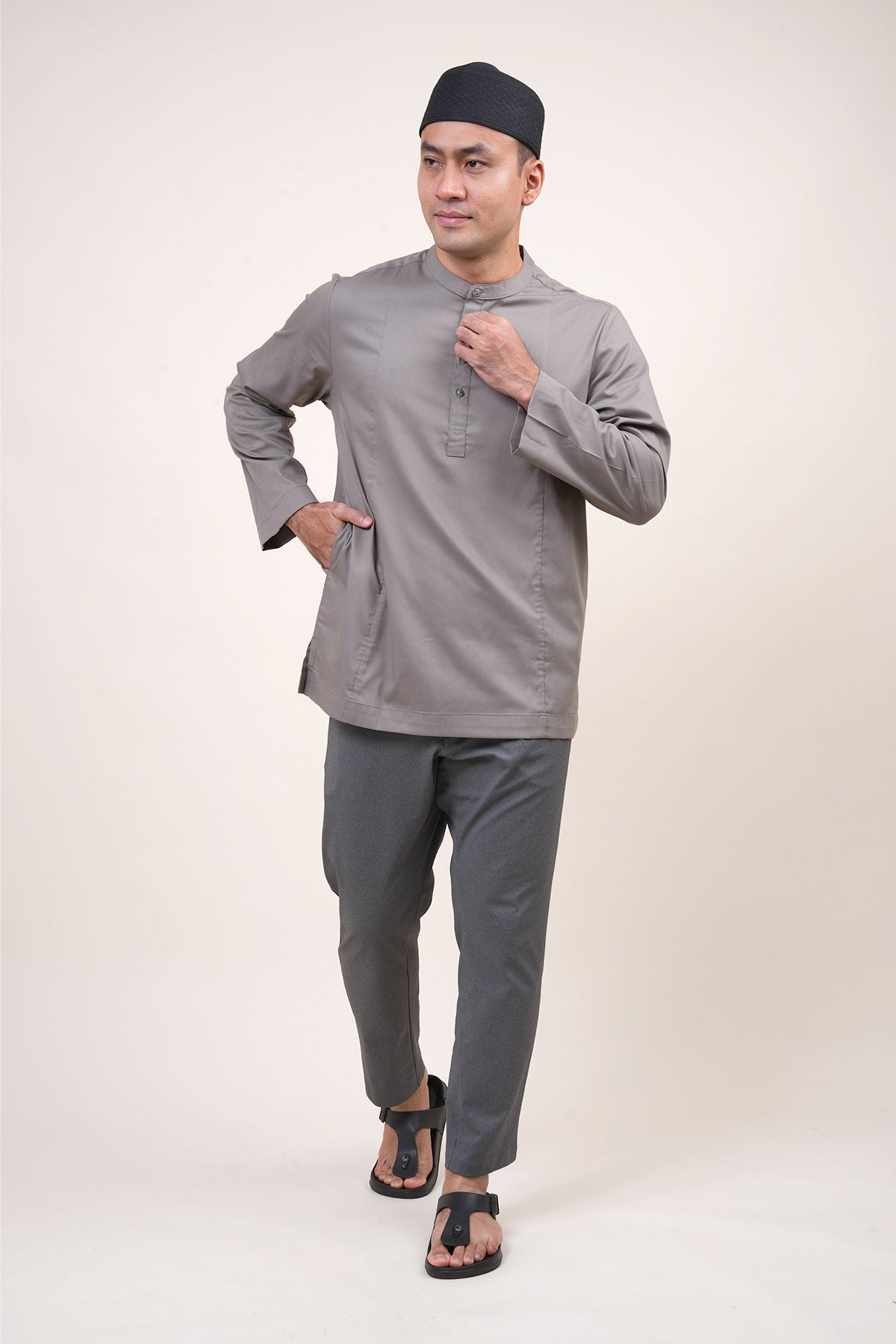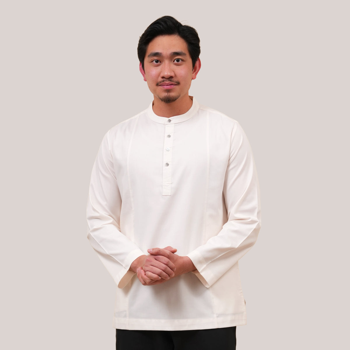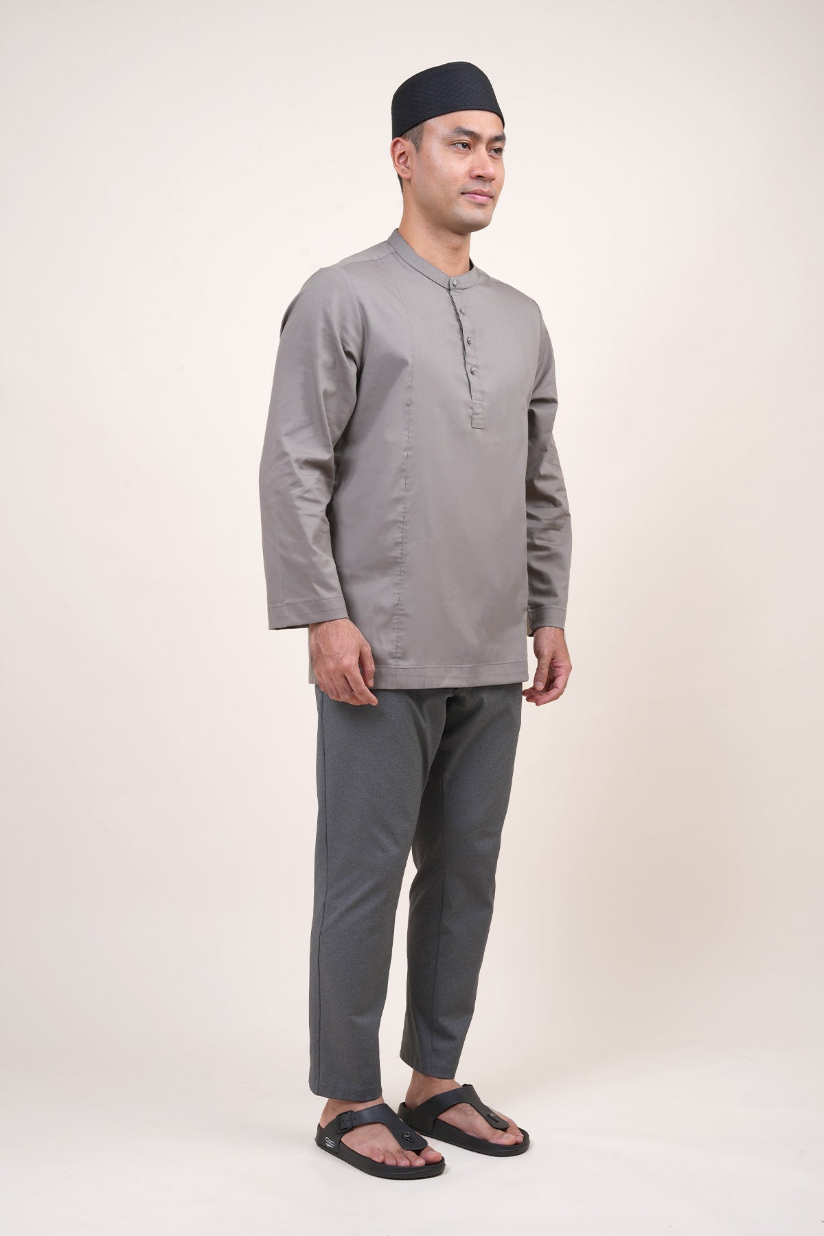 Combining traditional Malay heritage with a modern touch features a classic cekak musang collar and a button arrangement inspired by the baju Melayu. This long-sleeved top is designed for both religious worship and formal occasions, offering a modest silhouette that does not emphasize body shape while ensuring maximum comfort through its side pockets and side slits. The name "Anas," which means "friendliness" in Arabic, perfectly reflects the approachable and versatile nature of this design. Now available in a fresh range of new colors, it serves as a practical yet sophisticated staple for the contemporary man's wardrobe.