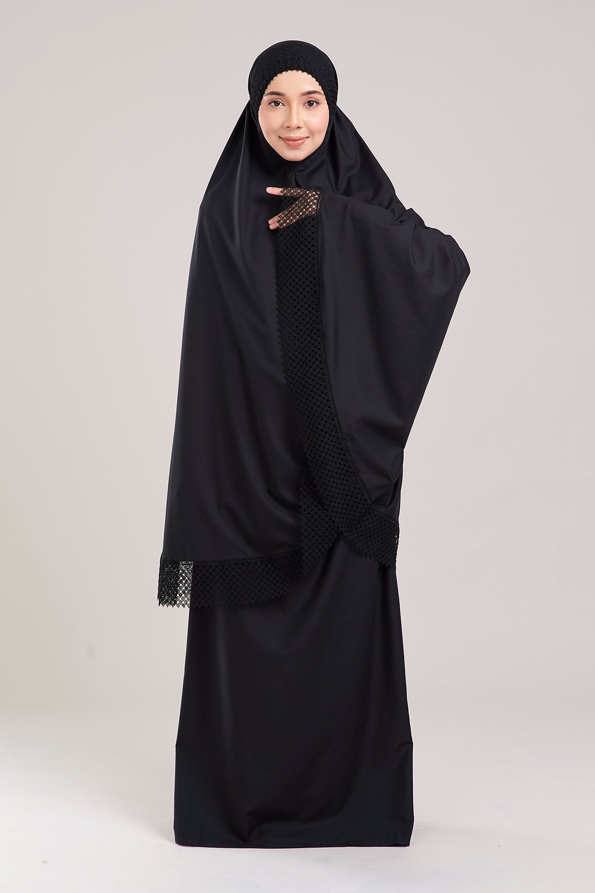 Crafted with a distinctive lace design and connecting fabric for enhanced visual appeal it is made from premium KUF fabric, providing excellent breathability, durability, and quick-drying softness. The fabric resists fading and wrinkles, with additional UV protection, and comes in non-see-through, dark-toned colours for simplicity and modesty.
