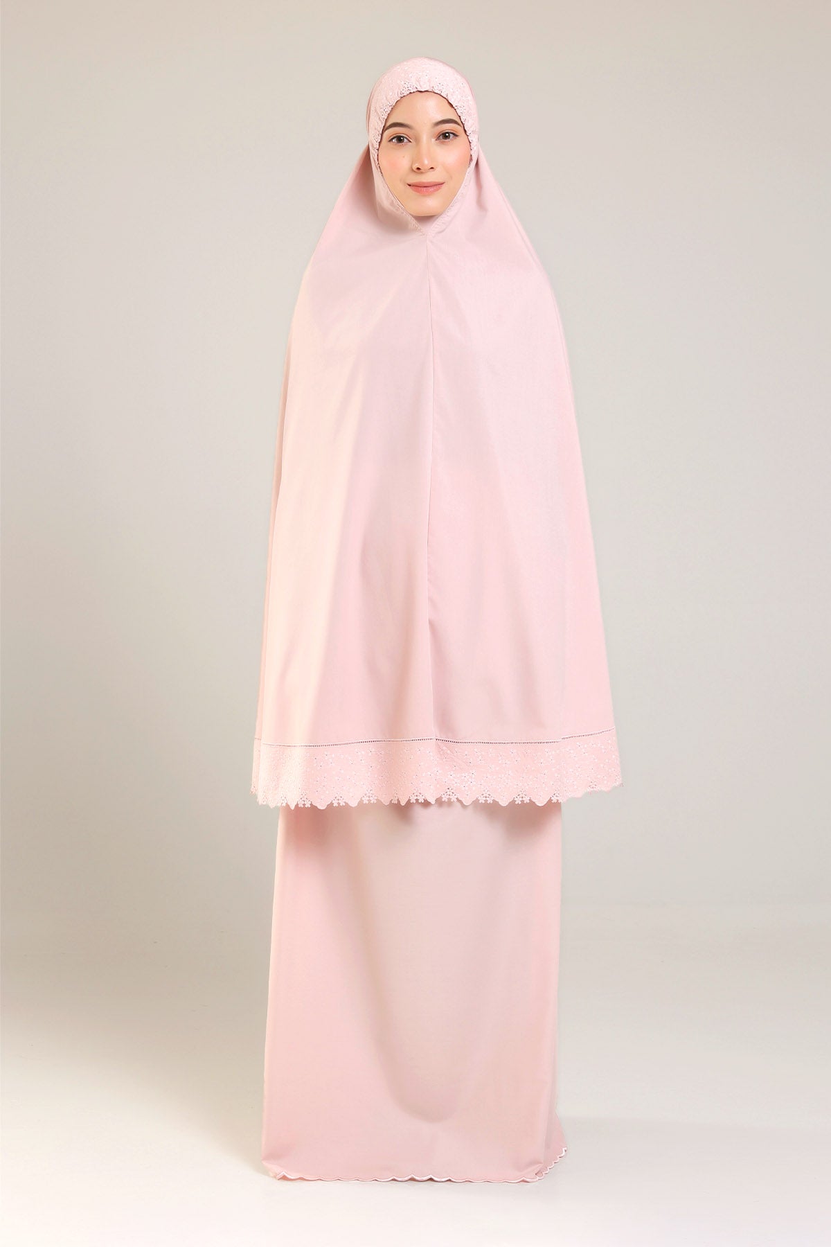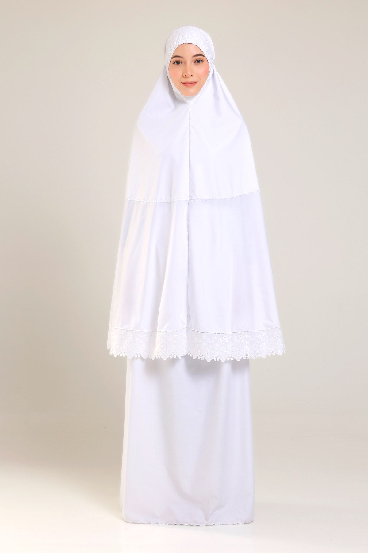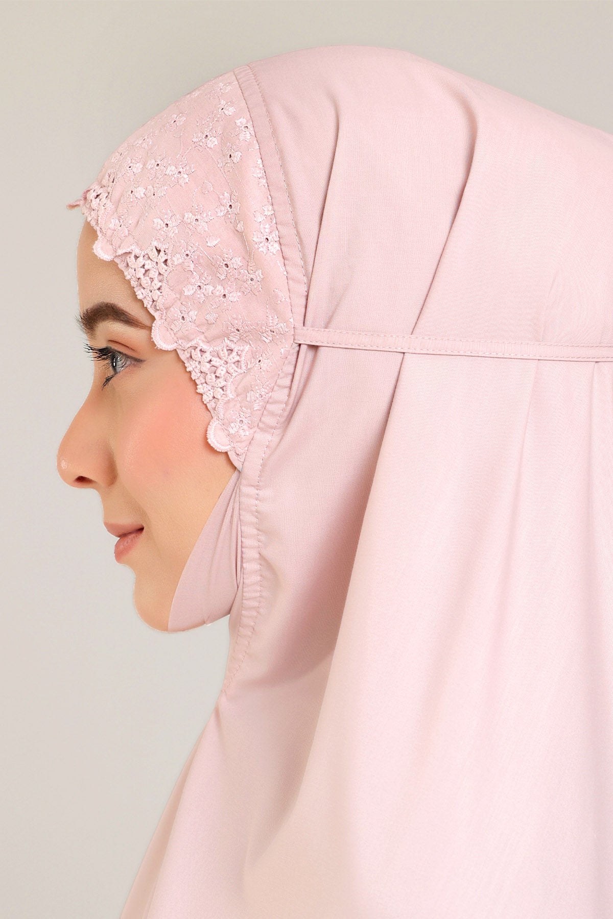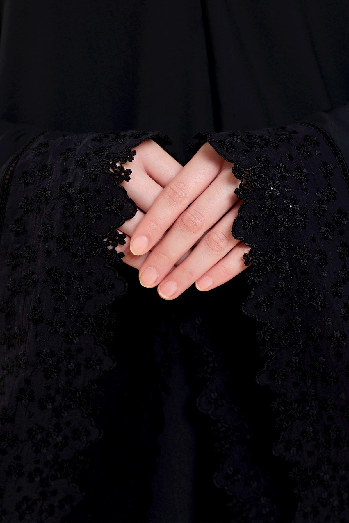 Crafted from the cool and breathable KUF fabric, this collection features intricate cherry blossom embroidery on a combination of cotton and guipure lace. The lace design mimics flowers blooming on a branch. Offering two face-look options, it is designed for durability, UV protection, and modesty, resisting wrinkles and fading while providing full aurat coverage with its non-see-through fabric.