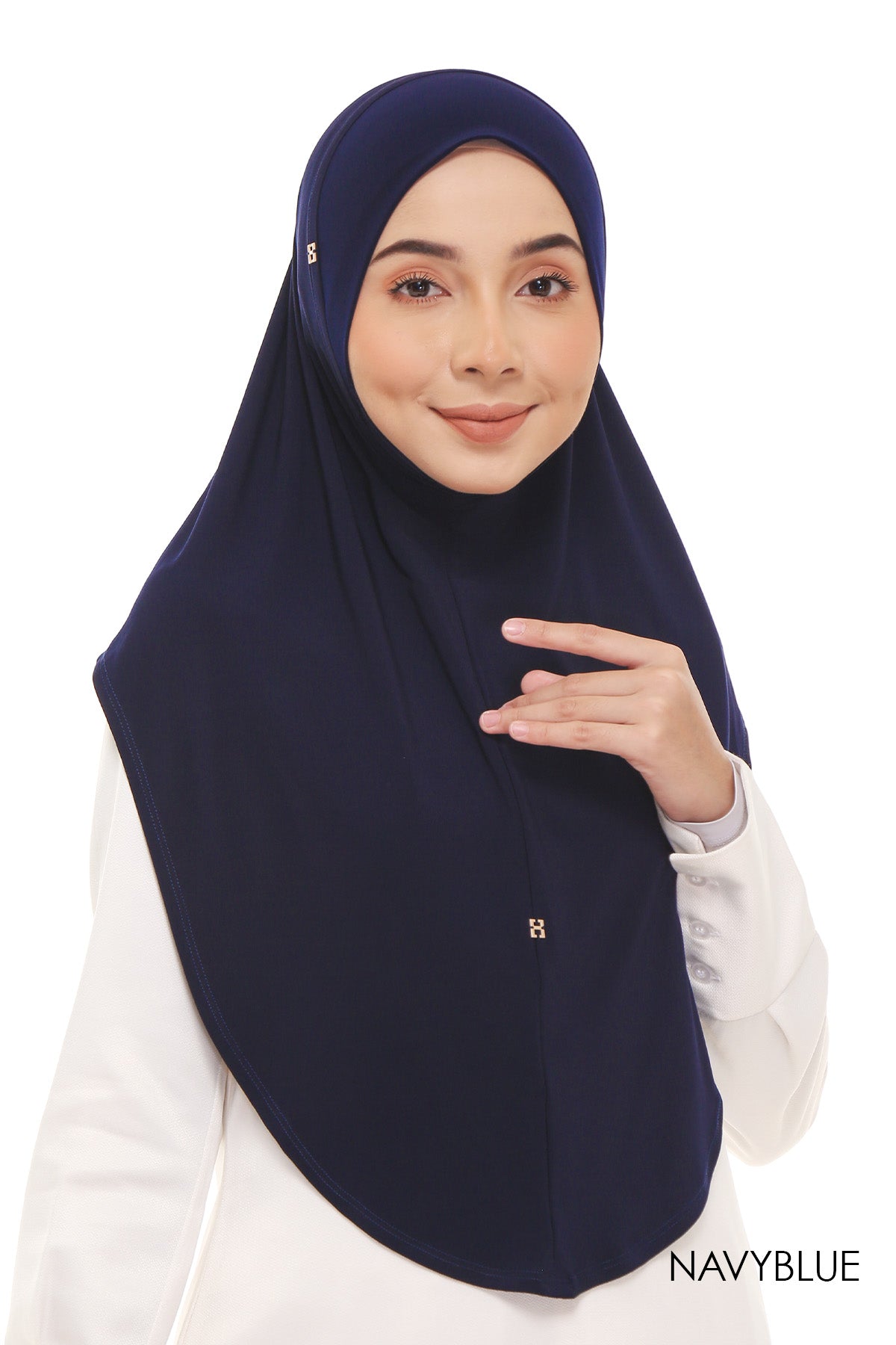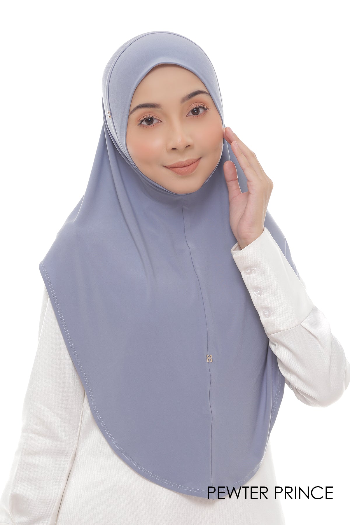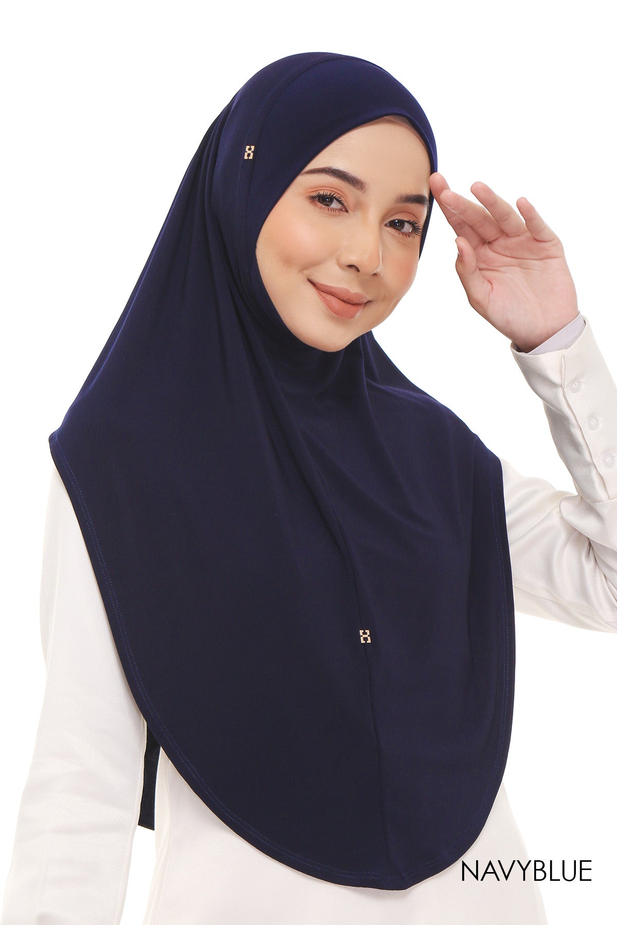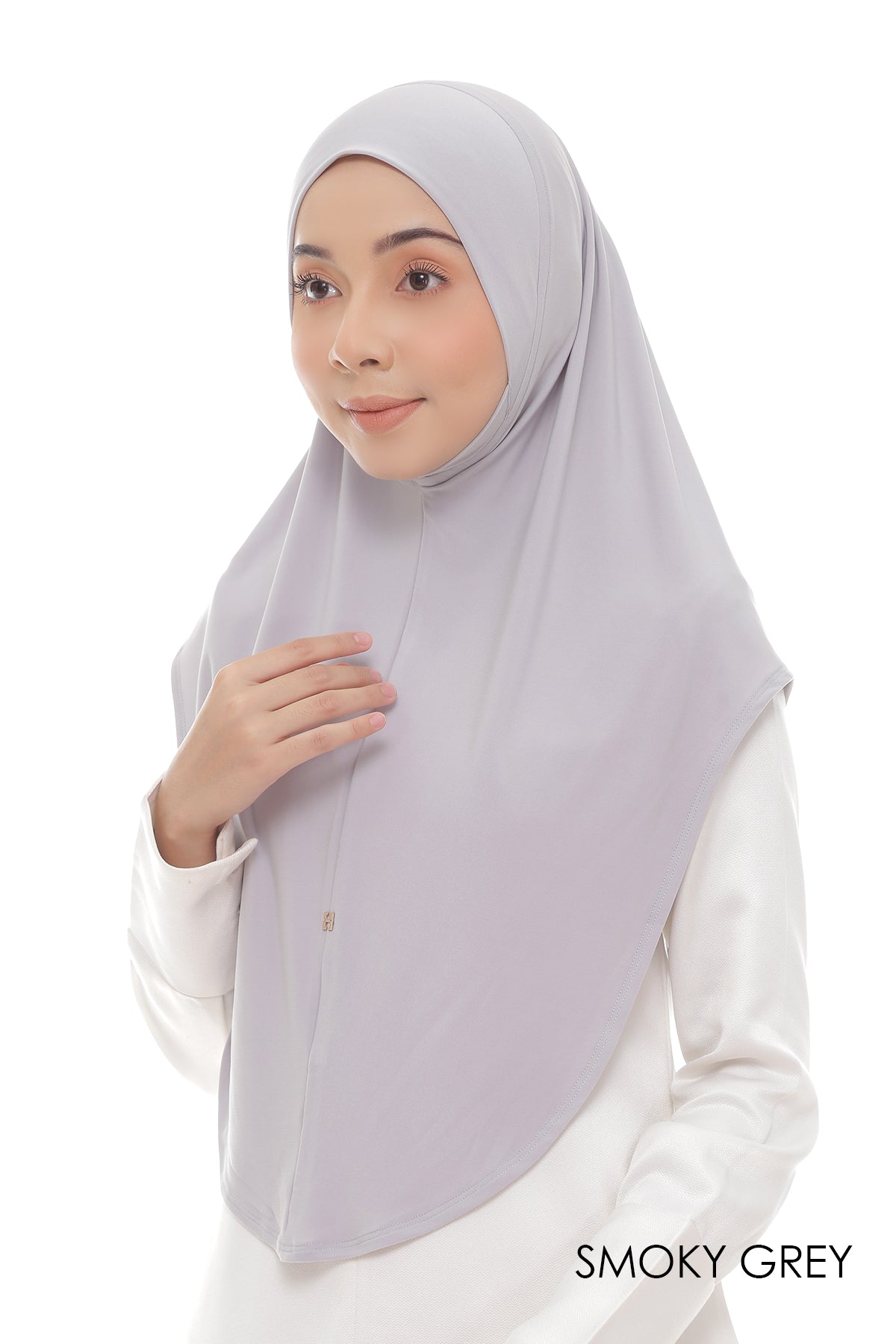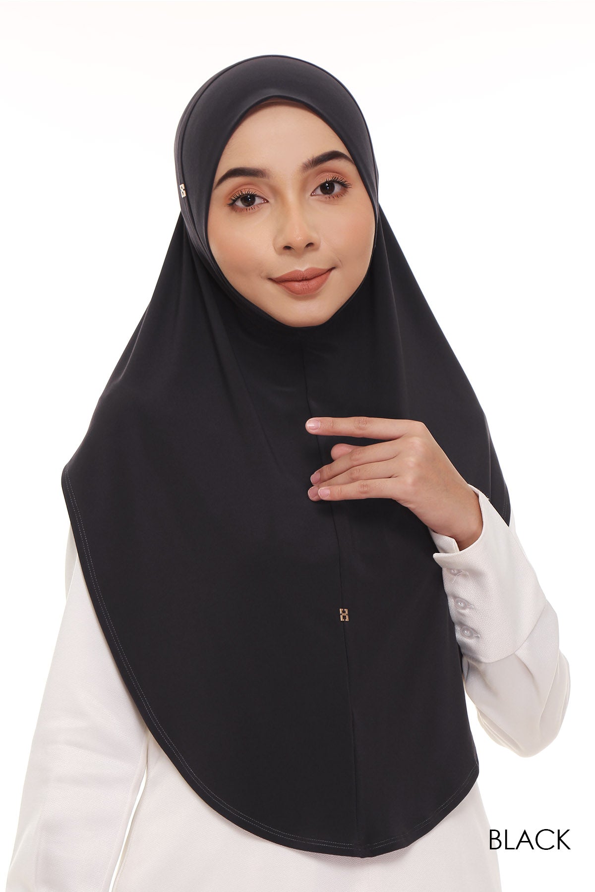 Made from an ironless, soft-to-touch lycra for its body and awning, guaranteeing a hassle-free, stretchable look. It is perfect to be matched with either printed or plain outift, making it a versatile tudung option. Comes in three different tudung length.
