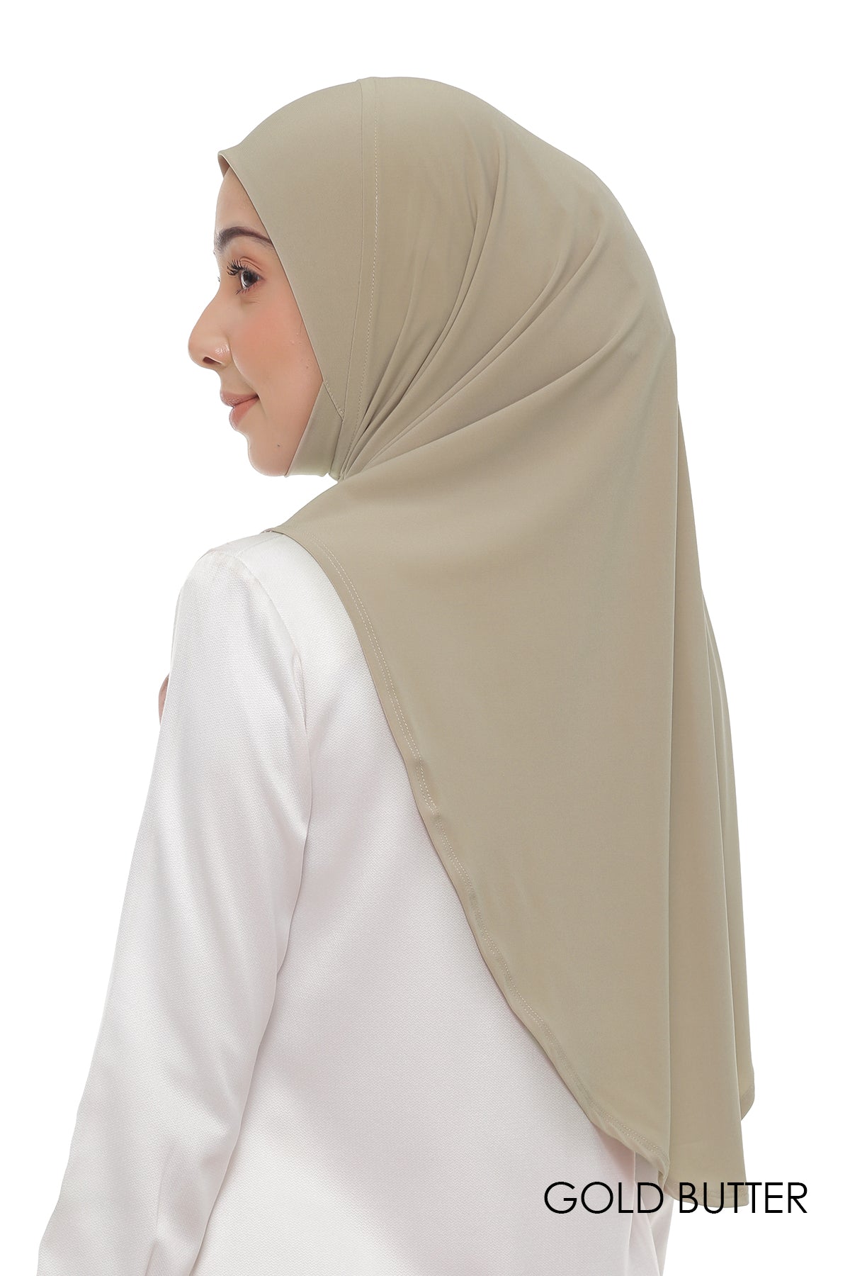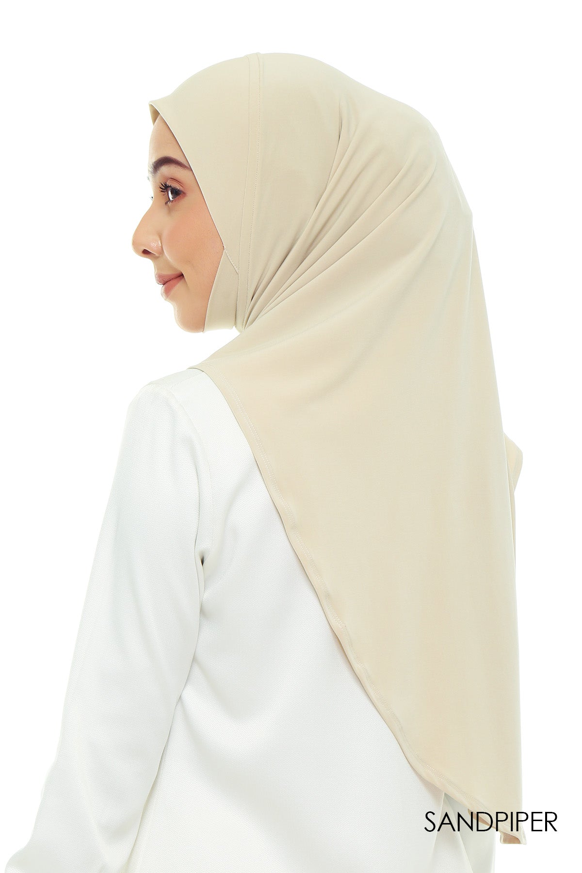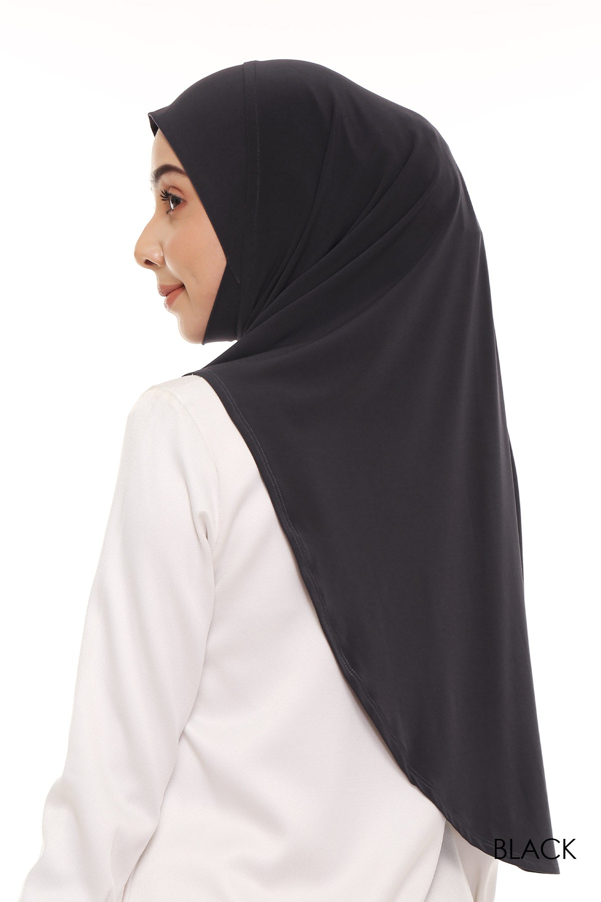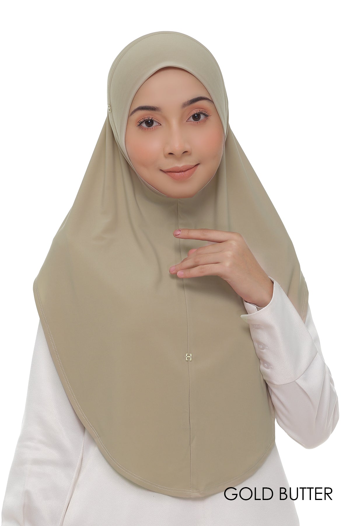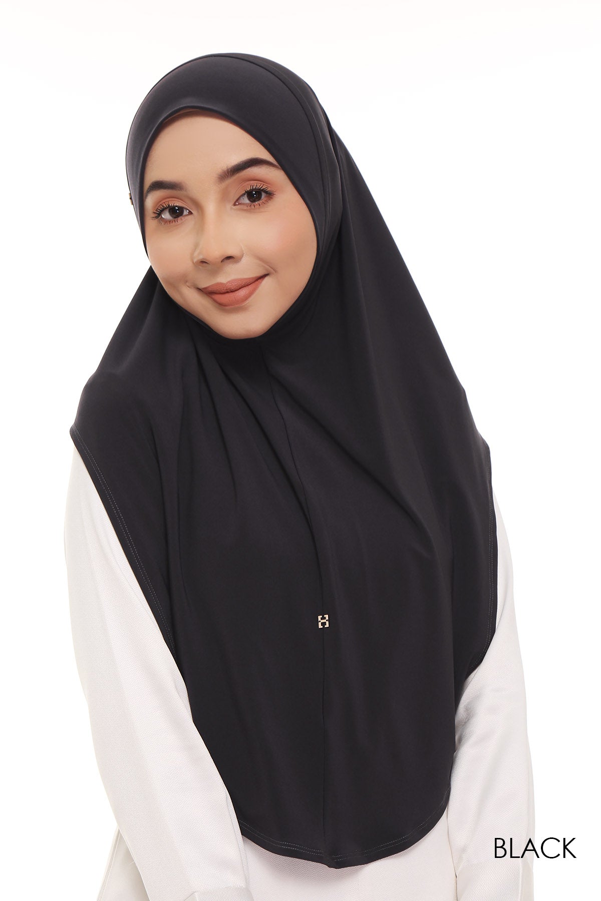 Made from an ironless, soft-to-touch lycra for its body and awning, guaranteeing a hassle-free, stretchable look. It is perfect to be matched with either printed or plain outift, making it a versatile tudung option. Comes in three different tudung length.