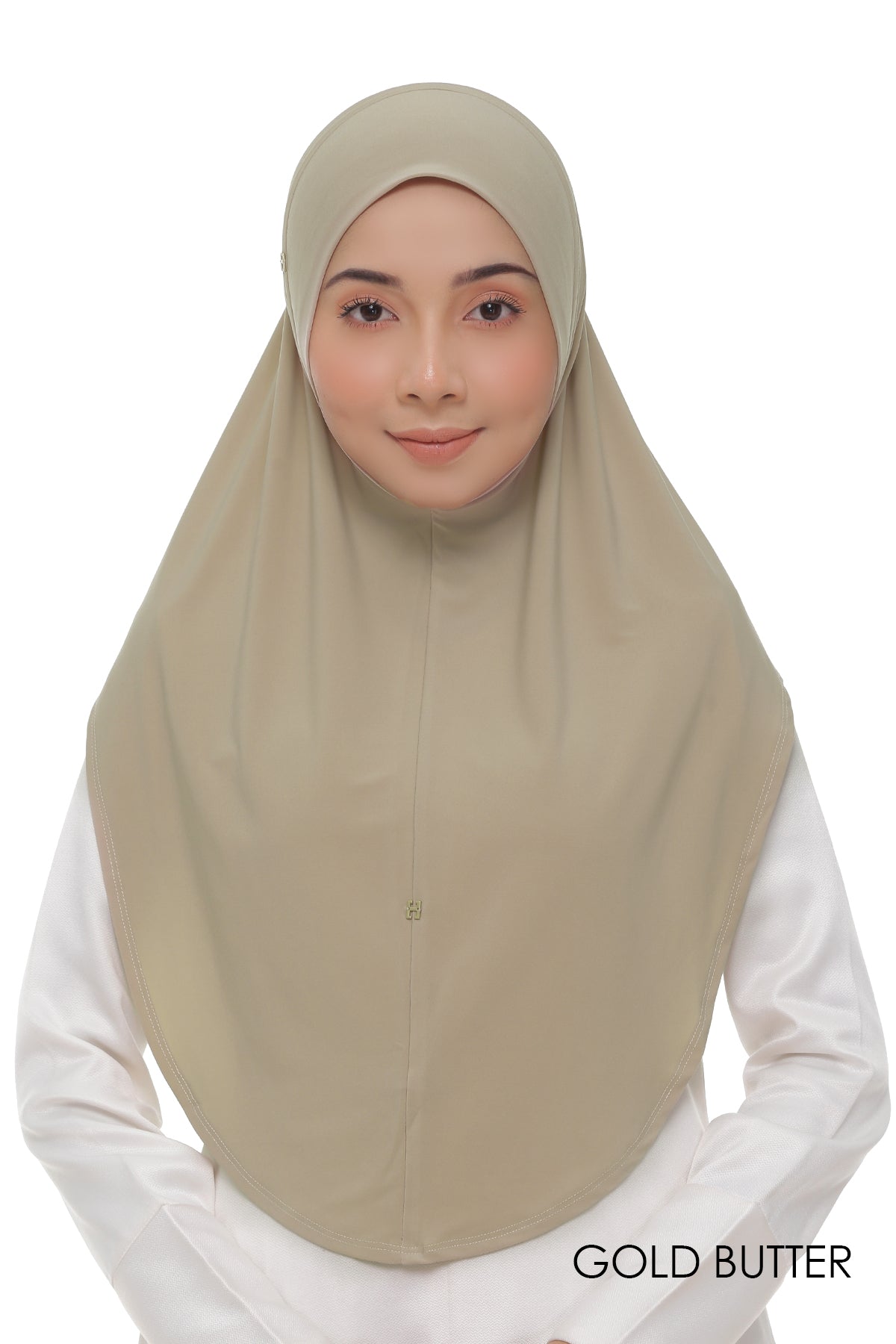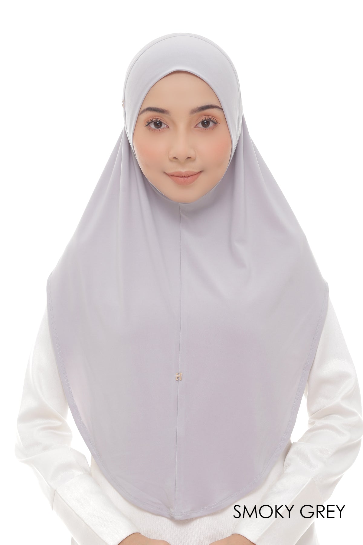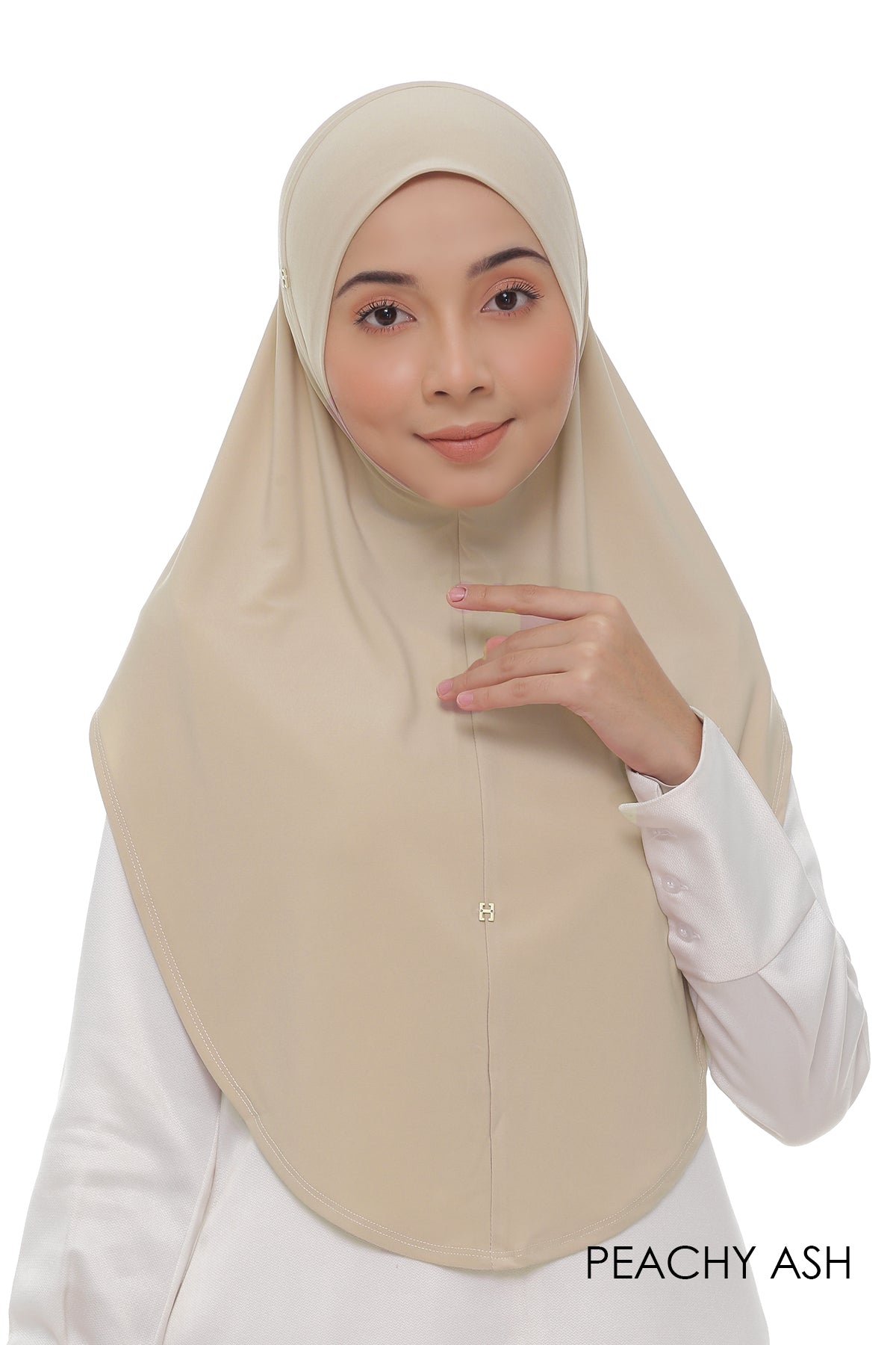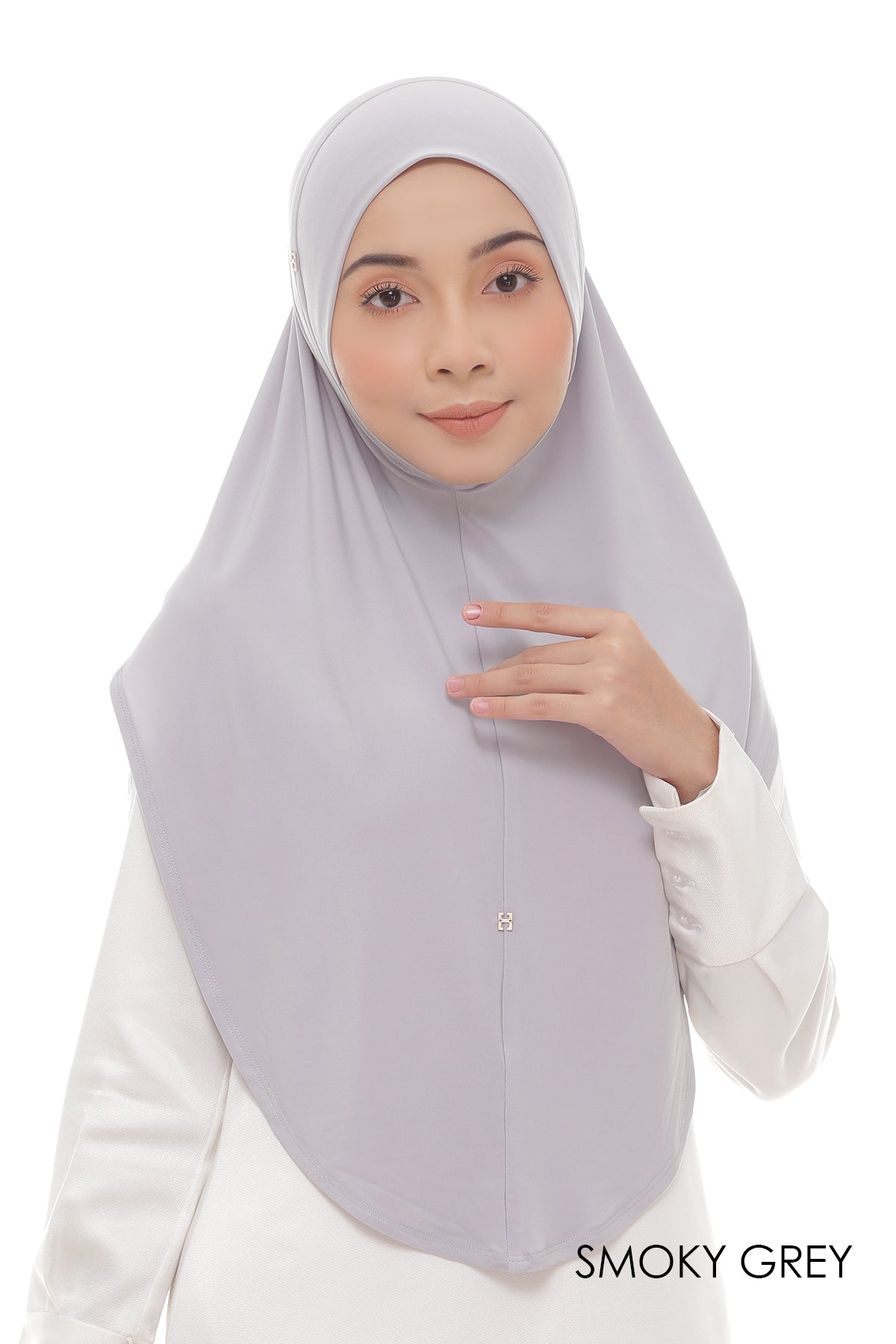 Made from an ironless, soft-to-touch lycra for its body and awning, guaranteeing a hassle-free, stretchable look. It is perfect to be matched with either printed or plain outift, making it a versatile tudung option. Comes in three different tudung length.