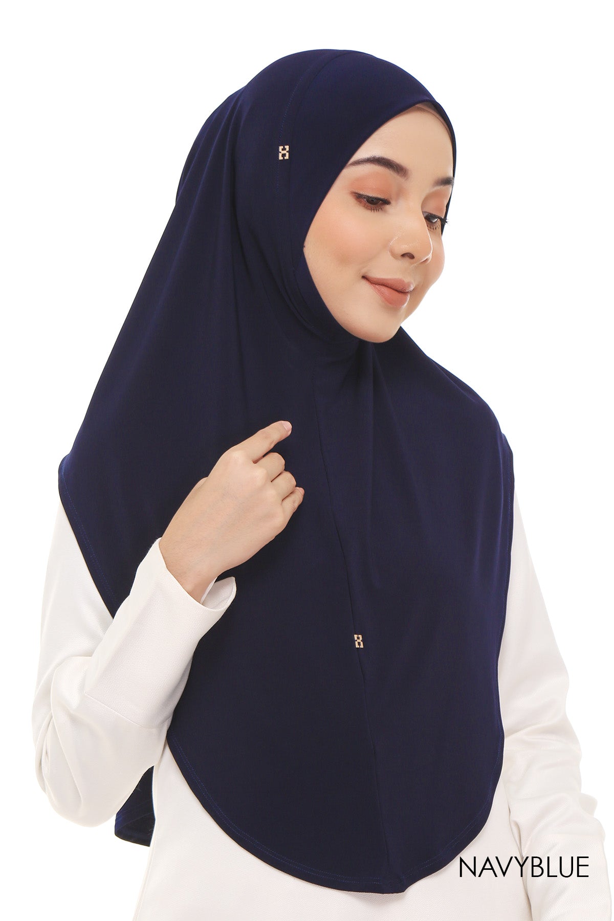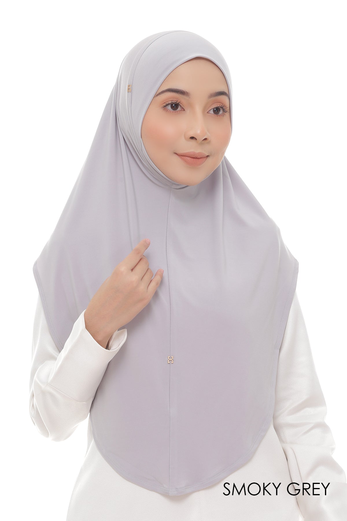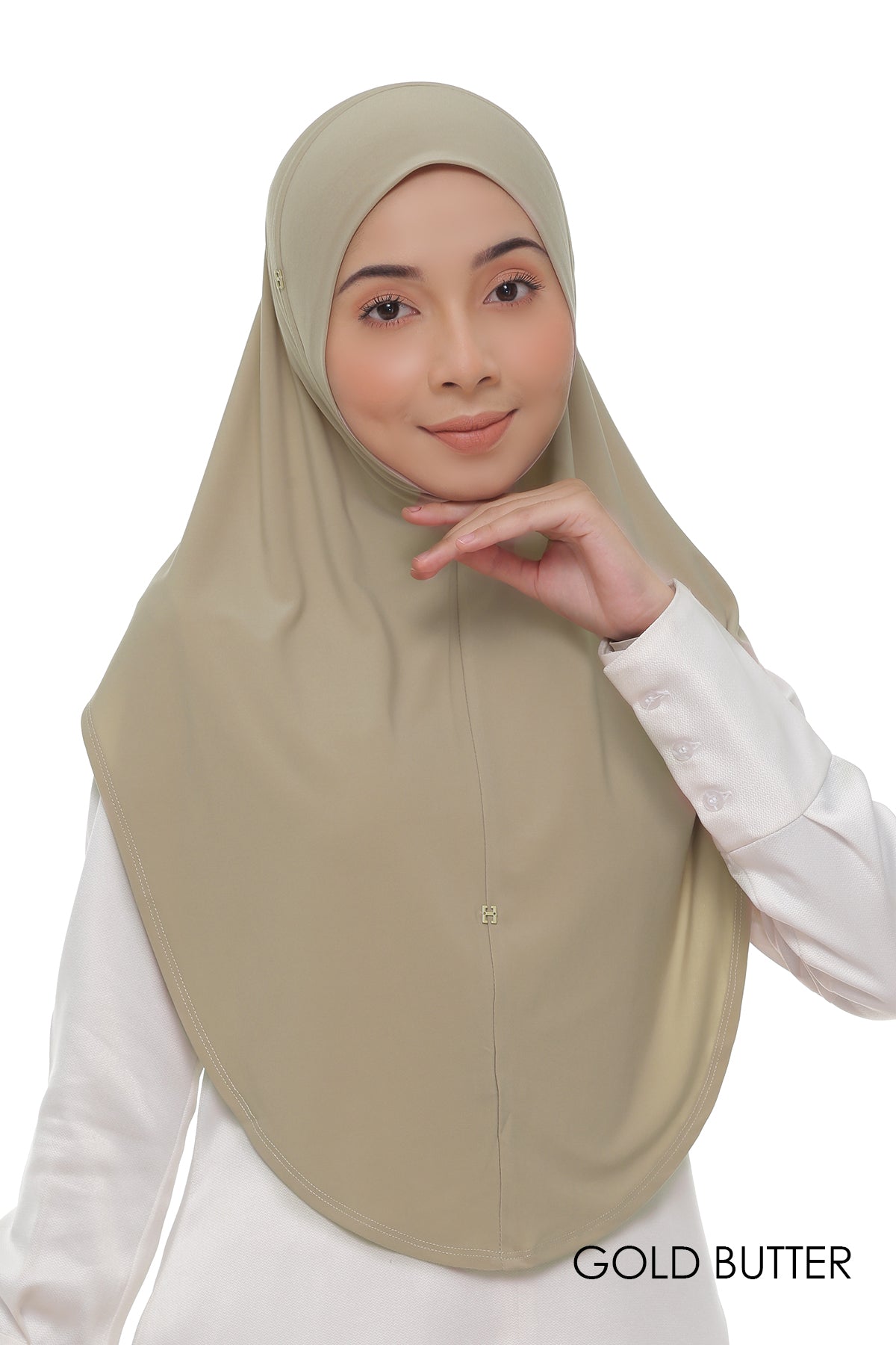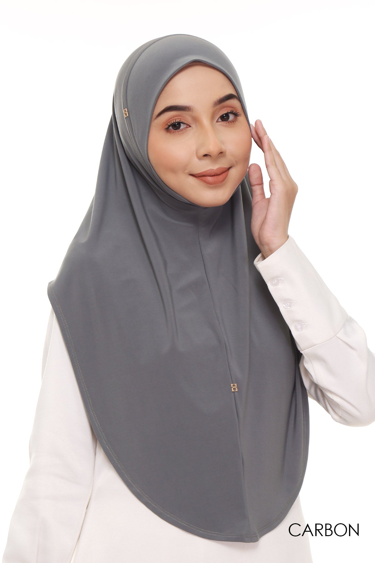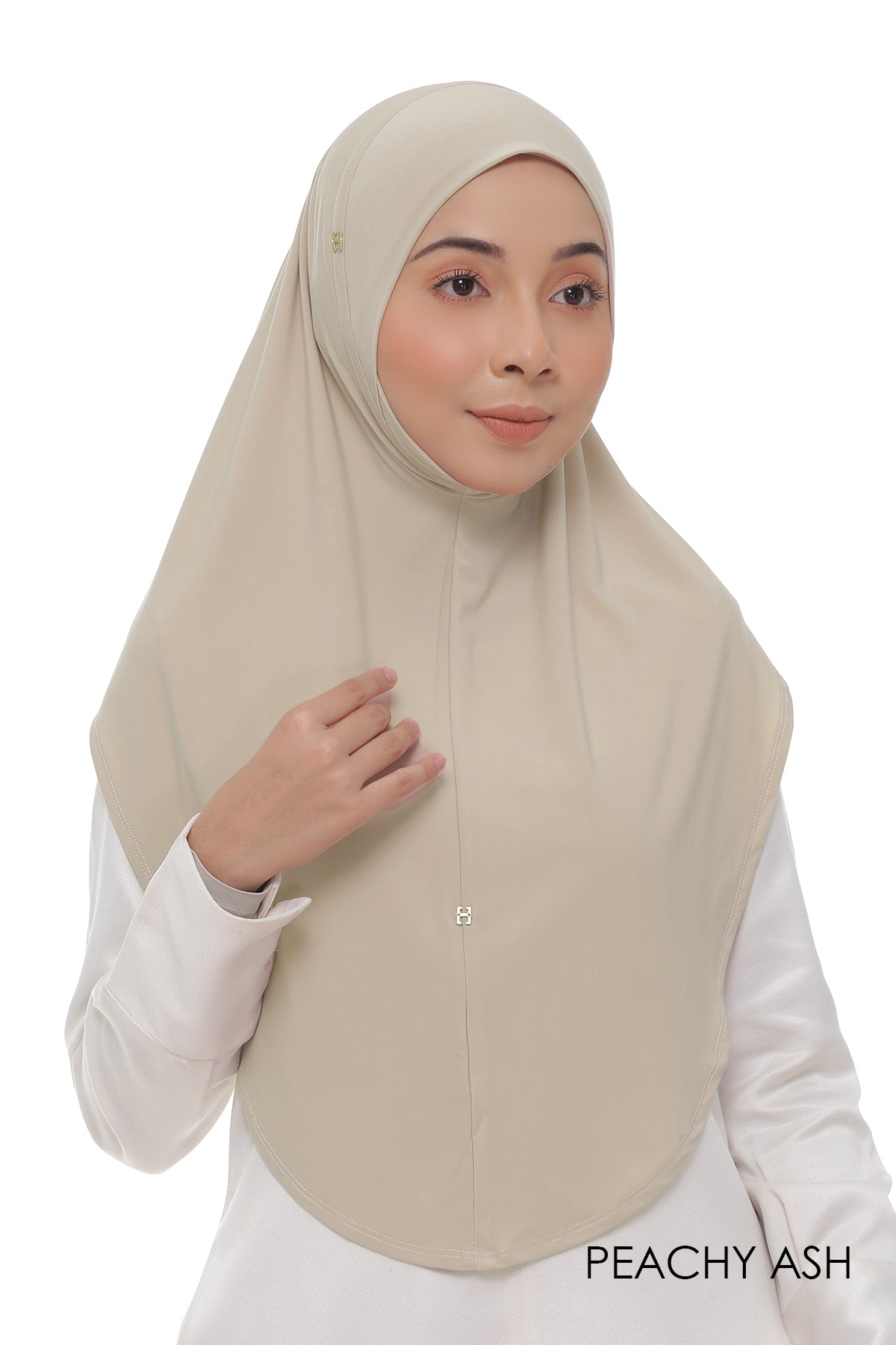 Made from an ironless, soft-to-touch lycra for its body and awning, guaranteeing a hassle-free, stretchable look. It is perfect to be matched with either printed or plain outift, making it a versatile tudung option. Comes in three different tudung length.