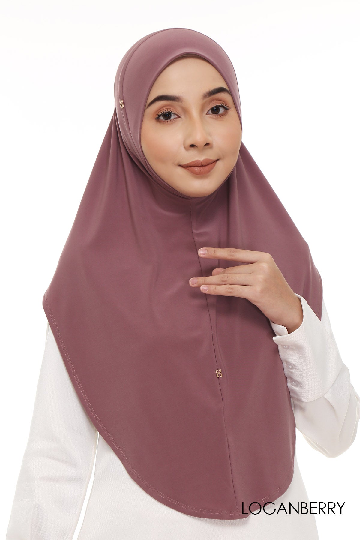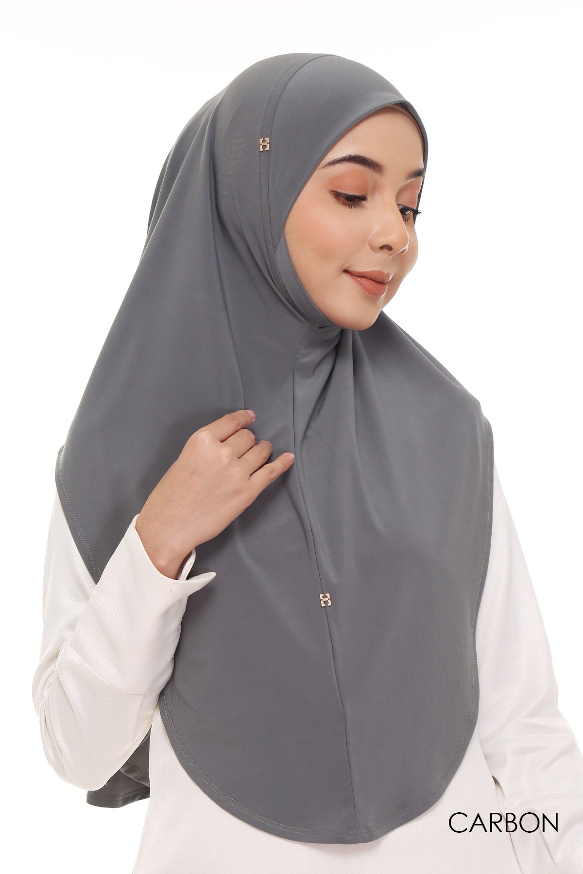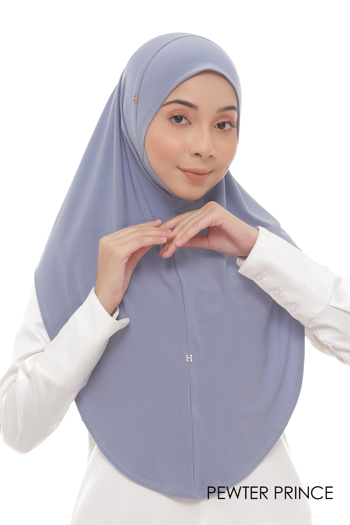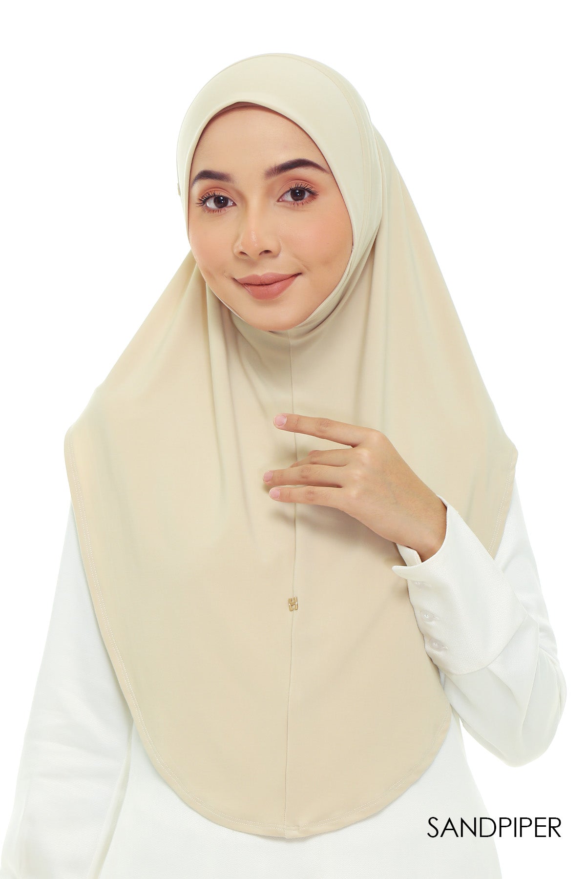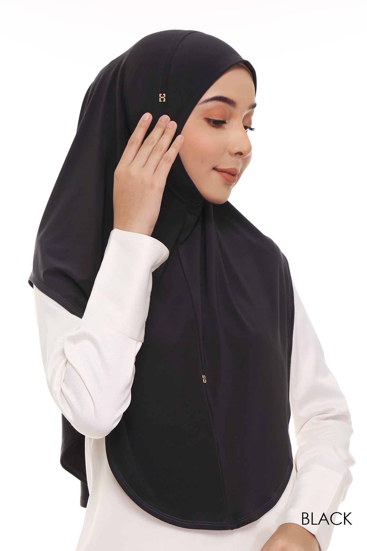 Made from an ironless, soft-to-touch lycra for its body and awning, guaranteeing a hassle-free, stretchable look. It is perfect to be matched with either printed or plain outift, making it a versatile tudung option. Comes in three different tudung length.