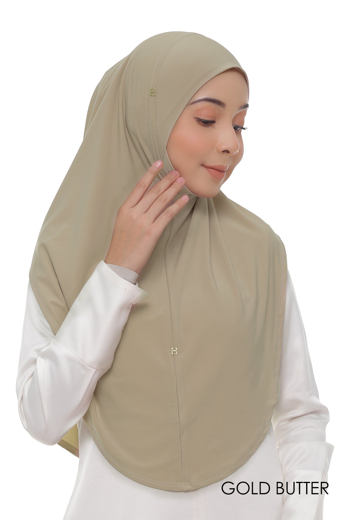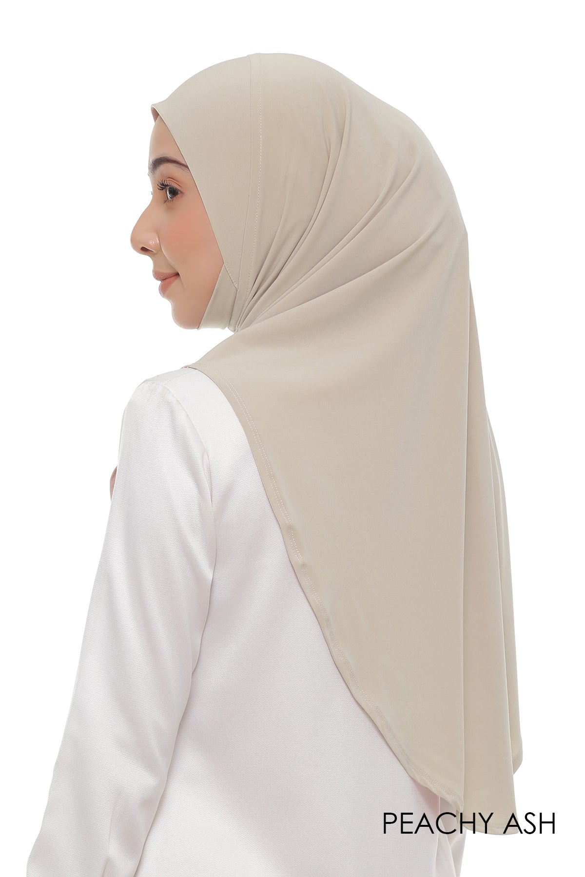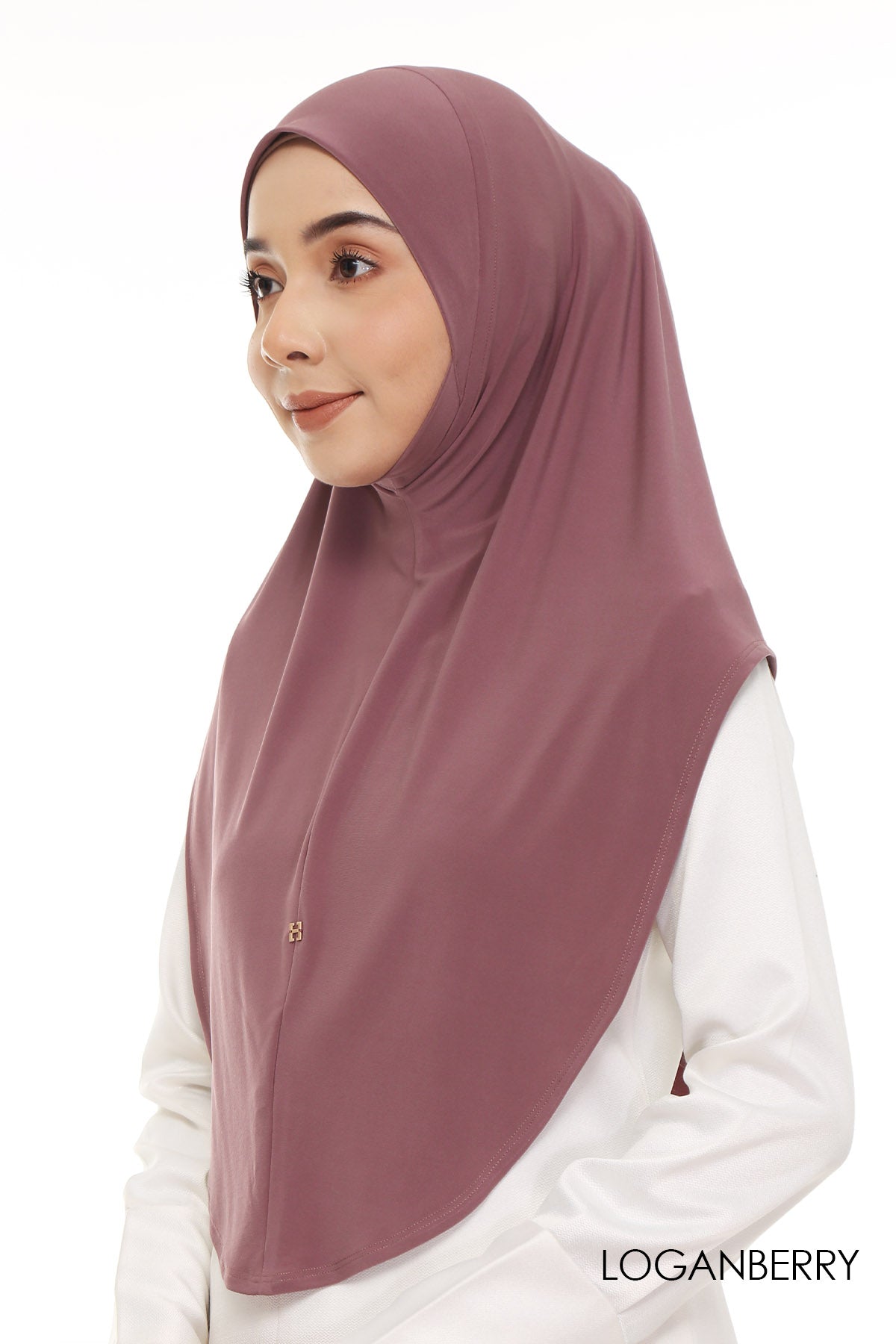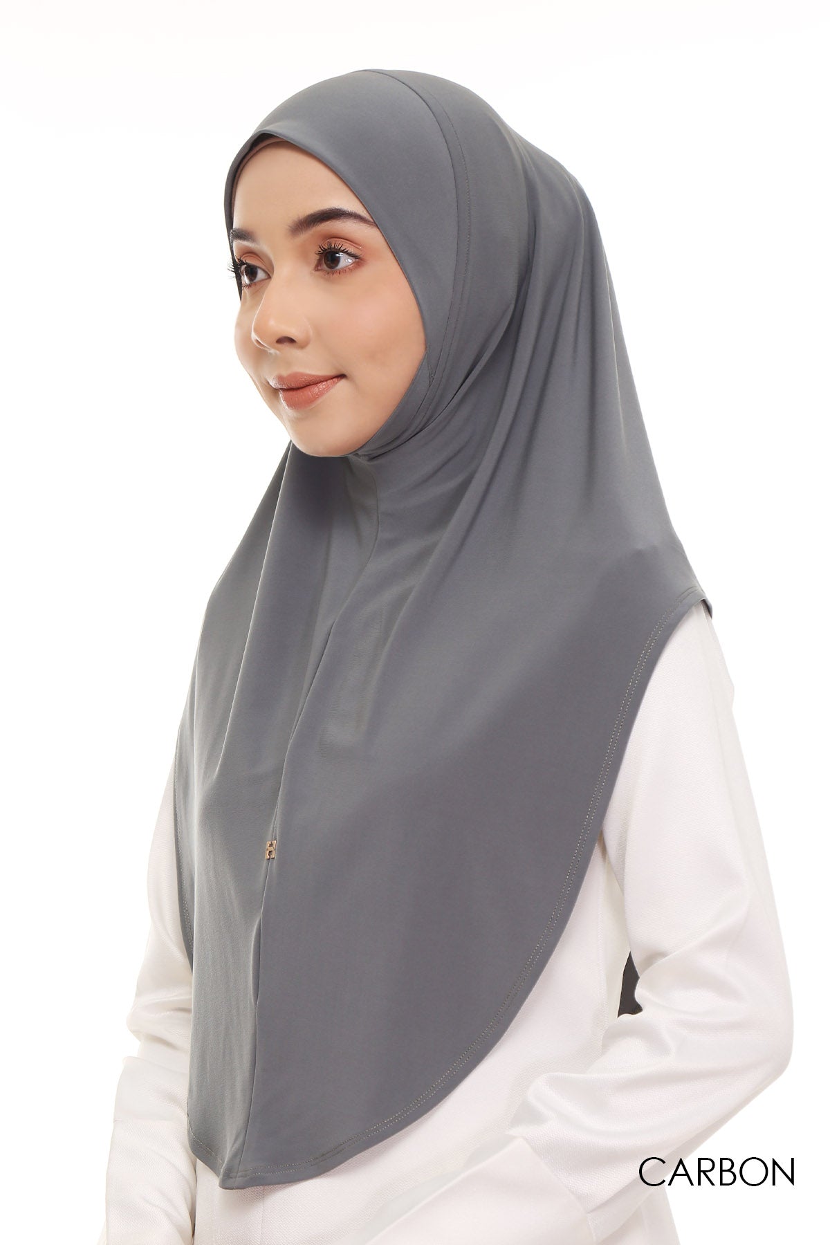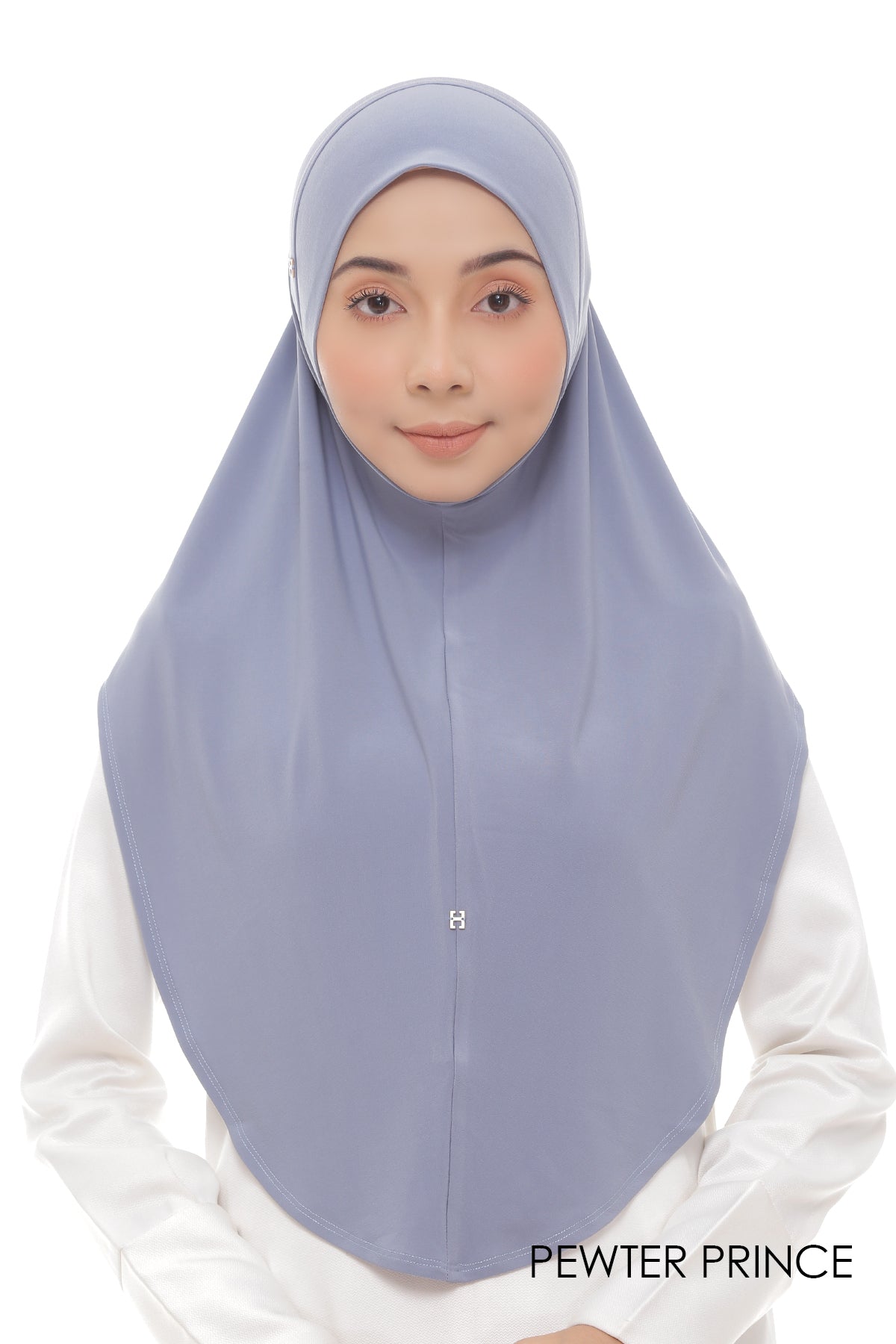 Made from an ironless, soft-to-touch lycra for its body and awning, guaranteeing a hassle-free, stretchable look. It is perfect to be matched with either printed or plain outift, making it a versatile tudung option. Comes in three different tudung length.