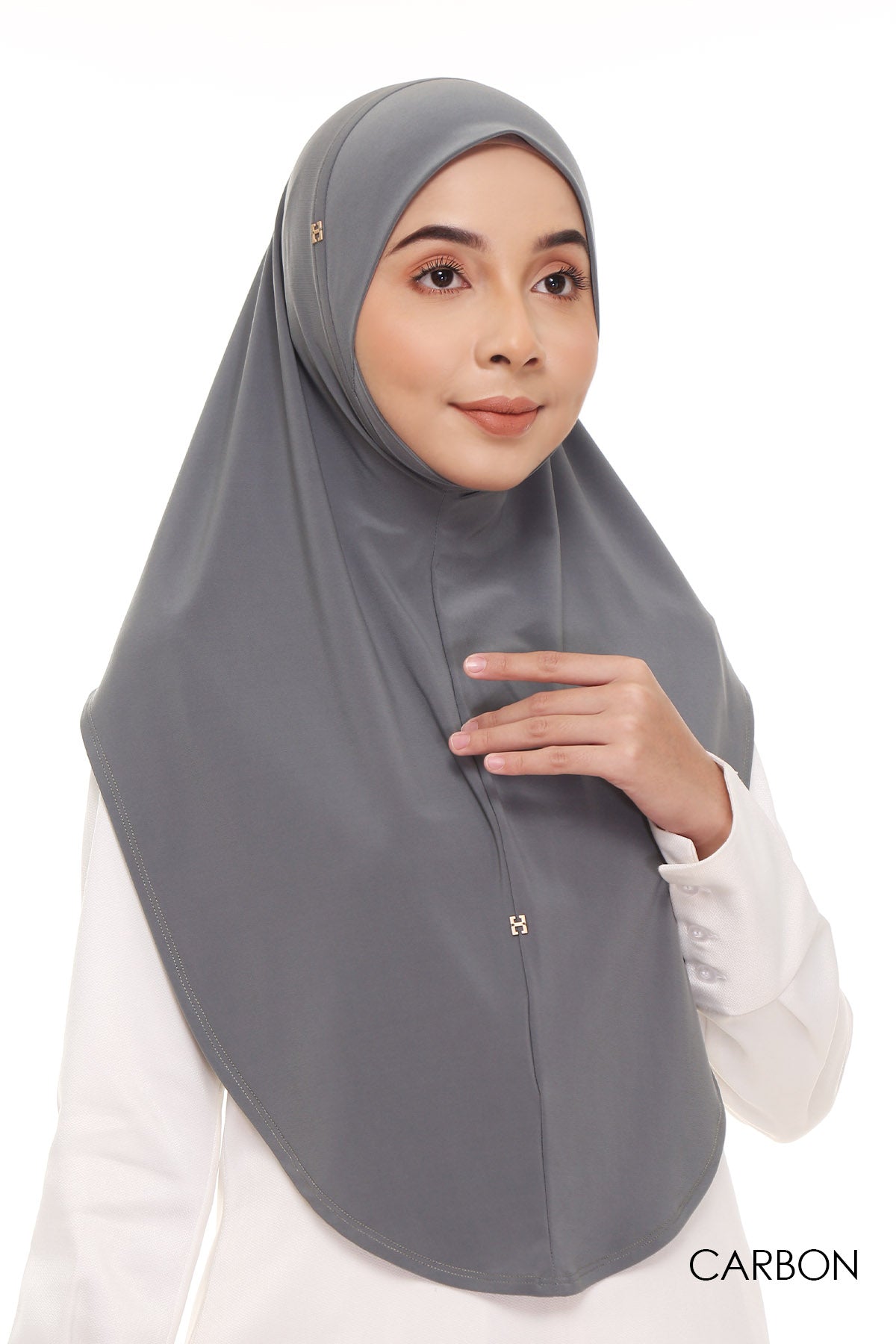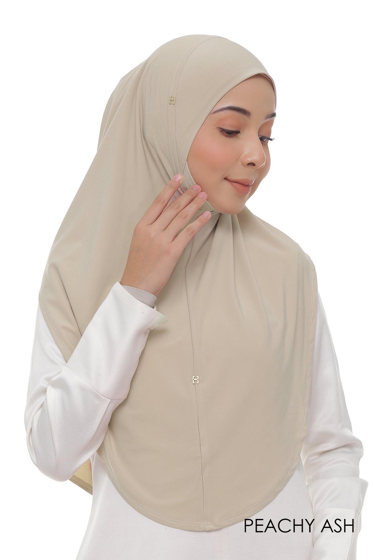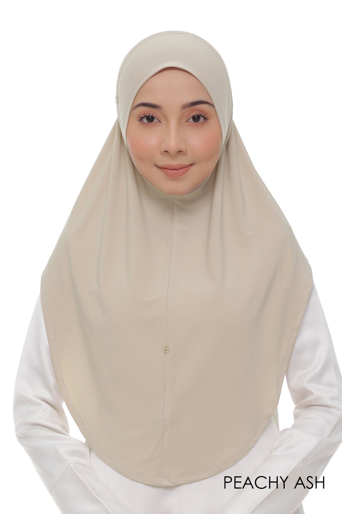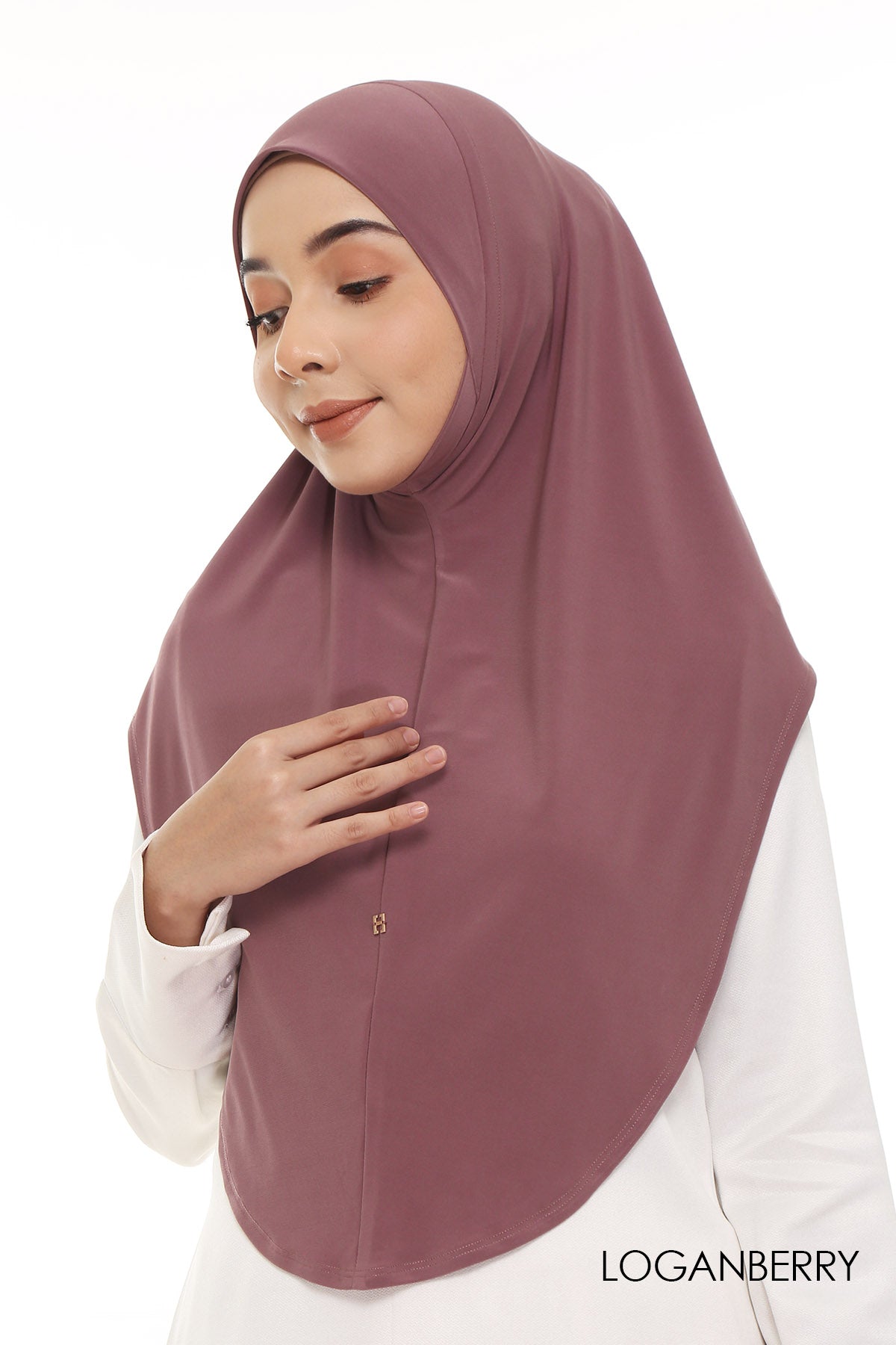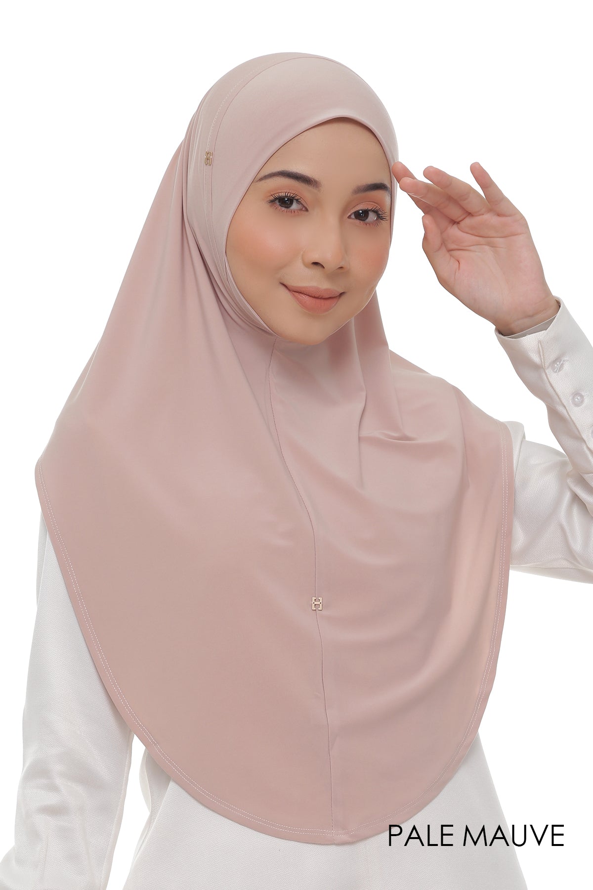 Made from an ironless, soft-to-touch lycra for its body and awning, guaranteeing a hassle-free, stretchable look. It is perfect to be matched with either printed or plain outift, making it a versatile tudung option. Comes in three different tudung length.