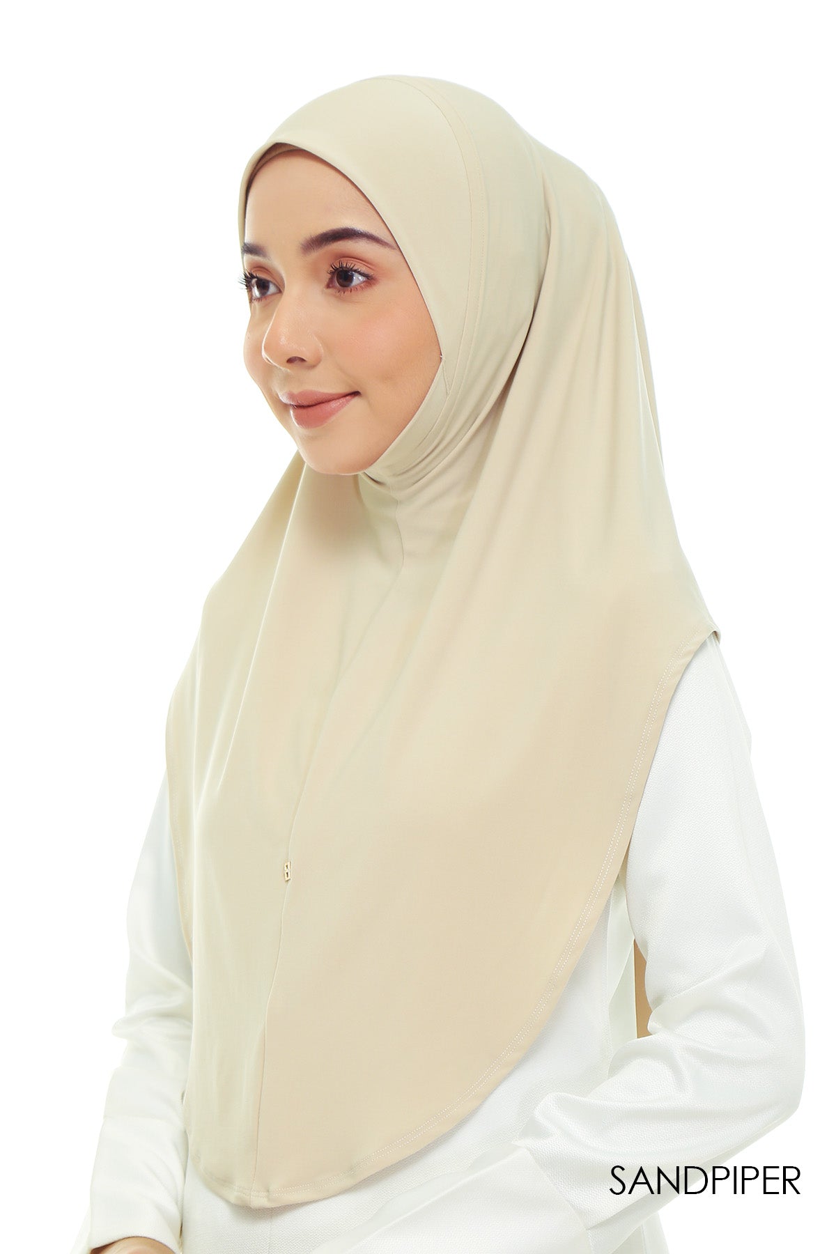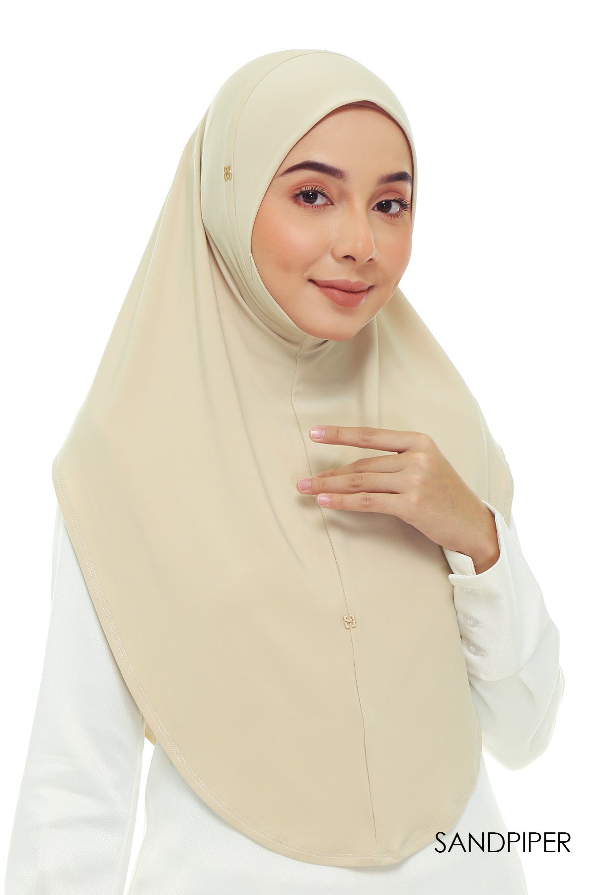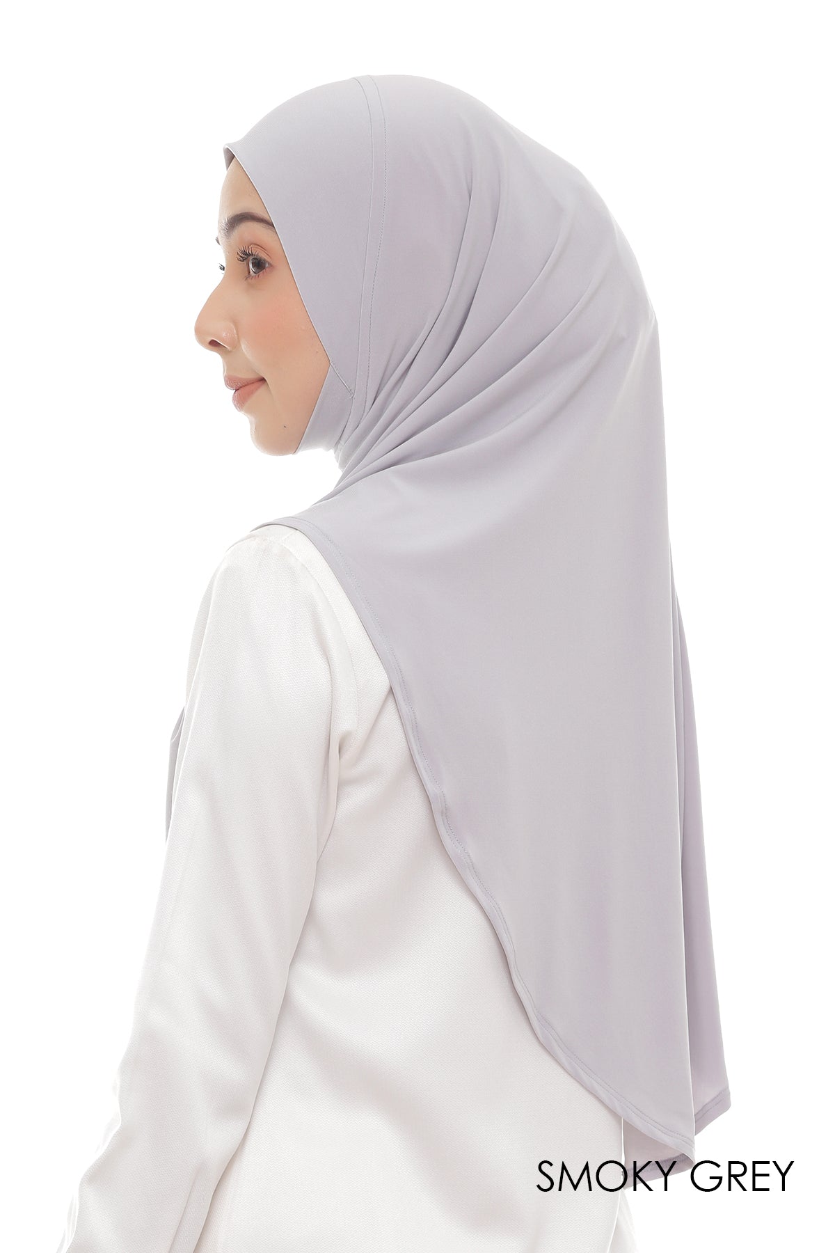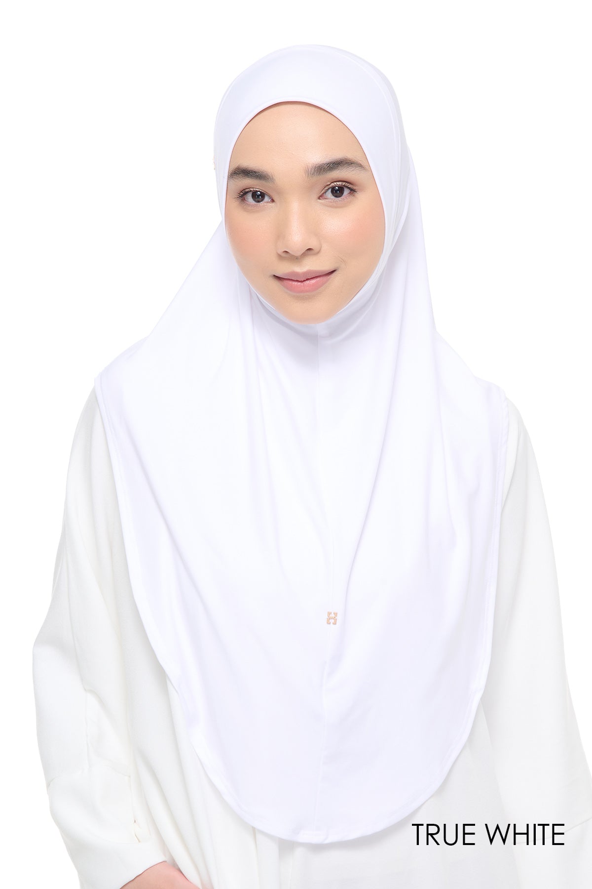 Made from an ironless, soft-to-touch lycra for its body and awning, guaranteeing a hassle-free, stretchable look. It is perfect to be matched with either printed or plain outift, making it a versatile tudung option. Comes in three different tudung length.
