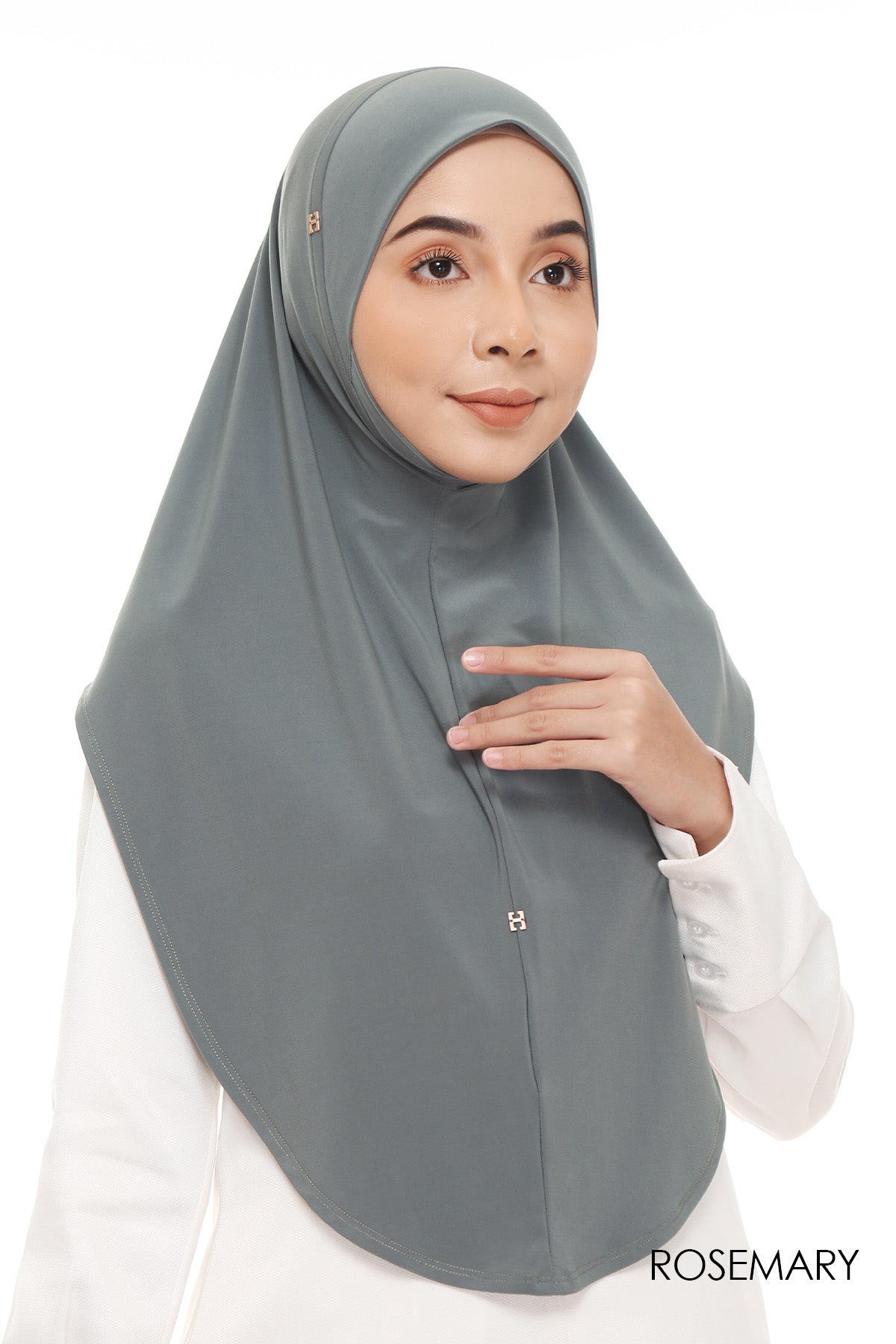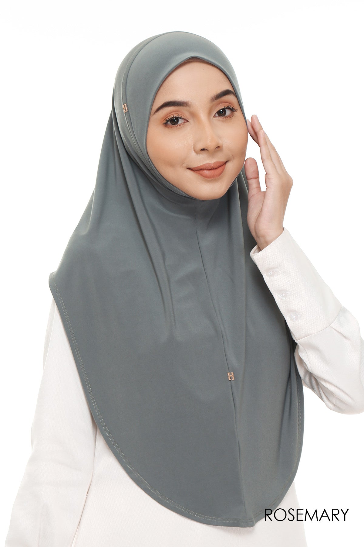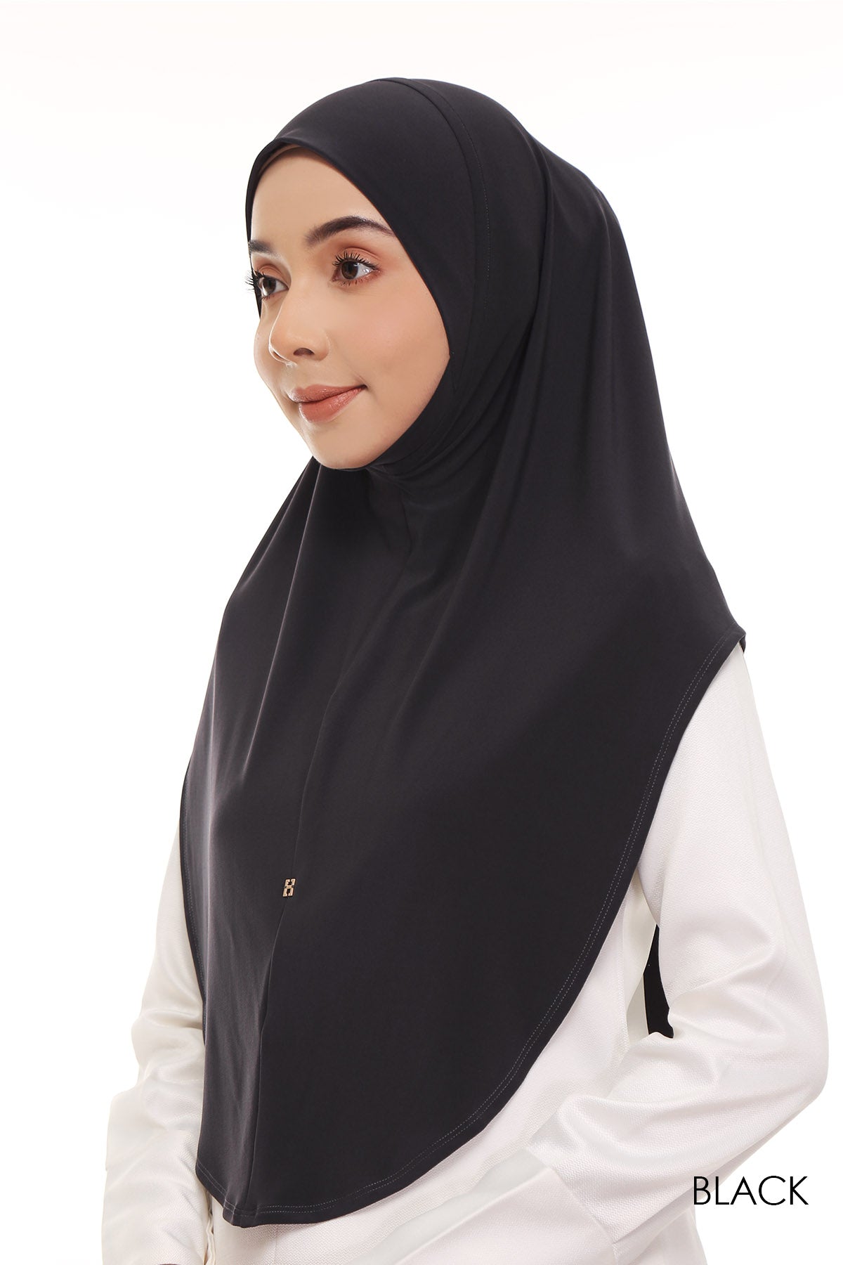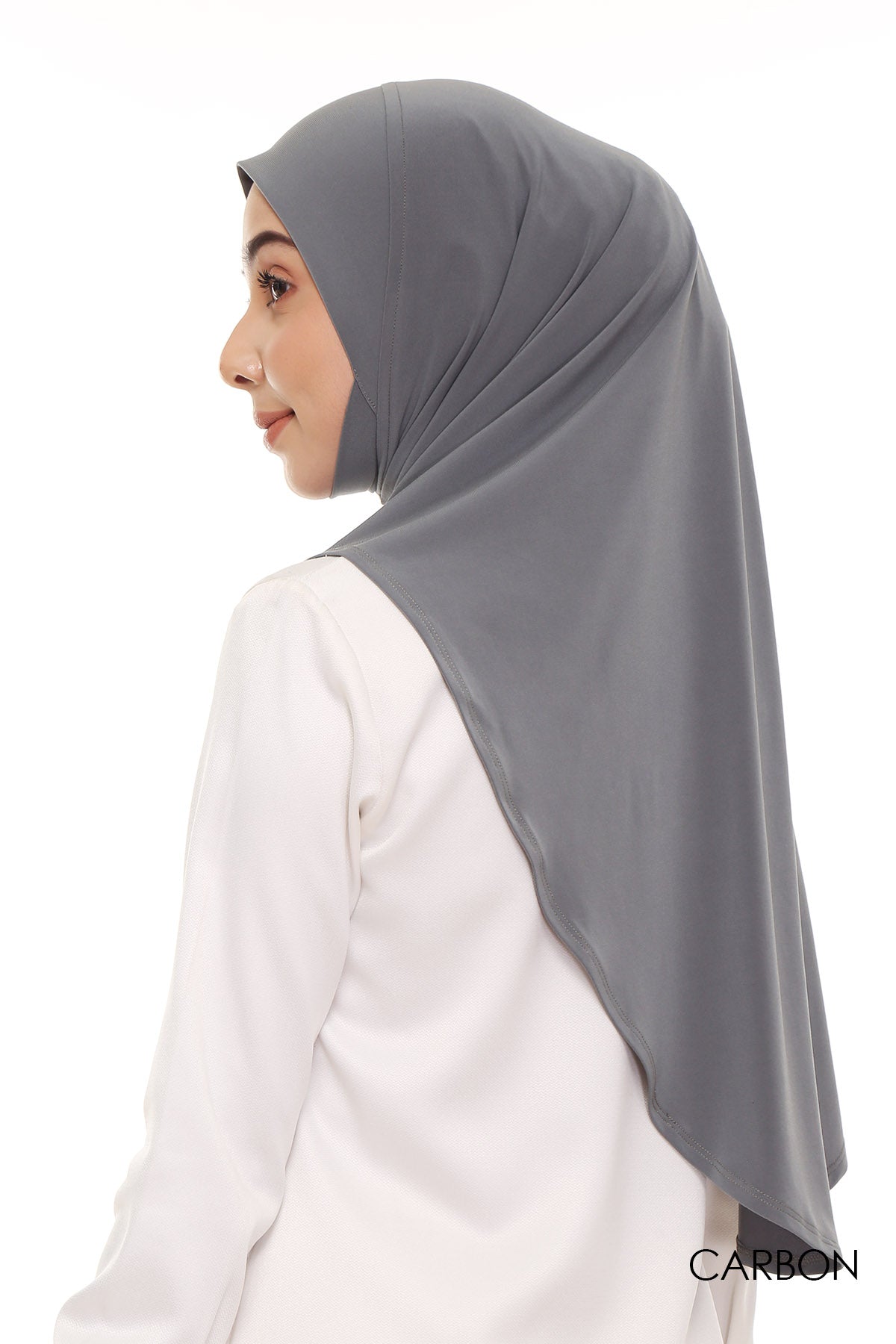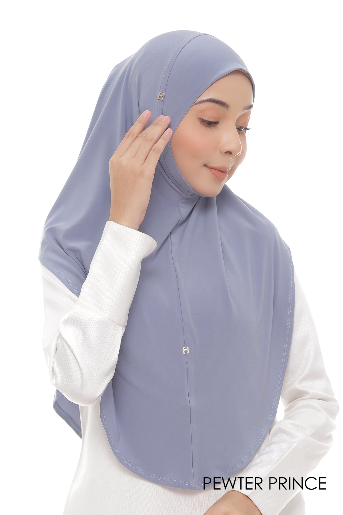 Made from an ironless, soft-to-touch lycra for its body and awning, guaranteeing a hassle-free, stretchable look. It is perfect to be matched with either printed or plain outift, making it a versatile tudung option. Comes in three different tudung length.