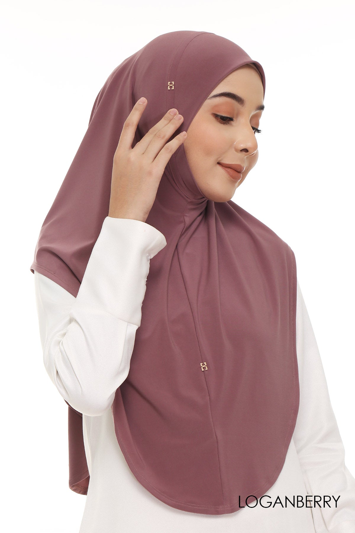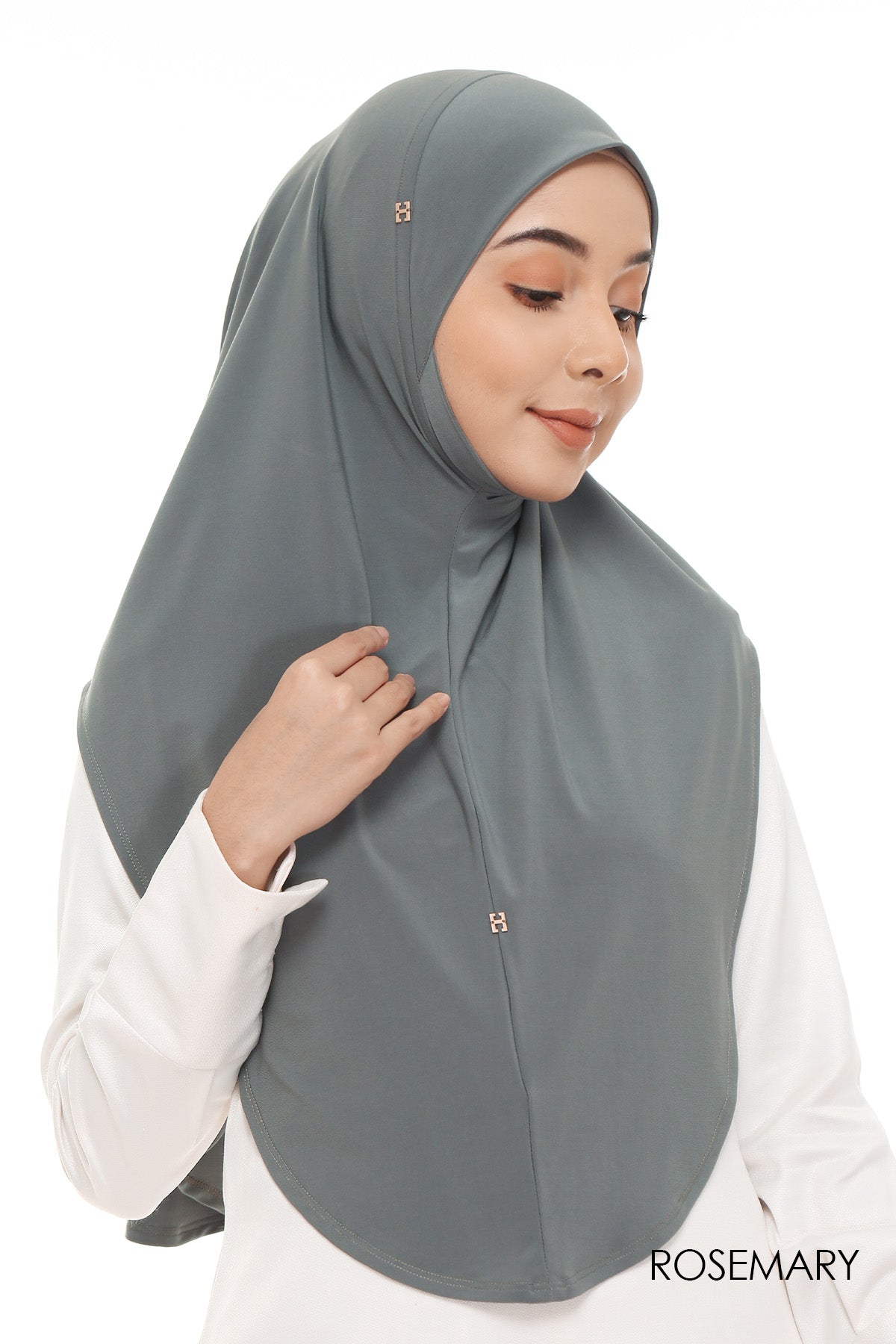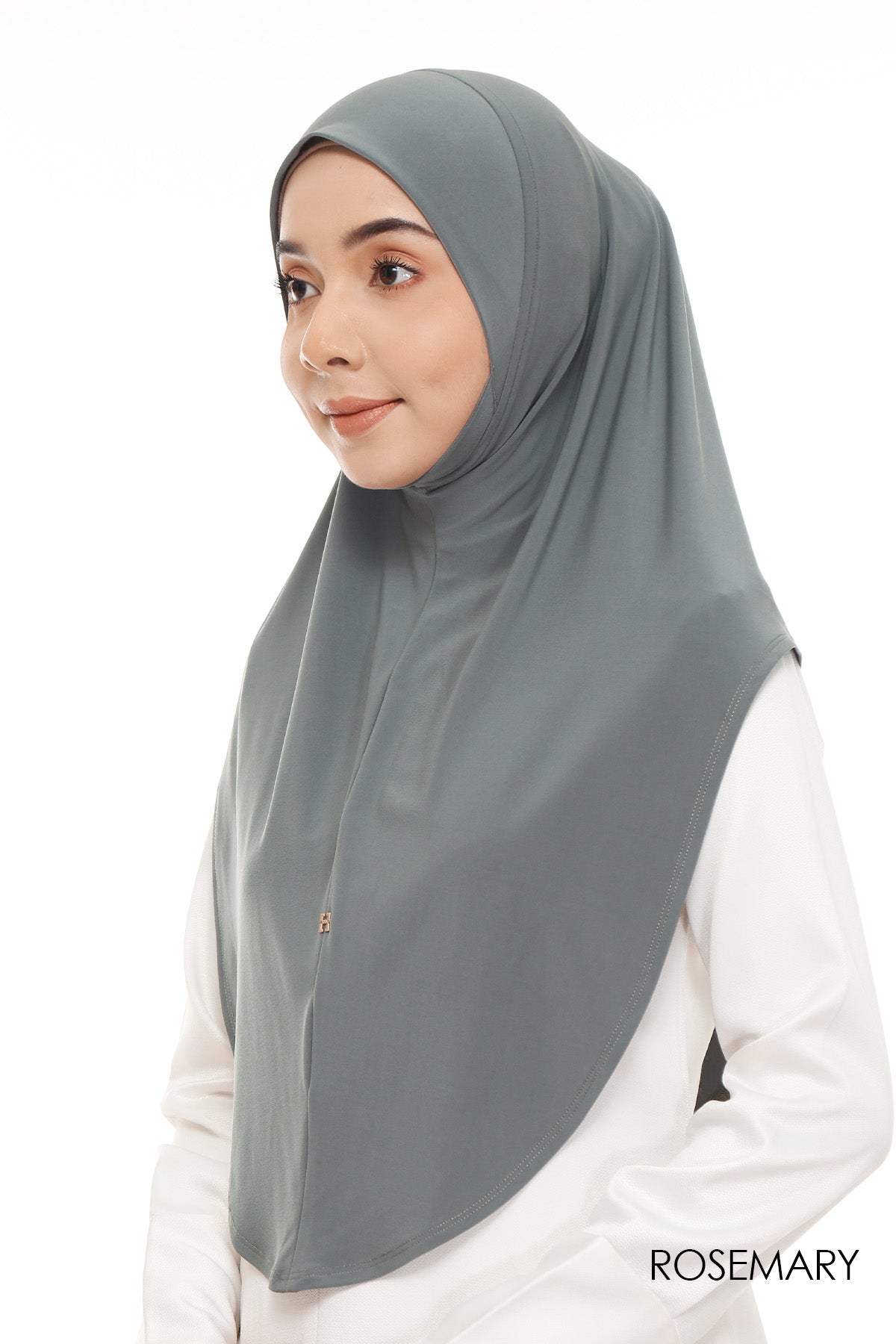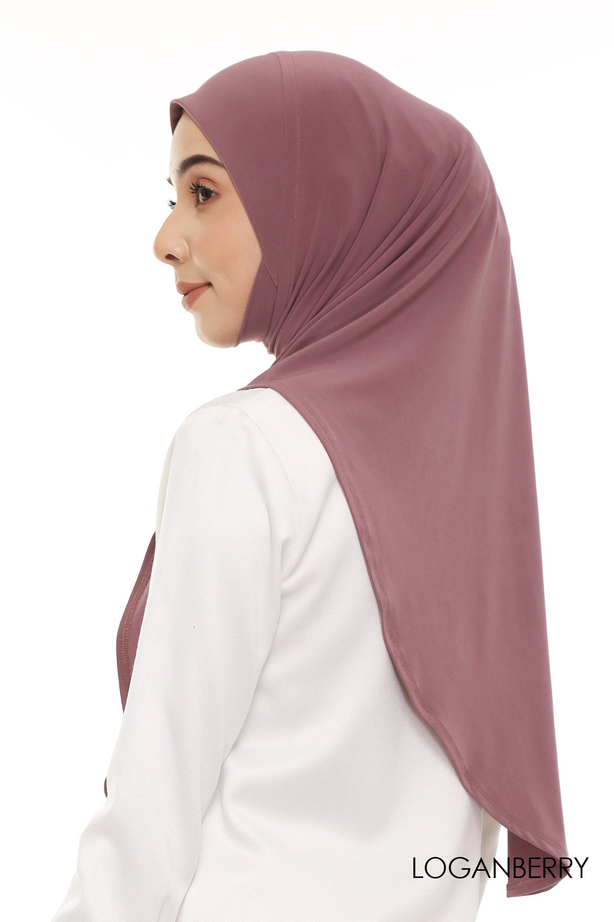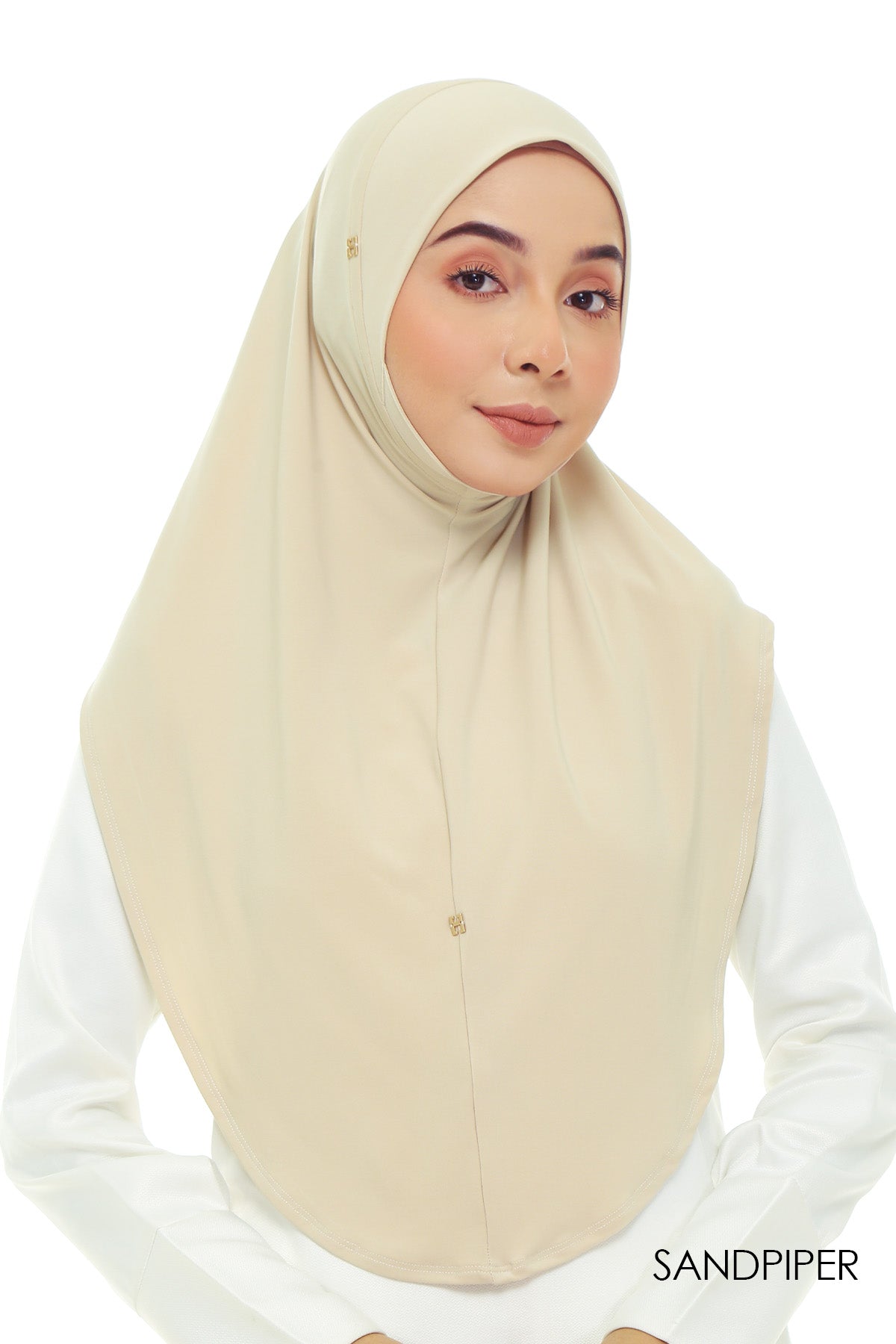 Made from an ironless, soft-to-touch lycra for its body and awning, guaranteeing a hassle-free, stretchable look. It is perfect to be matched with either printed or plain outift, making it a versatile tudung option. Comes in three different tudung length.