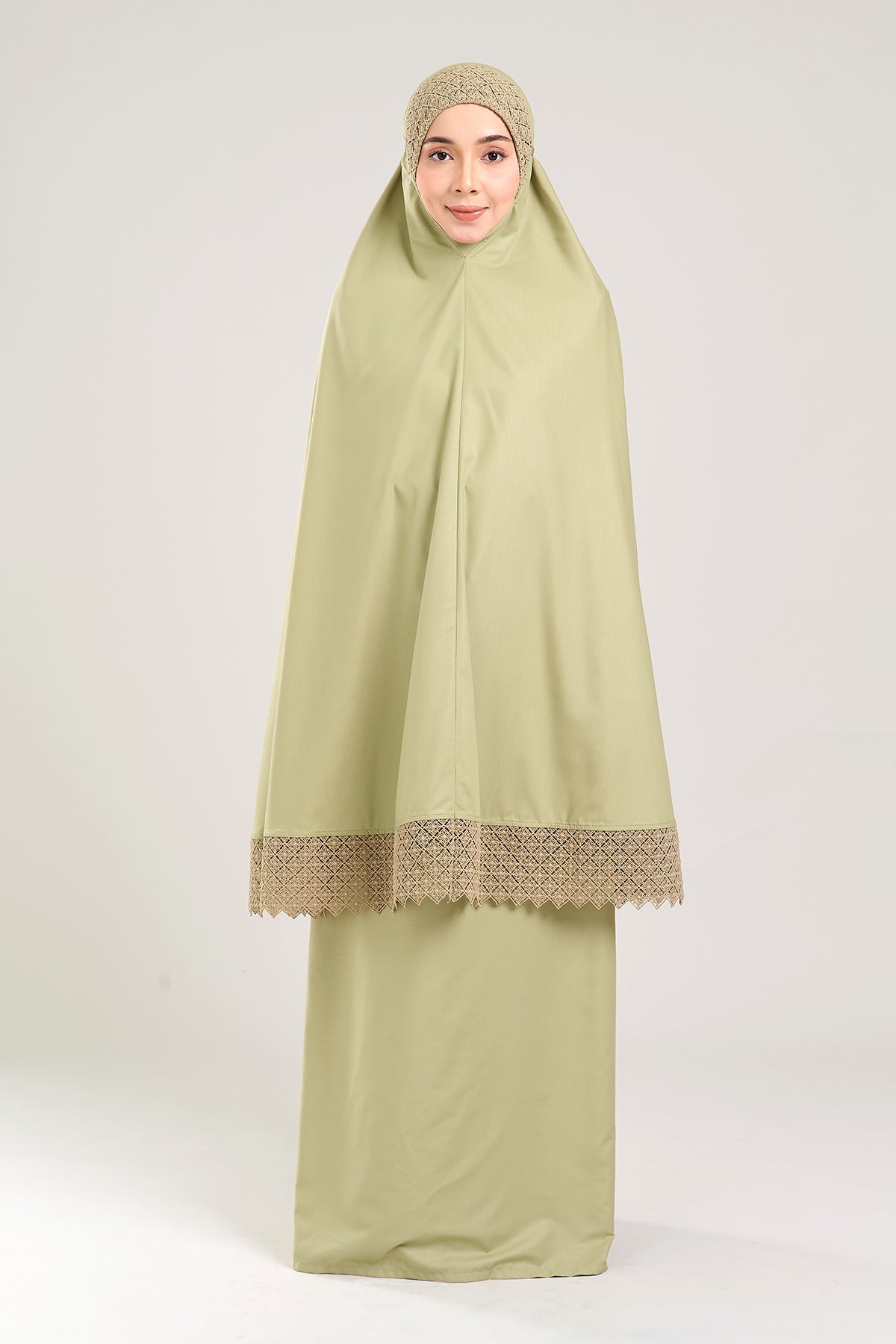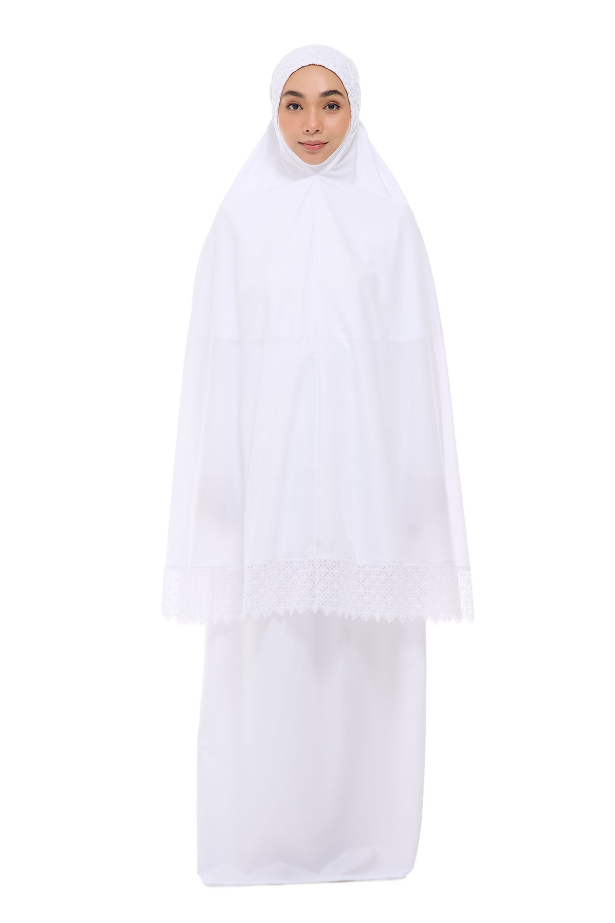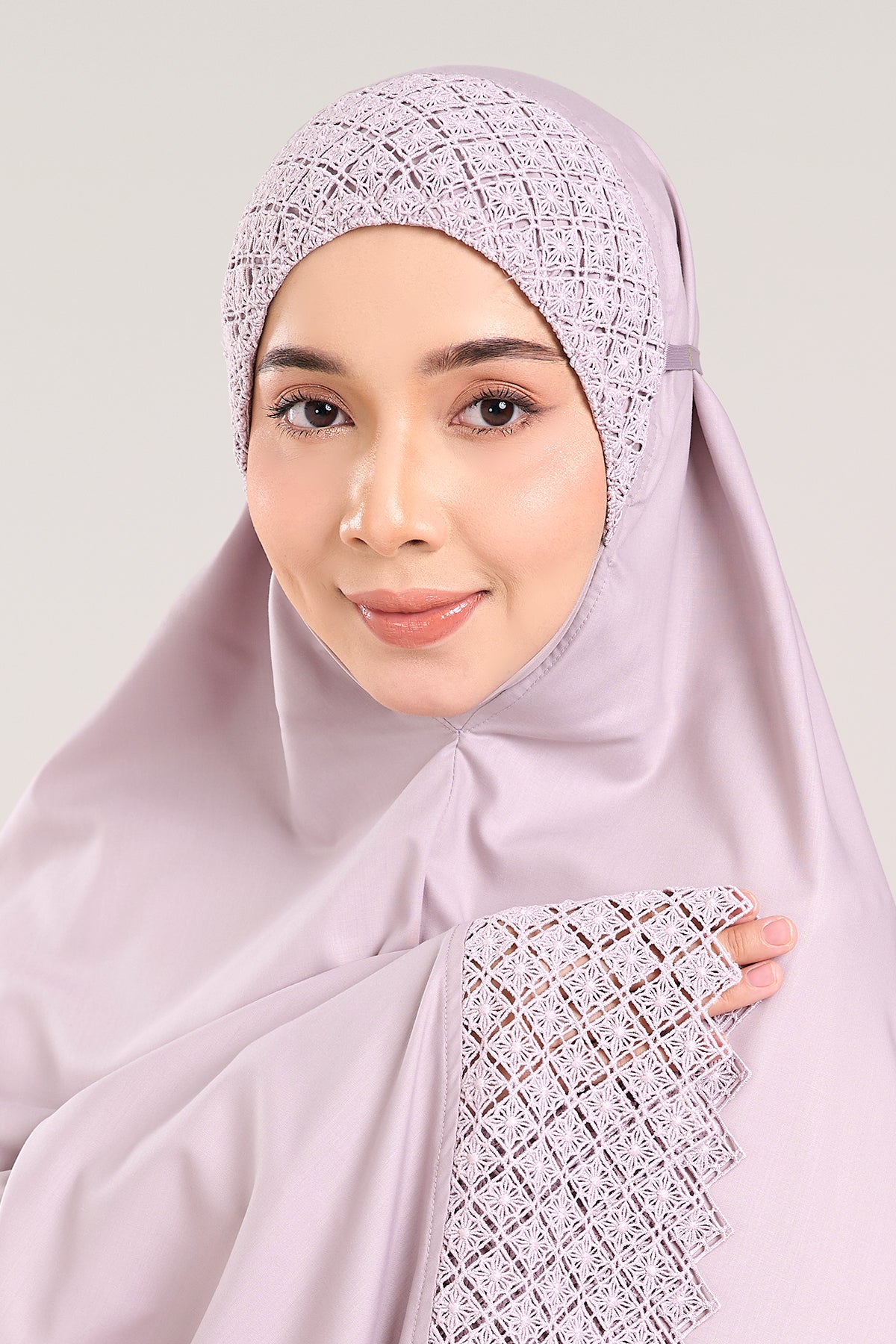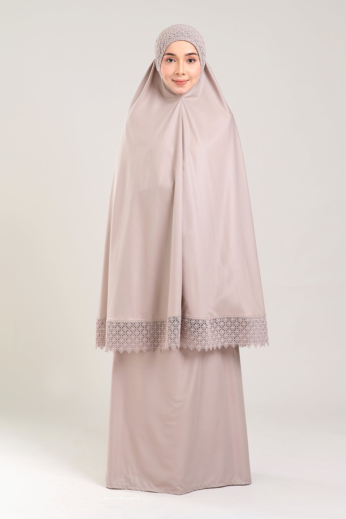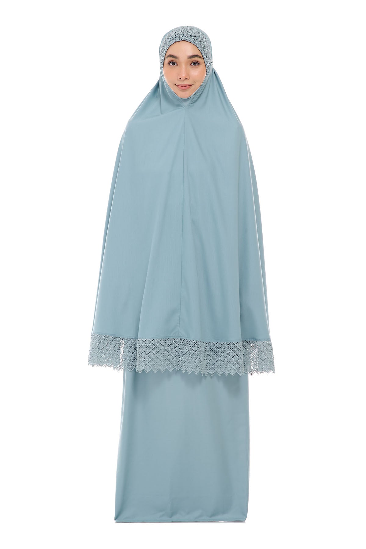 Crafted from the reputable KUF/KUF+ fabric, this telekung ensures ventilation, durability, quick drying, and a soft skin feel. The detailed and durable khadura lace, inspired by Asanoha's geometry sets it apart. Matching designs for adults and kids allow for coordination, and its UV protection makes it the ideal choice for protective prayer sessions. Available in Classic and Harmony facelook, it also comes in midi size, and a separate option includes an adjustable-length jupe skirt.