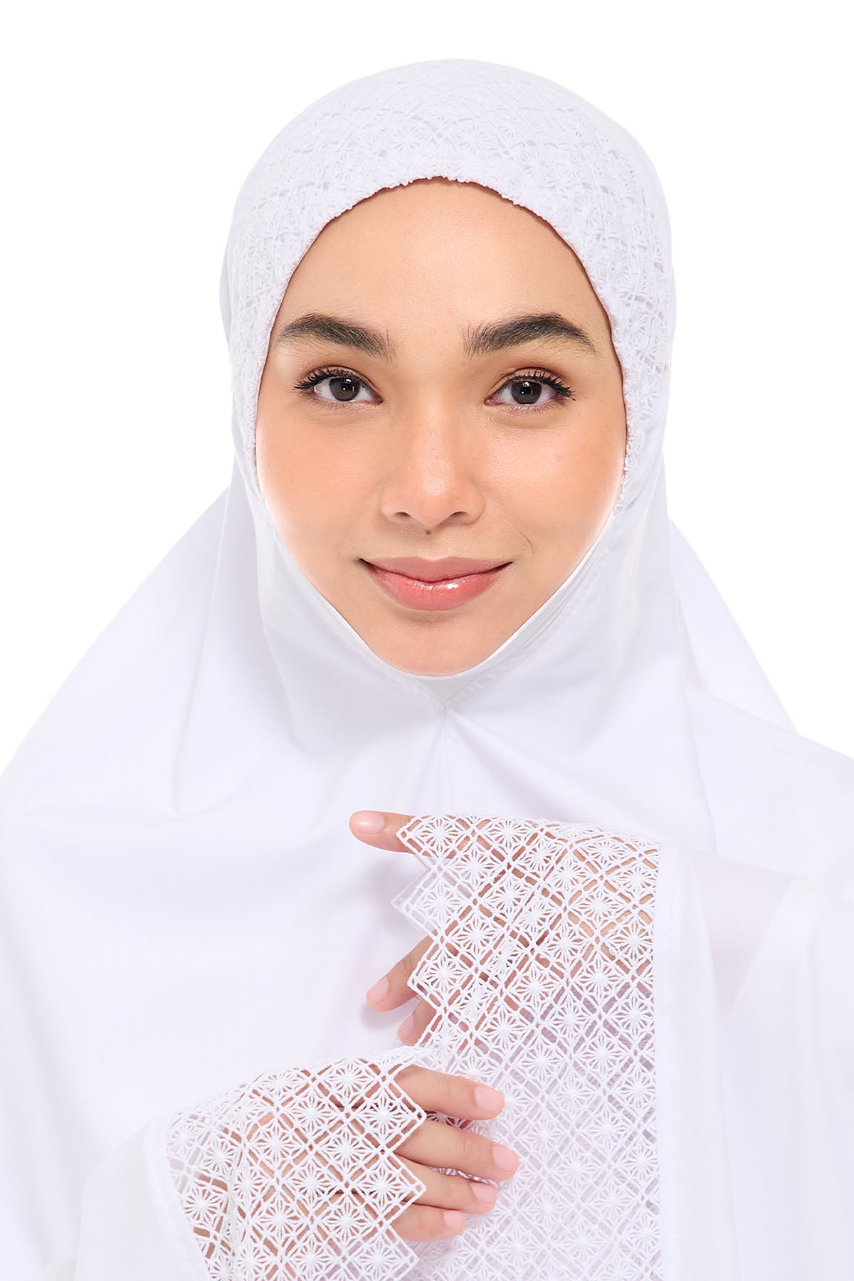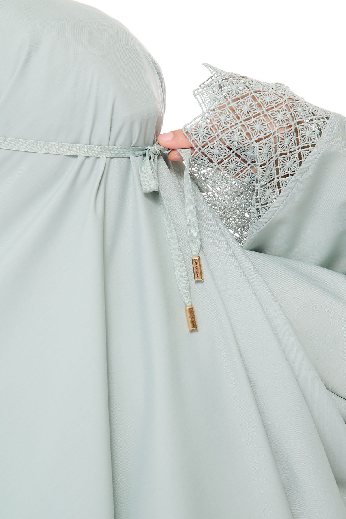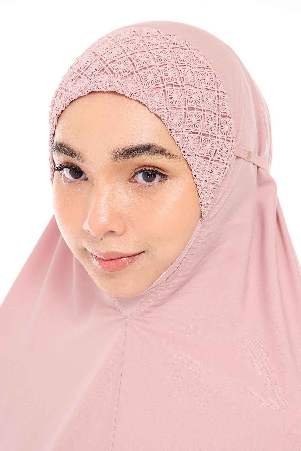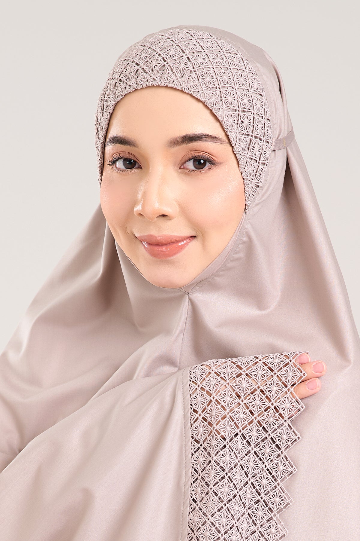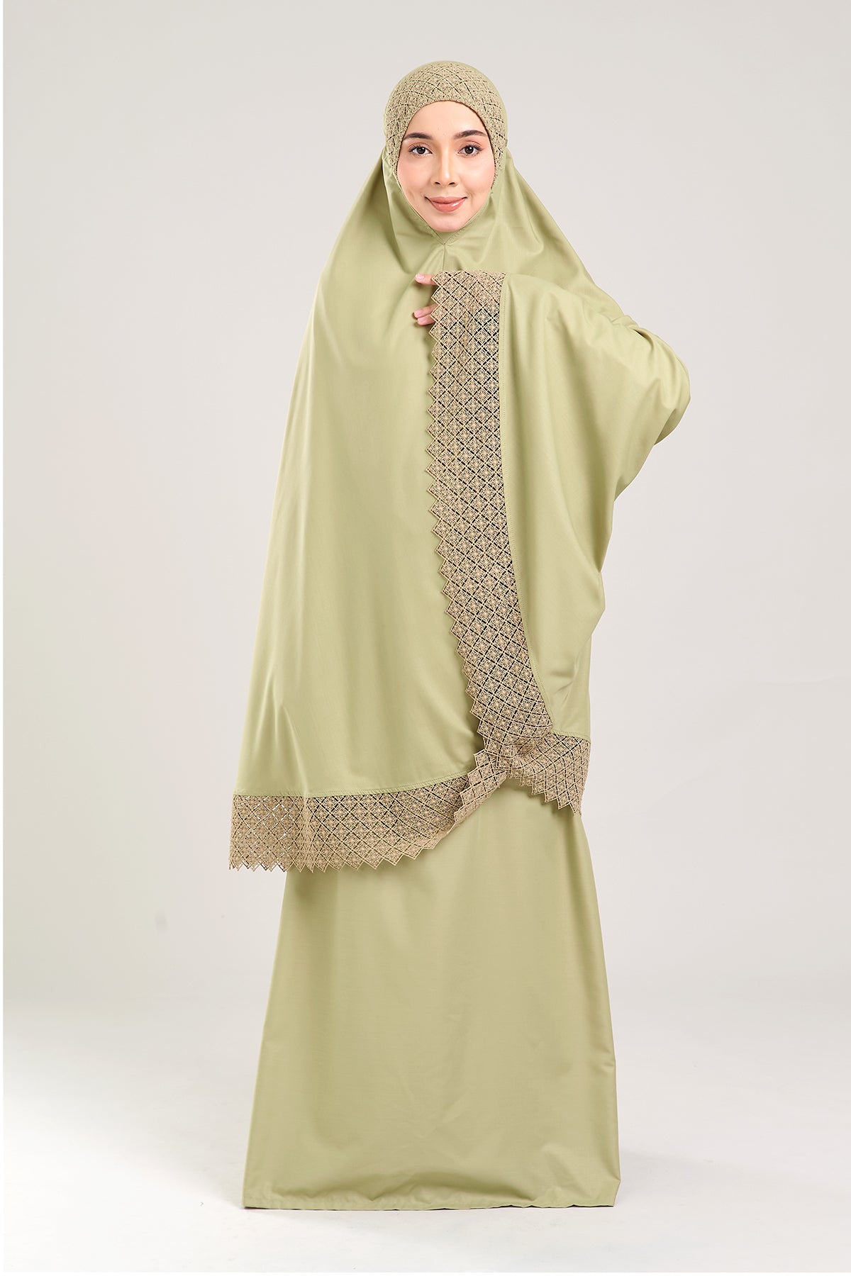 Crafted from the reputable KUF/KUF+ fabric, this telekung ensures ventilation, durability, quick drying, and a soft skin feel. The detailed and durable khadura lace, inspired by Asanoha's geometry sets it apart. Matching designs for adults and kids allow for coordination, and its UV protection makes it the ideal choice for protective prayer sessions. Available in Classic and Harmony facelook, it also comes in midi size, and a separate option includes an adjustable-length jupe skirt.