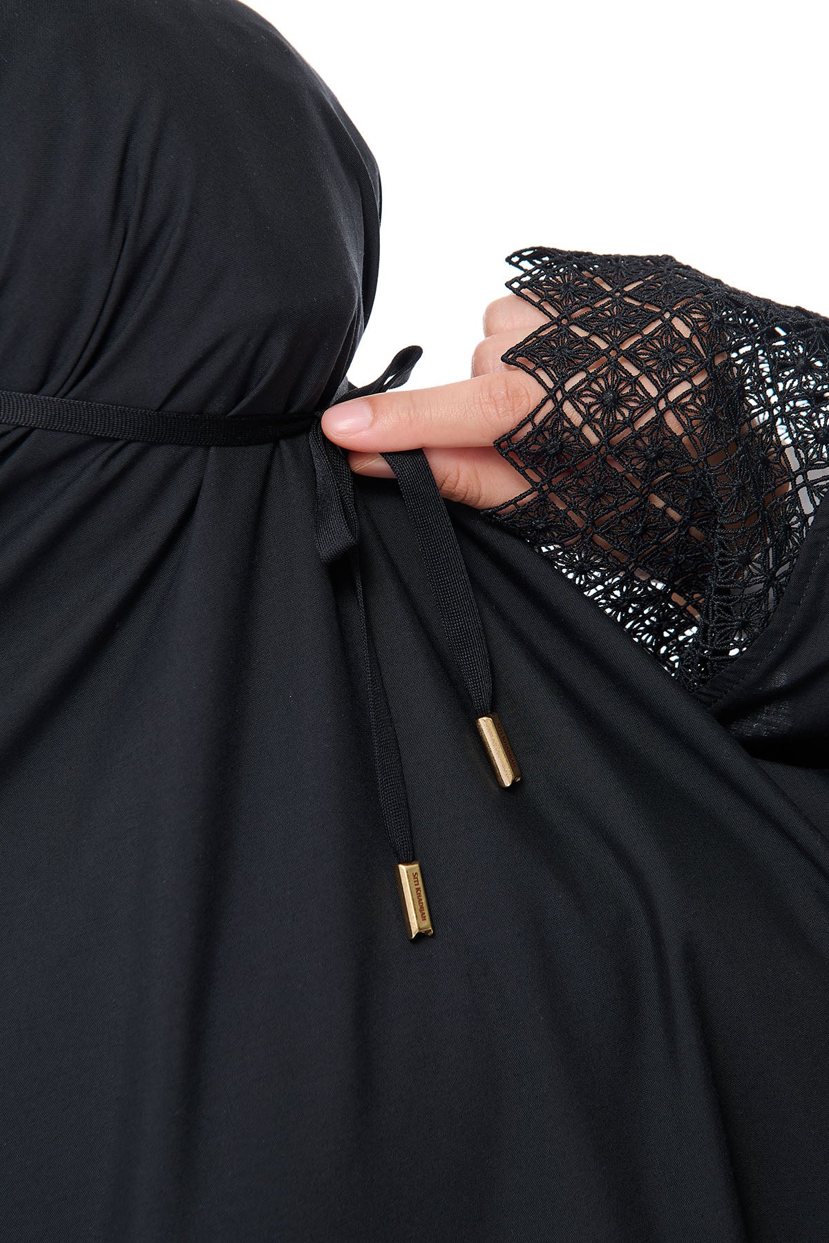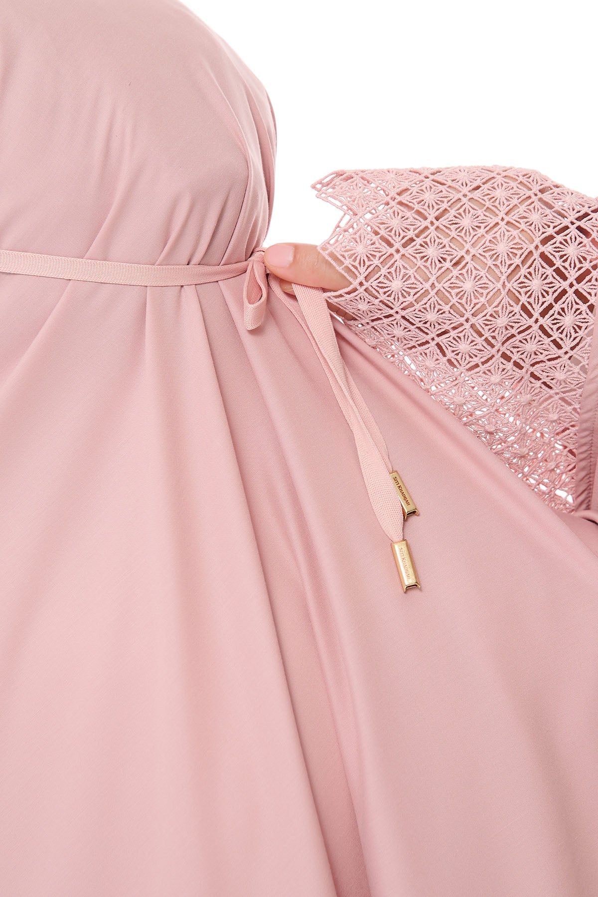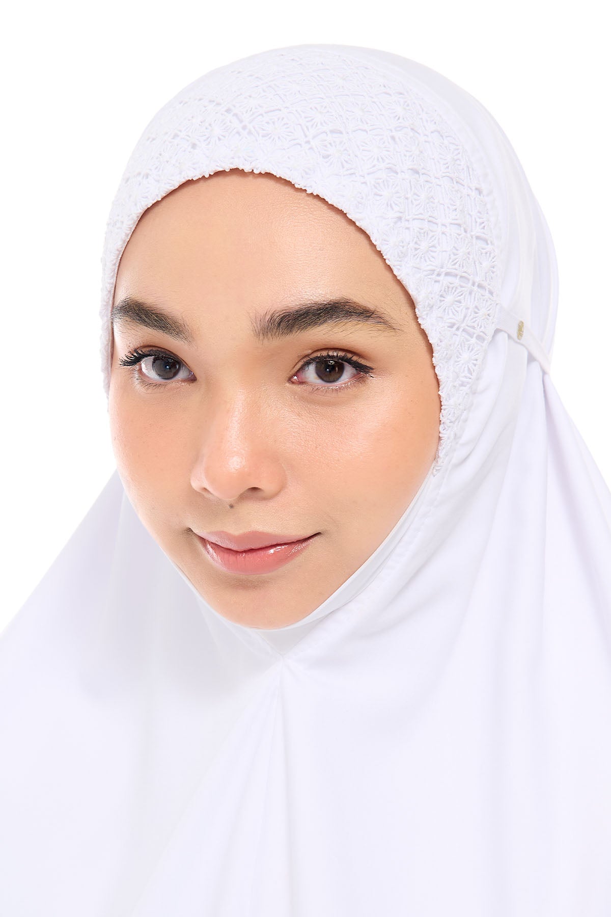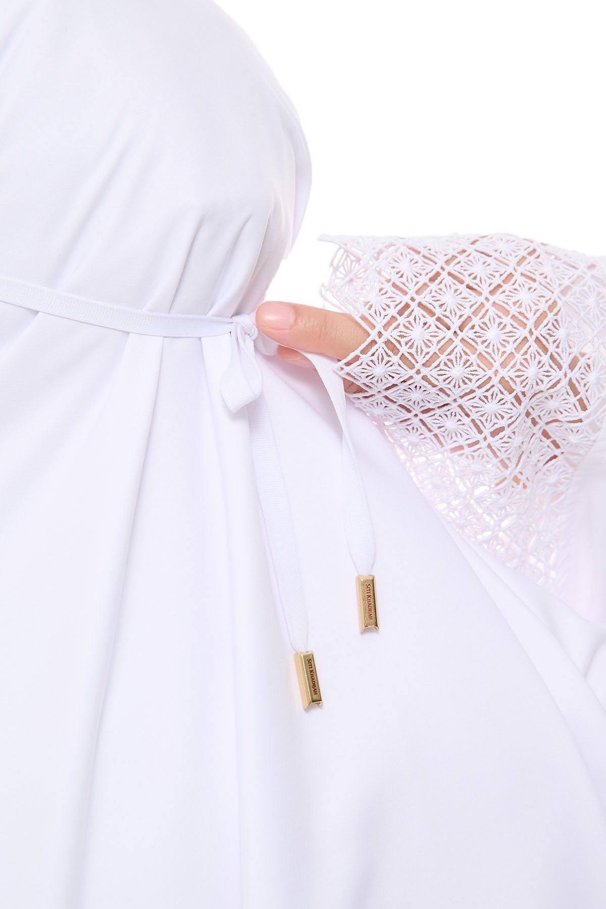 Crafted from the reputable KUF/KUF+ fabric, this telekung ensures ventilation, durability, quick drying, and a soft skin feel. The detailed and durable khadura lace, inspired by Asanoha's geometry sets it apart. Matching designs for adults and kids allow for coordination, and its UV protection makes it the ideal choice for protective prayer sessions. Available in Classic and Harmony facelook, it also comes in midi size, and a separate option includes an adjustable-length jupe skirt.