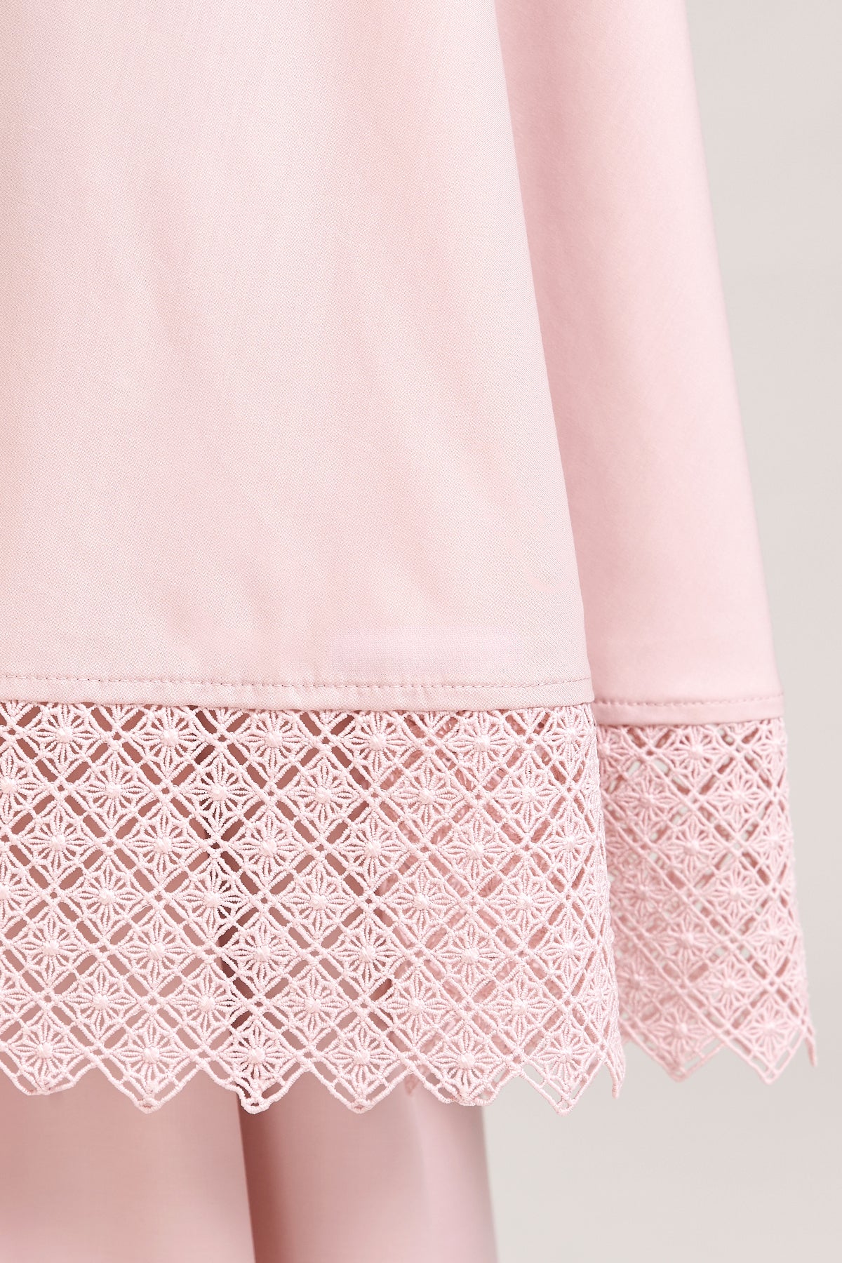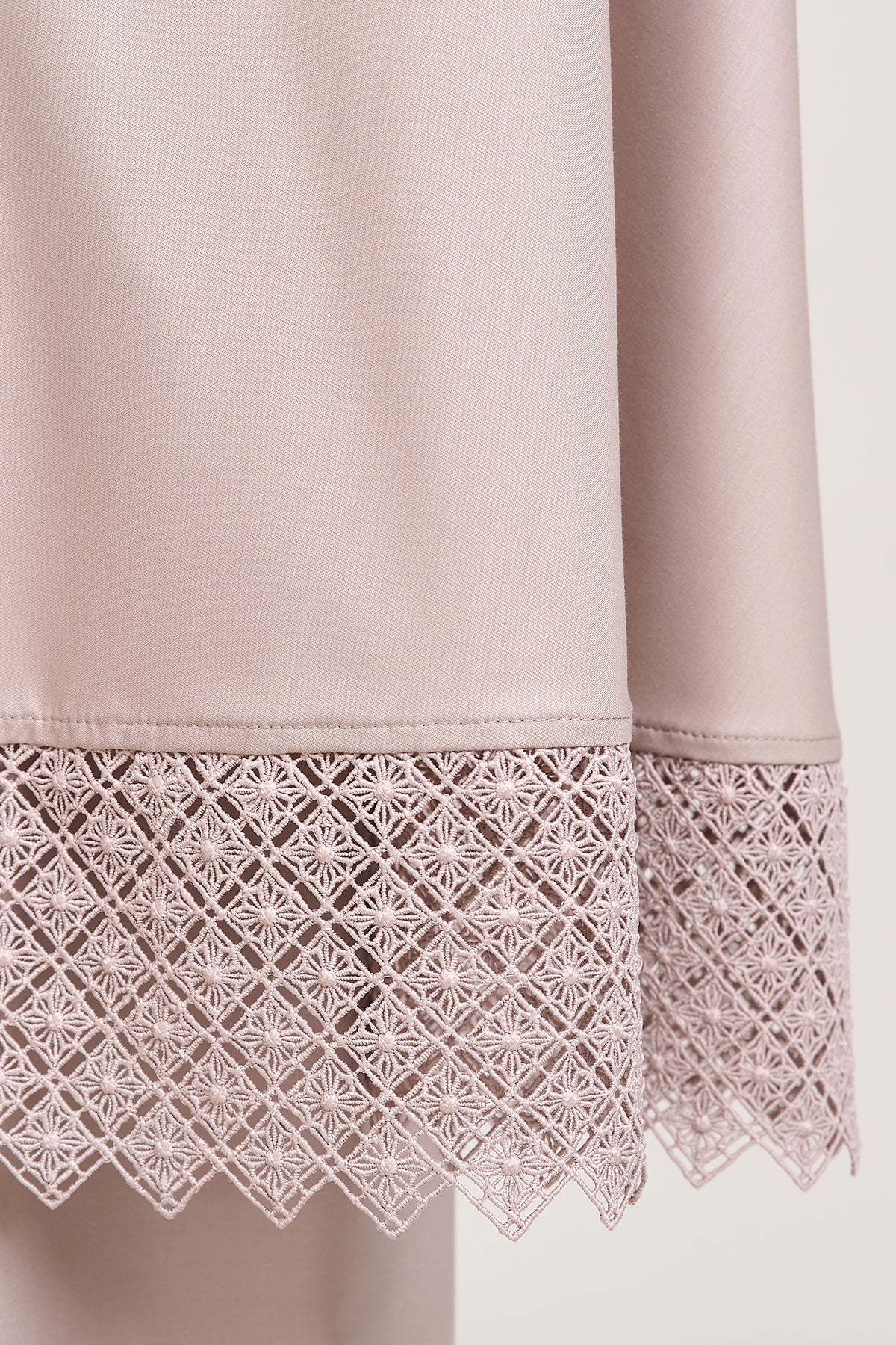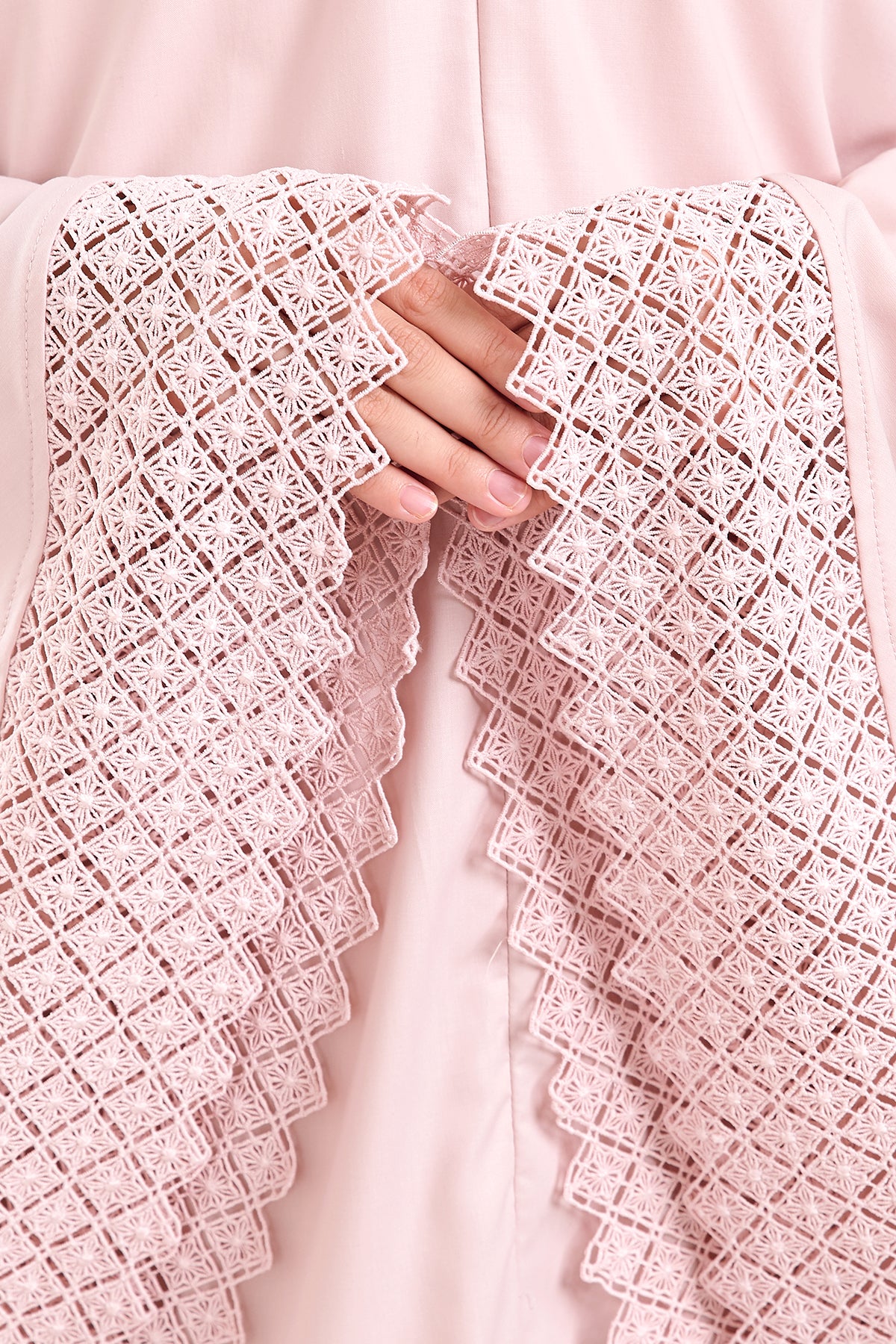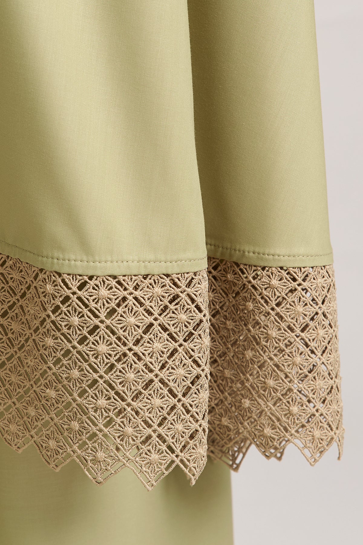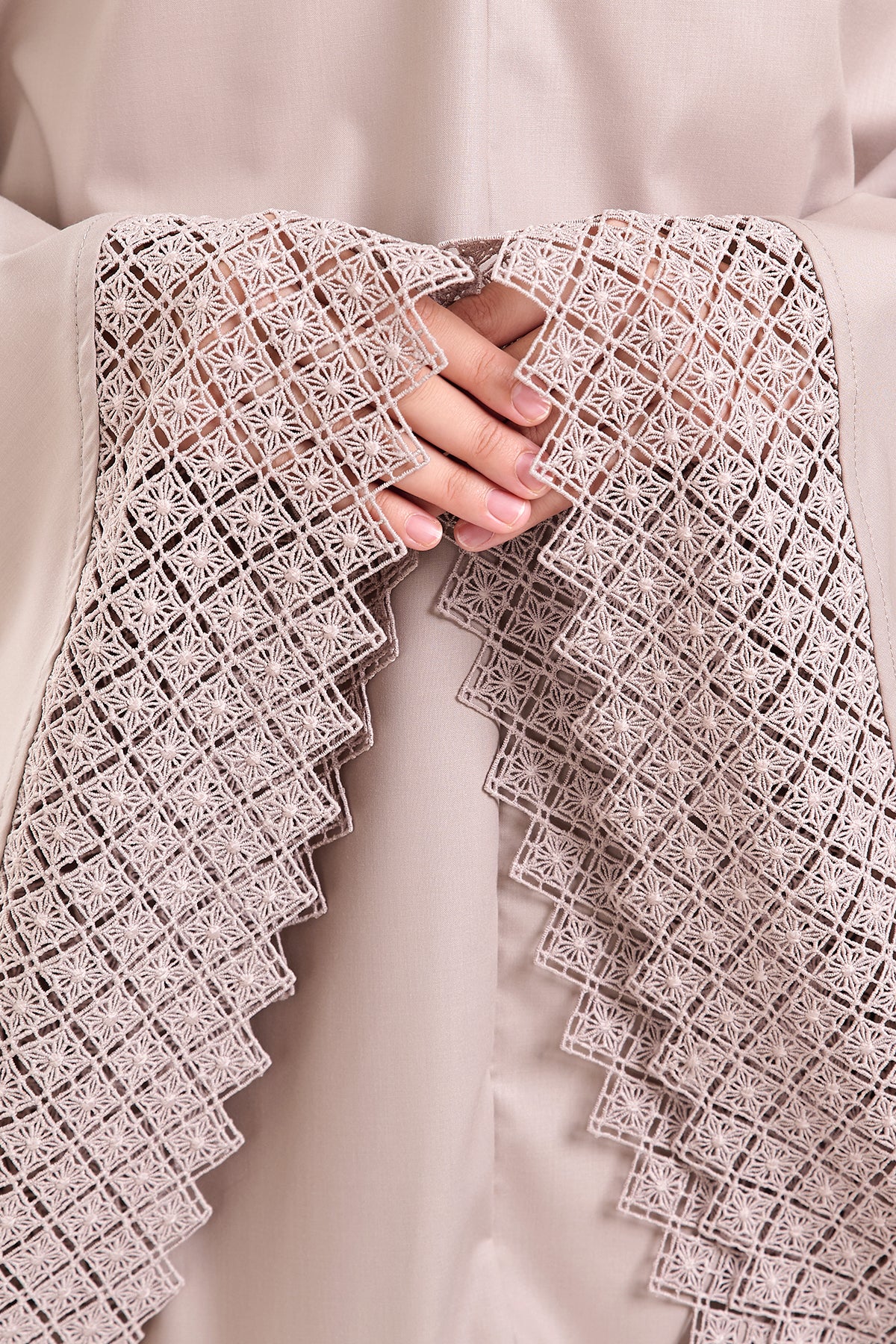 Crafted from the reputable KUF/KUF+ fabric, this telekung ensures ventilation, durability, quick drying, and a soft skin feel. The detailed and durable khadura lace, inspired by Asanoha's geometry sets it apart. Matching designs for adults and kids allow for coordination, and its UV protection makes it the ideal choice for protective prayer sessions. Available in Classic and Harmony facelook, it also comes in midi size, and a separate option includes an adjustable-length jupe skirt.