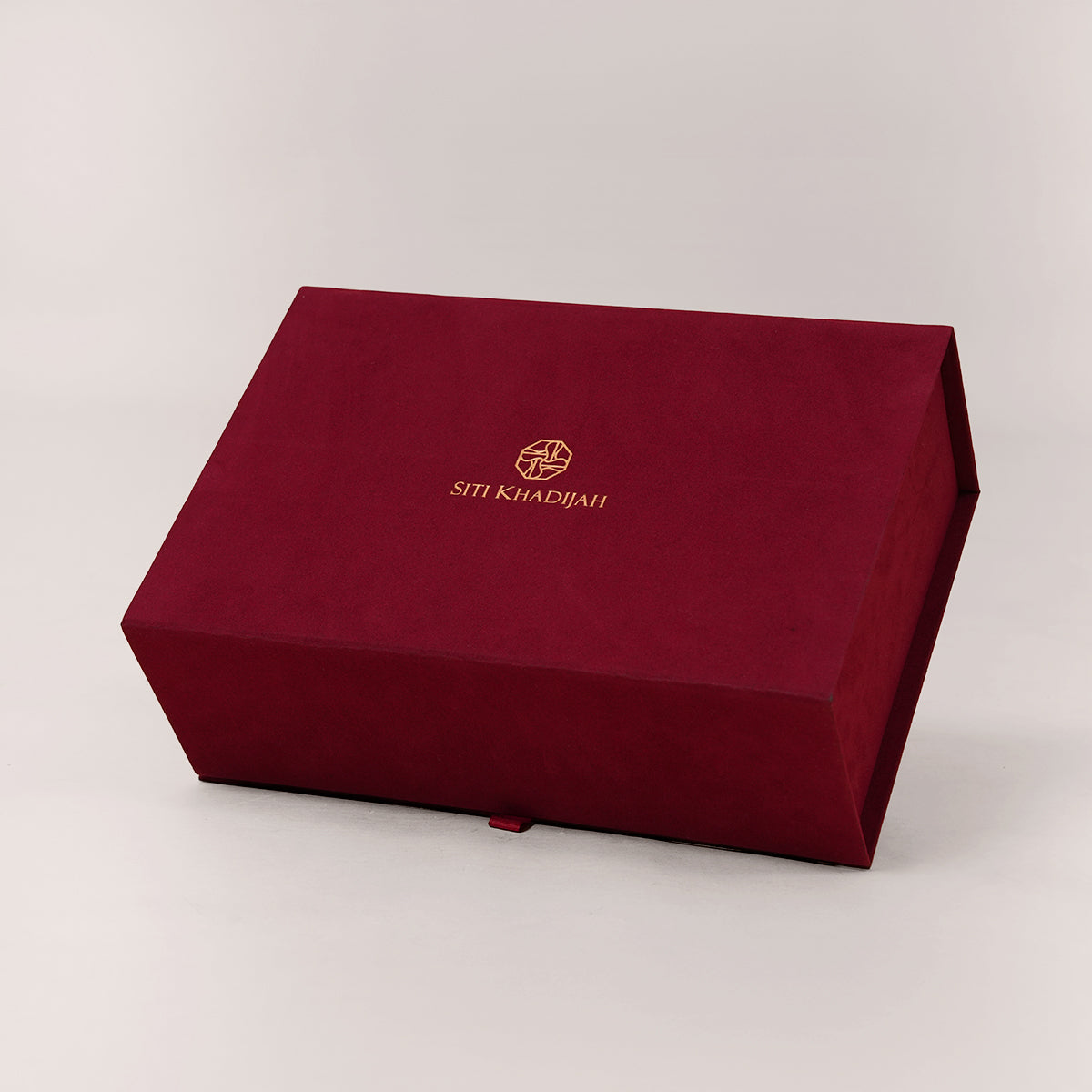 This premium velvet box is made from soft short fur velvet and designed to look elegant and luxurious. It features a smooth velvet finish with gold hot stamping on the Siti Khadijah logo, adding a refined and sophisticated touch. The foldable structure allows for easy storage and space saving, while also making it reusable for personal items such as jewellery. Ideal for Siti Khadijah products, especially telekung, this box is perfect as a premium gift or hantaran box.
