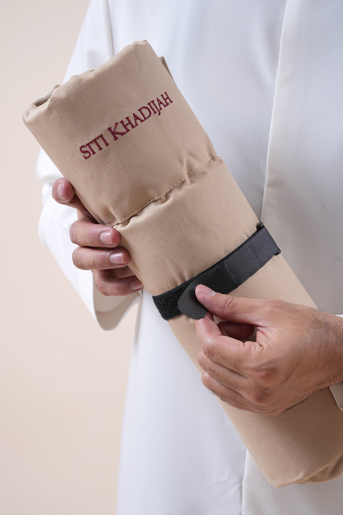 Made from 100% polyester, it is designed to deliver both comfort and practicality for long hours of seated worship. Its foldable structure and lightweight build make it ideal for Hajj, Umrah, or travel. The cushioned base provides solid post-salat support while the detachable sling bag protects against tears and creases during transport.
