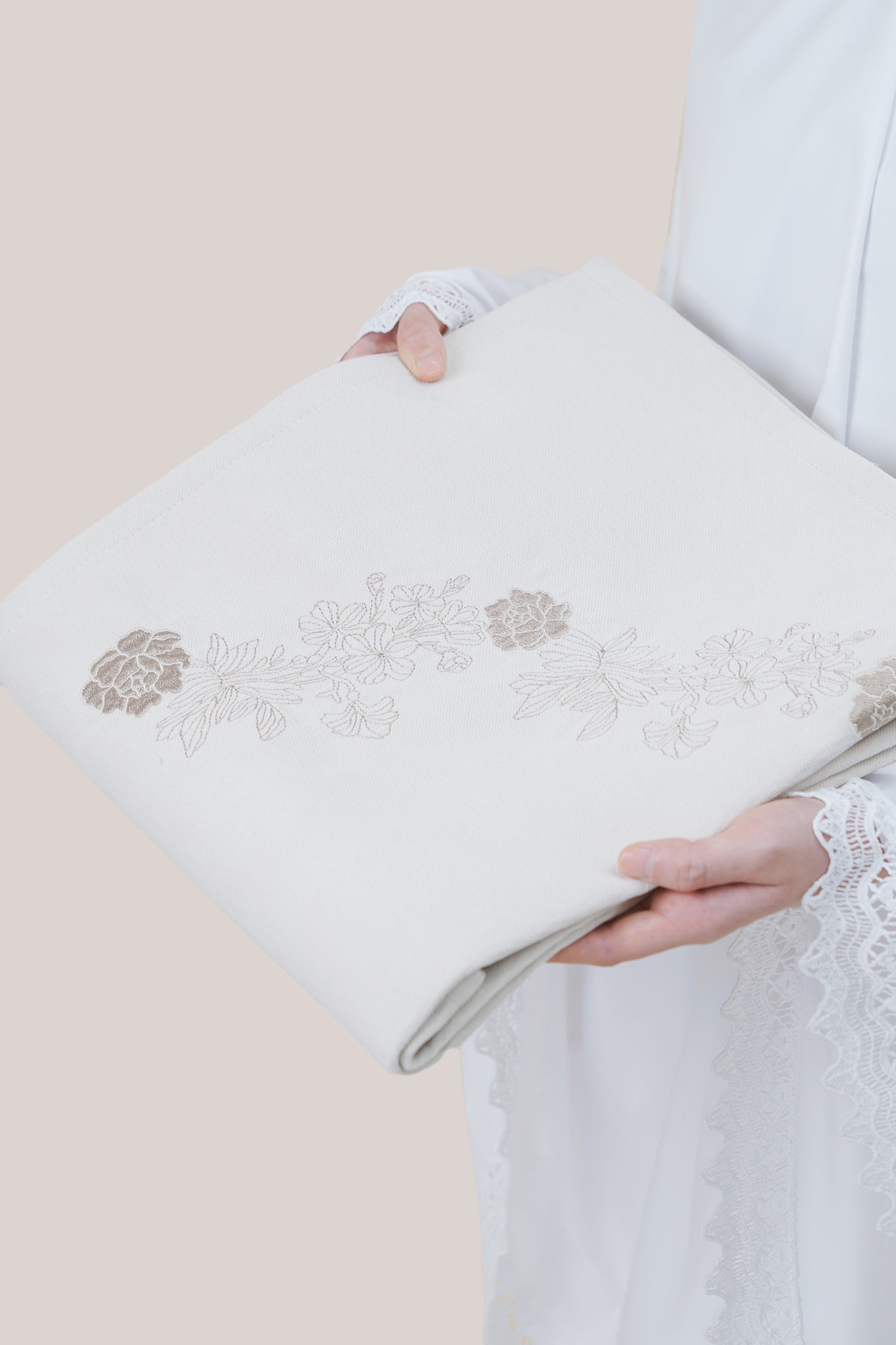Crafted from soft chenille material, it offers a plush, lightweight feel for enhanced comfort while its delicate floral embroidery adds a touch of sophistication to your prayer essentials. With its foldable design and anti-slip backing, this mat is easy to store and transport, making it an excellent companion for daily prayers or travel.