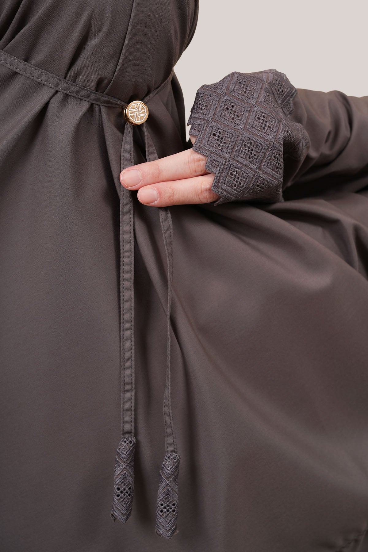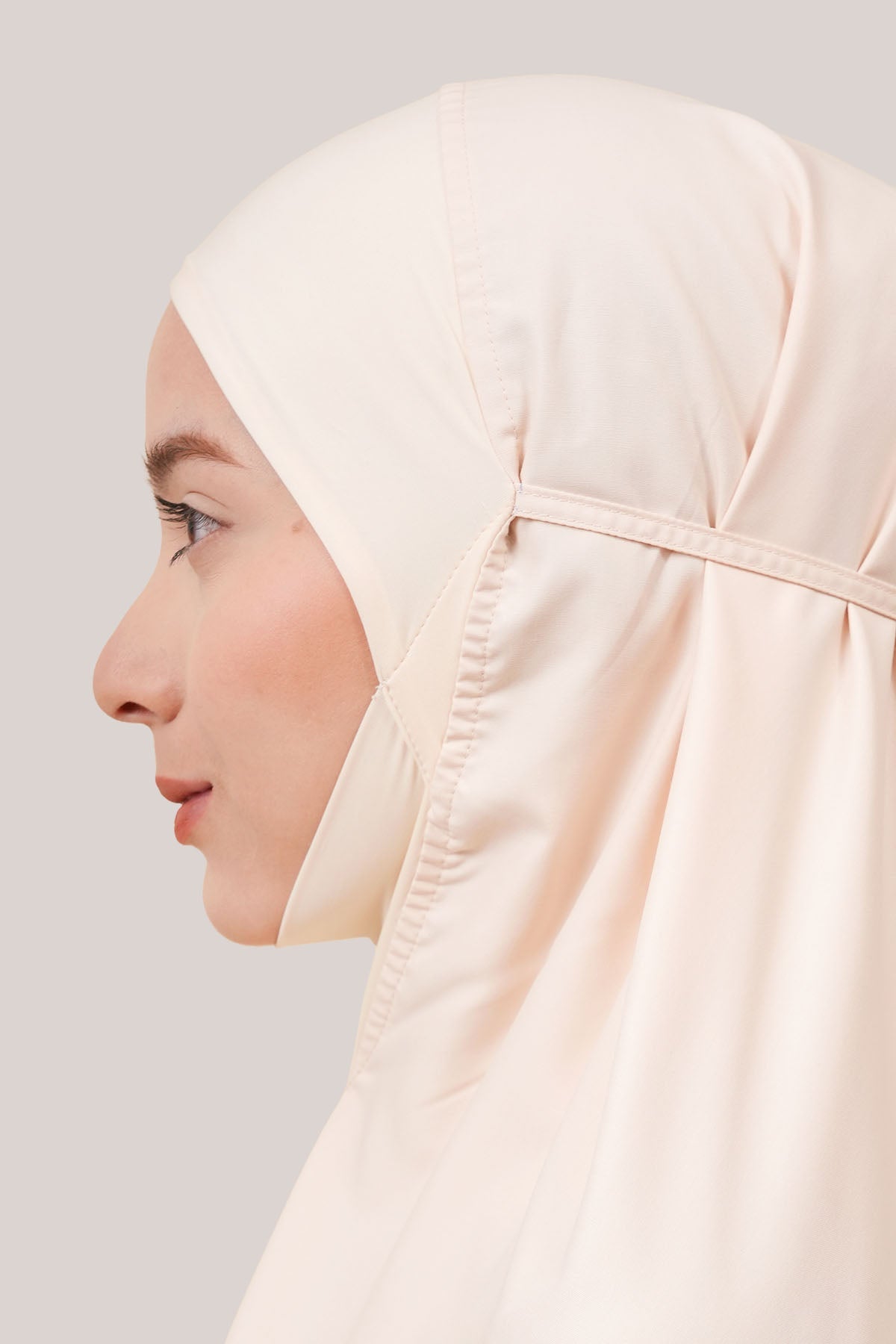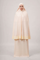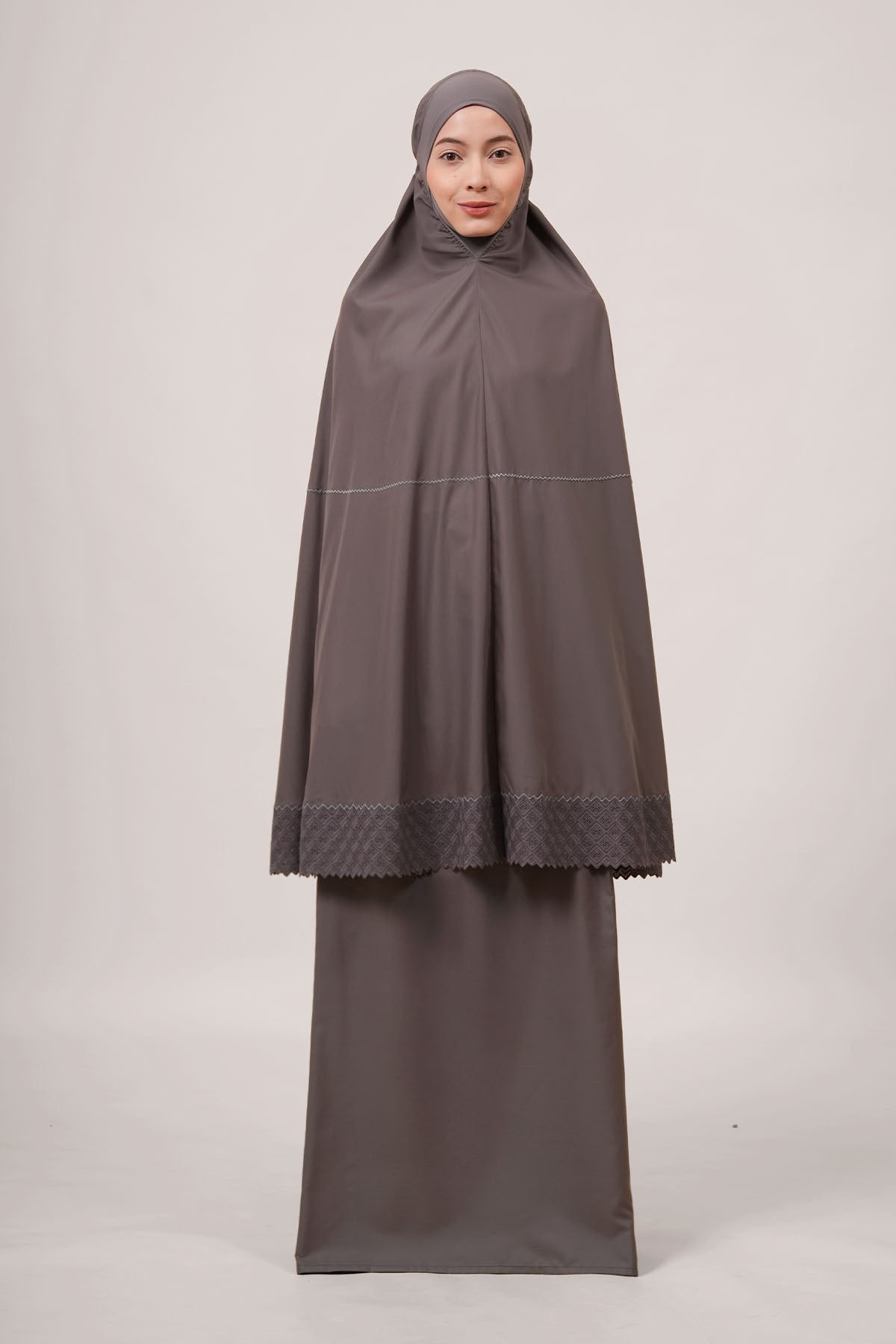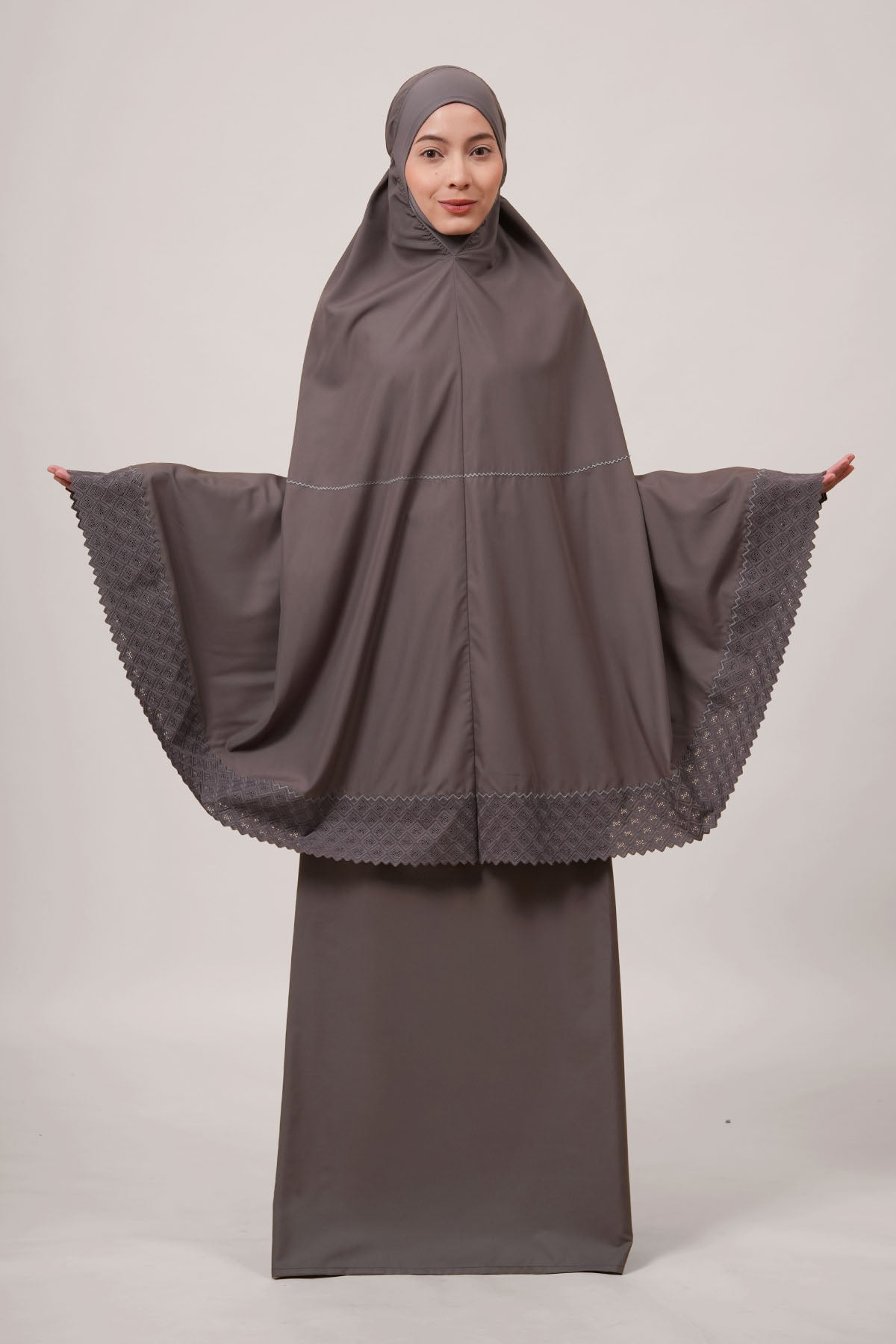 Introducing the Telekung Harmony Signature Elara, inspired by the classic and minimalist Lines of Elegance lace pattern that beautifully reflects the grace and strength of women. Crafted from durable Signature Poplin fabric that stretches without tearing and retains its colour even after multiple washes, this telekung is designed for everyday devotion. The delicate embroidery technique used to join the cotton lace with the main fabric adds a touch of refined detail to its simple yet captivating design.