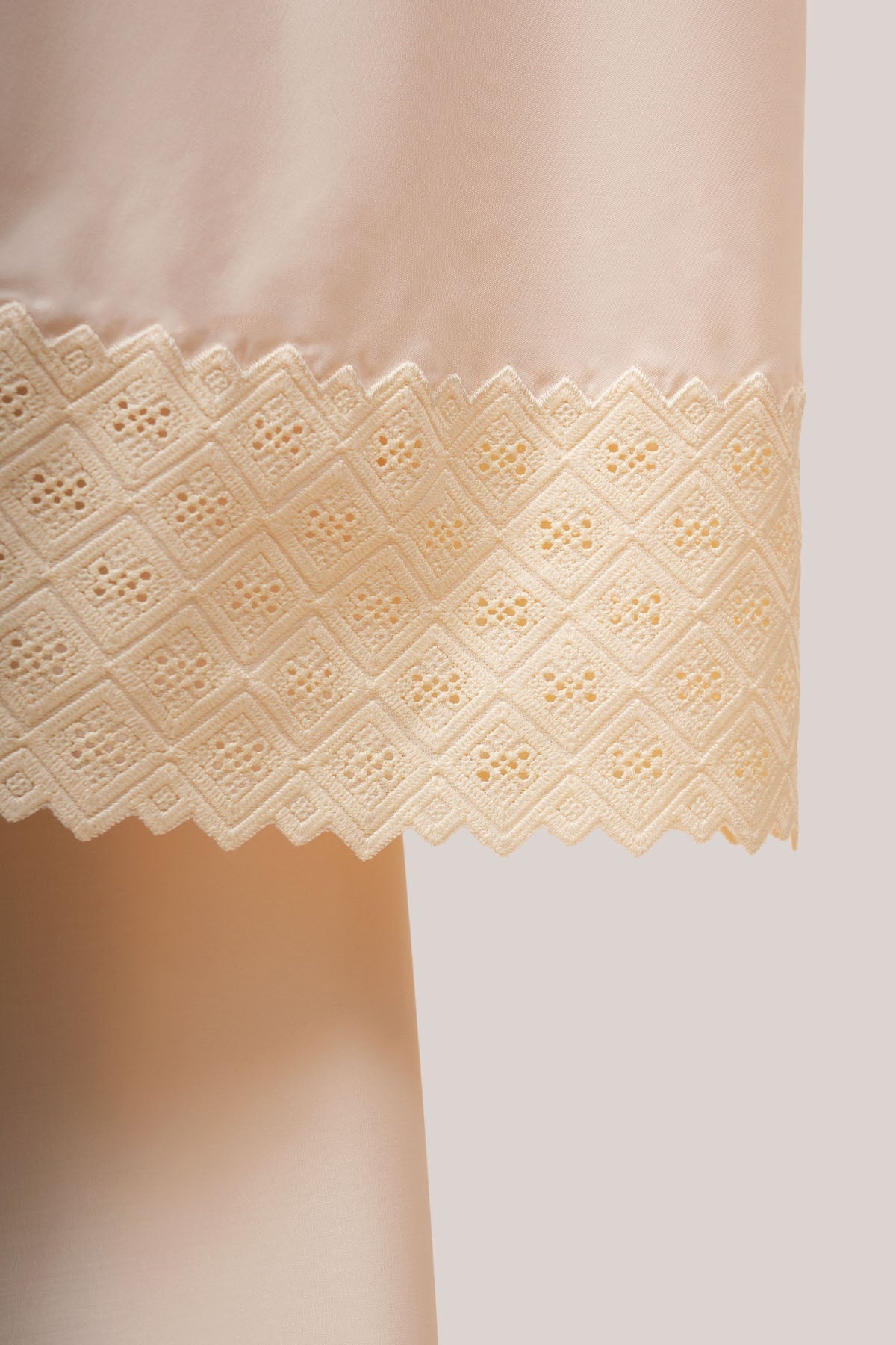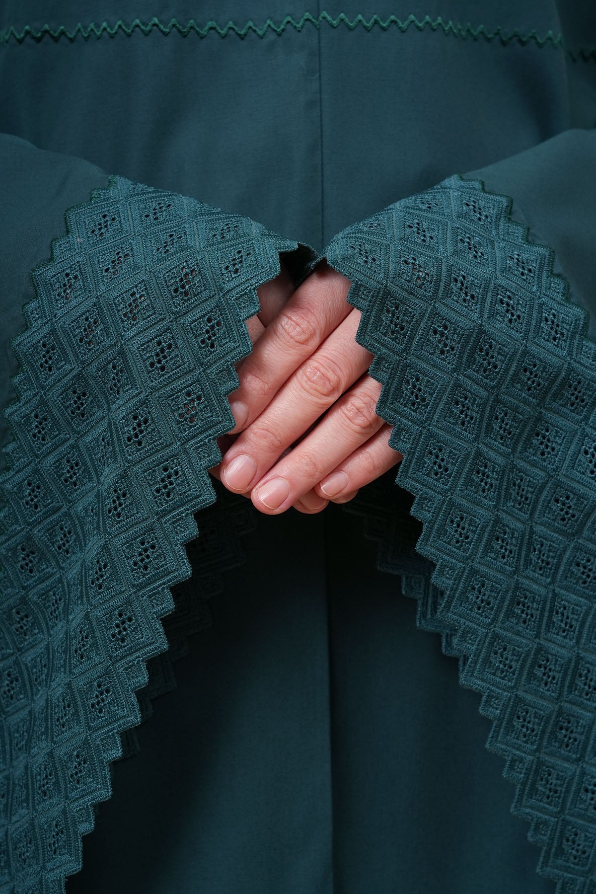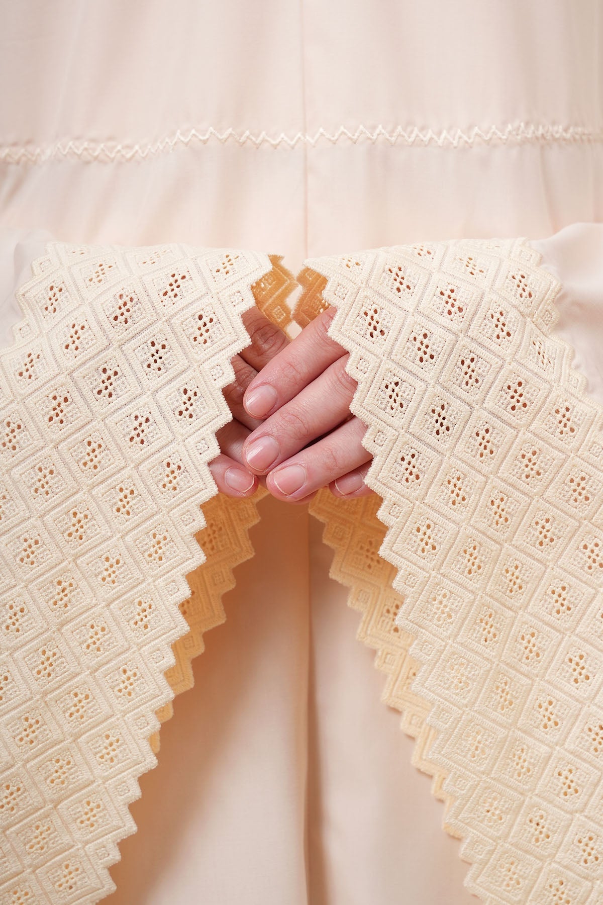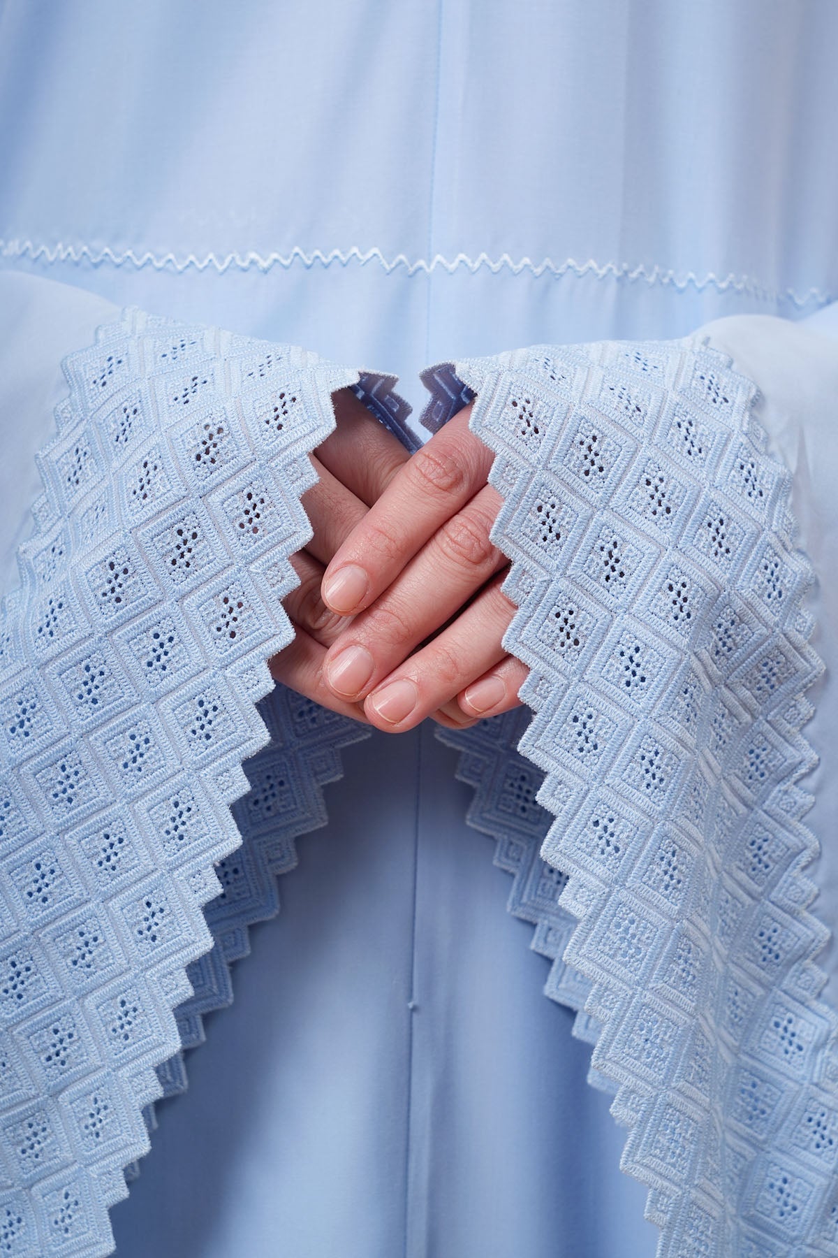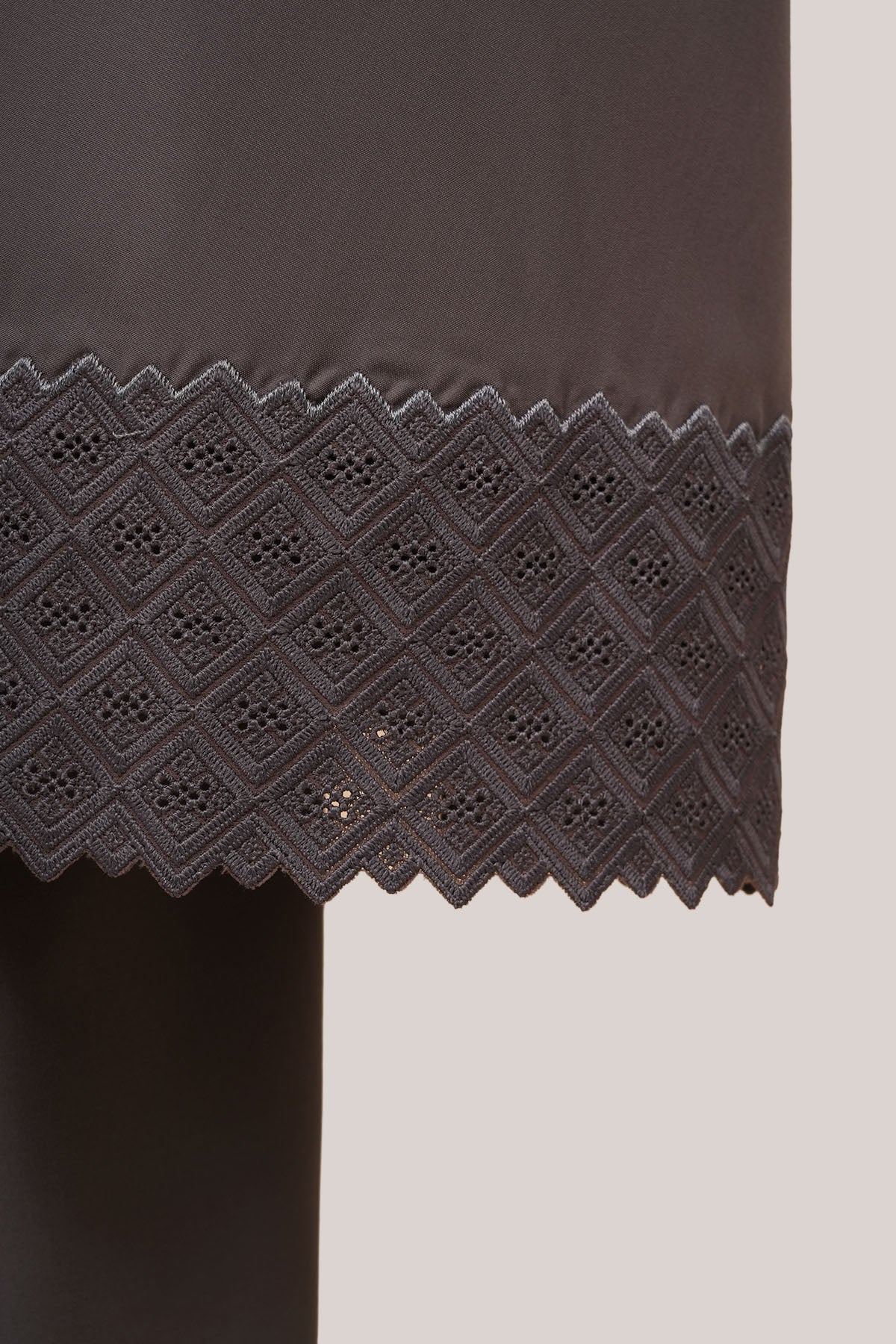 Introducing the Telekung Harmony Signature Elara, inspired by the classic and minimalist Lines of Elegance lace pattern that beautifully reflects the grace and strength of women. Crafted from durable Signature Poplin fabric that stretches without tearing and retains its colour even after multiple washes, this telekung is designed for everyday devotion. The delicate embroidery technique used to join the cotton lace with the main fabric adds a touch of refined detail to its simple yet captivating design.