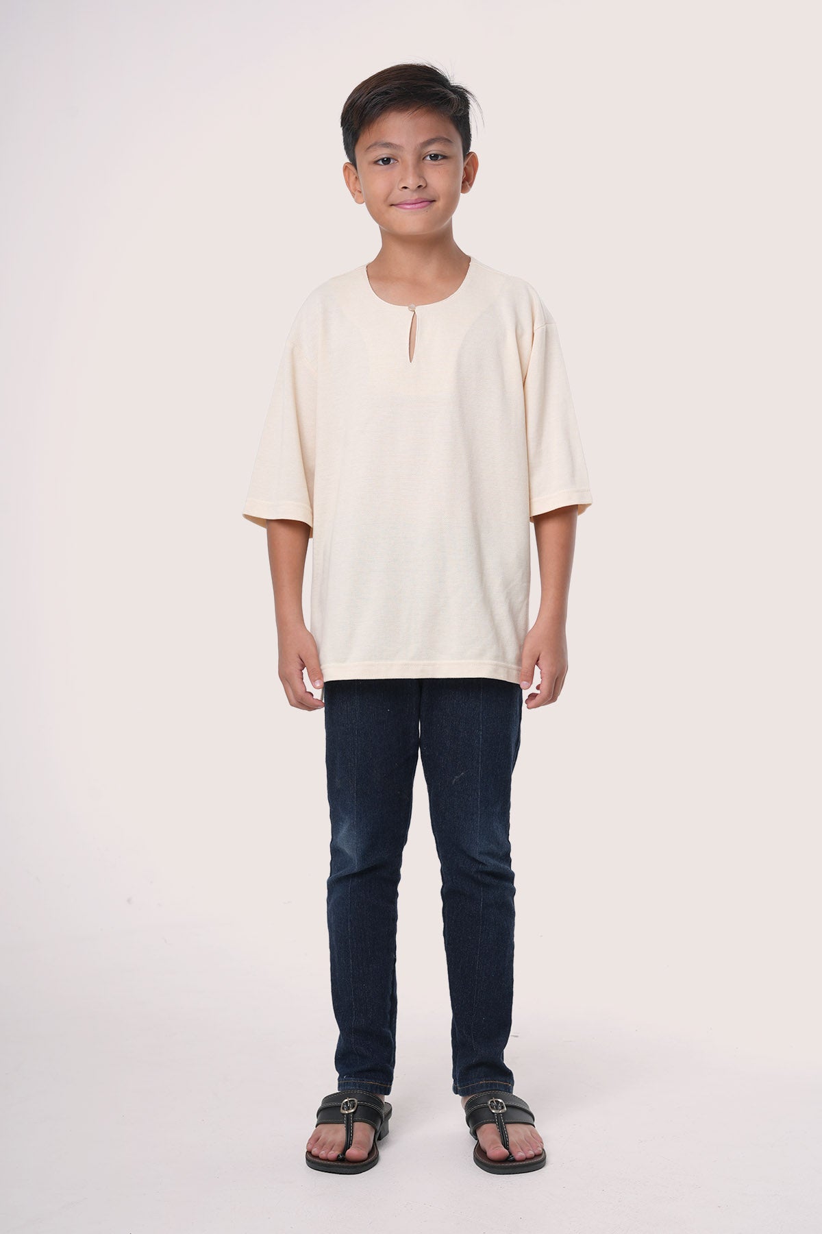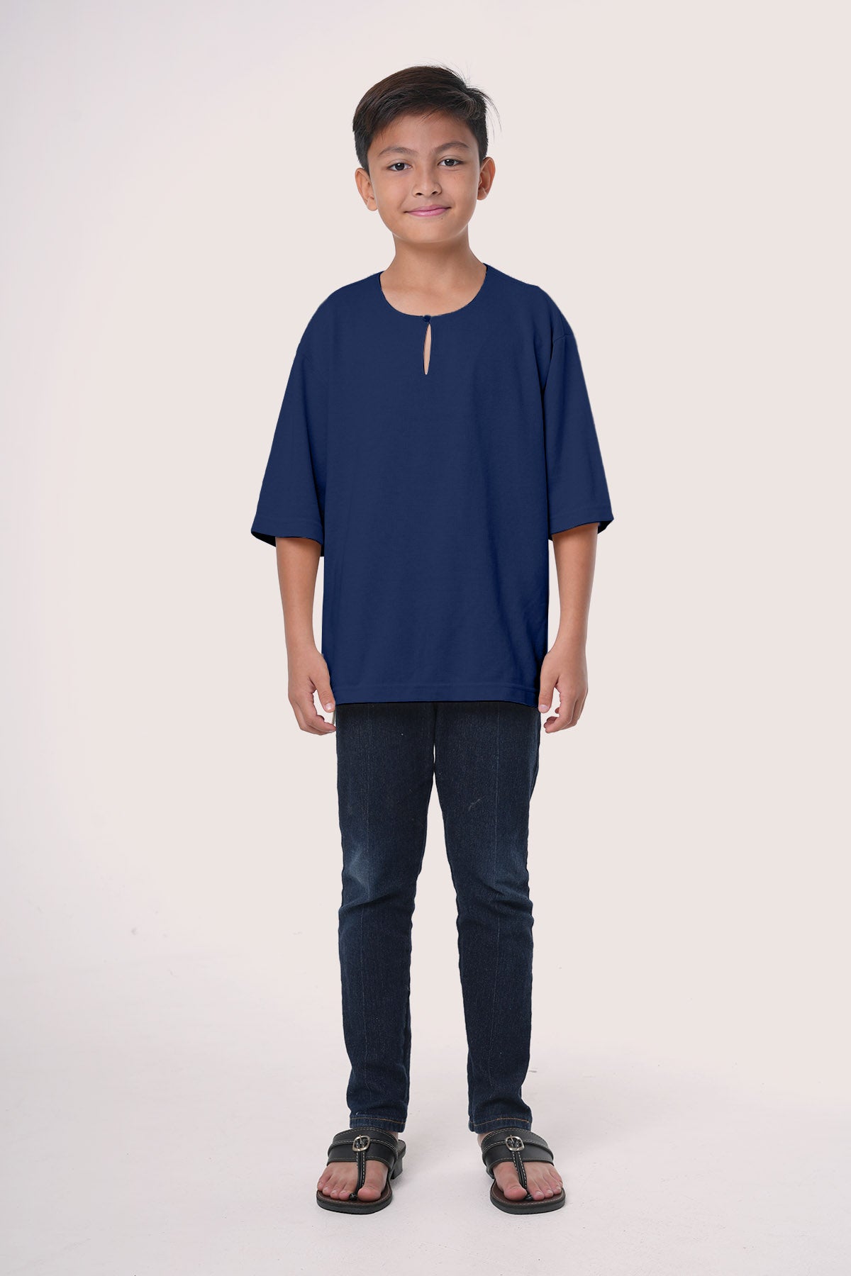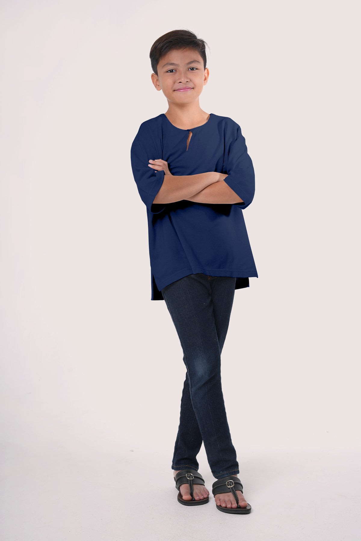 This kids' top is made from a soft and durable blend of 65% polyester and 35% cotton (Lacoste Pique), perfect for everyday wear. It has a loose fit for comfort and modesty, with fabric that’s not too thin for better coverage. Easy-to-use front buttons help children dress on their own, and the round neckline is comfortable for active play. The material is strong, easy to wash, and doesn’t wrinkle easily. With a modern look, it’s a great choice for a modest and stylish outfit.