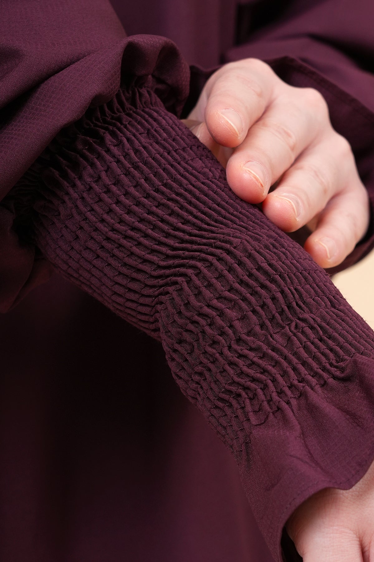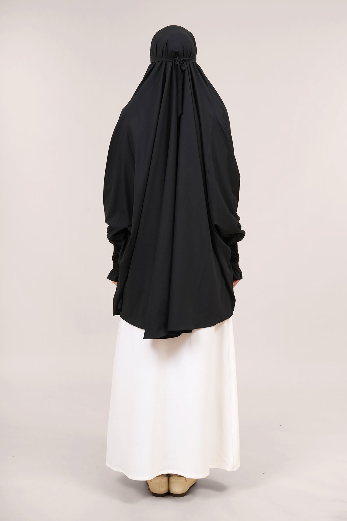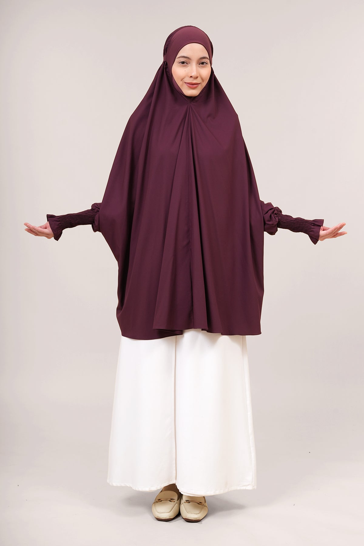 The Irha Midi is a prayer outfit designed for comfort, ease, and style. Inspired by the Solat-Friendly Hand Telekung, it features soft smocking cuffs that fit well, keep the arms covered, and allow easy movement—suitable for arm sizes from 8cm to 15cm. Made from lightweight Khadijah Airy Dobby fabric, it feels cool and breathable, with a clean, modern look. The midi length offers practical comfort during prayer. It also comes with a simple, compact pouch, making it easy to carry—perfect for travel. “Irha,” meaning rest or calm, reflects the peace and purity of worship.
