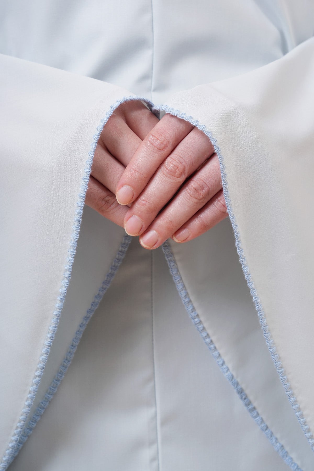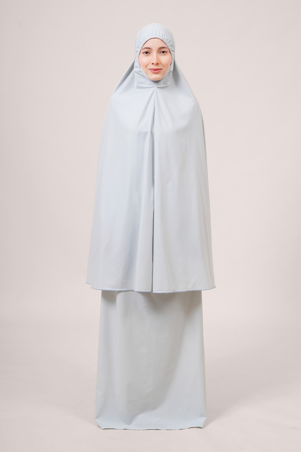 The Khadijah Basic Fine (KBF) telekung offers comfort, modesty, and practicality. Made from cool, breathable fabric that feels extra soft on the skin, it includes a soft ITY chin cover and a Classic headband with cushioned elastic that doesn't leave marks. The simple design is finished with neat shell stitch details, inspired by blooming petals. The fabric is strong, stretchable, and the color stays bright even after washing – perfect for everyday use and a symbol of a fresh start.