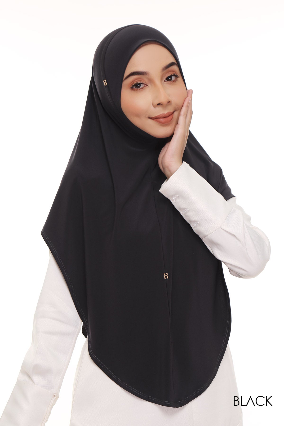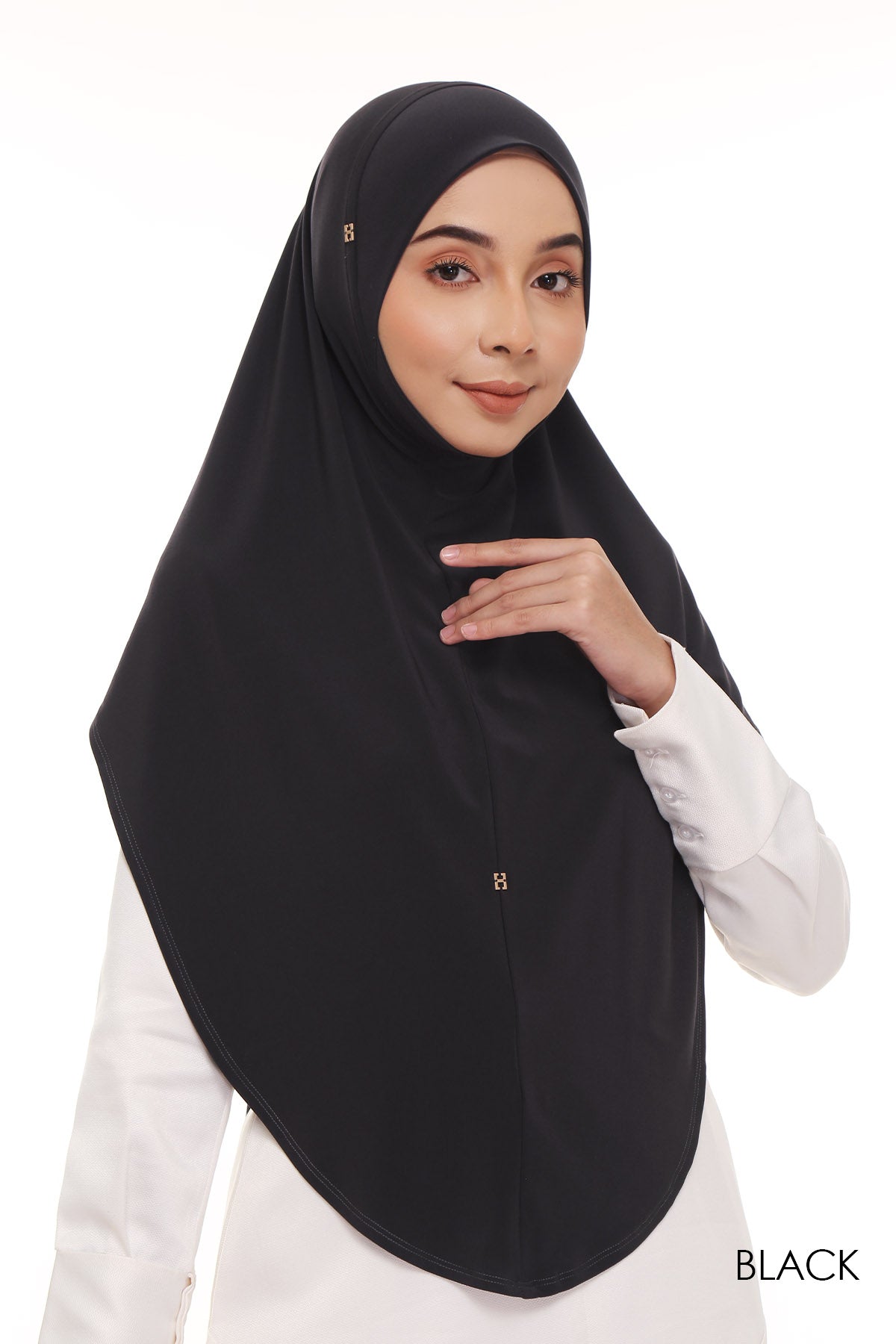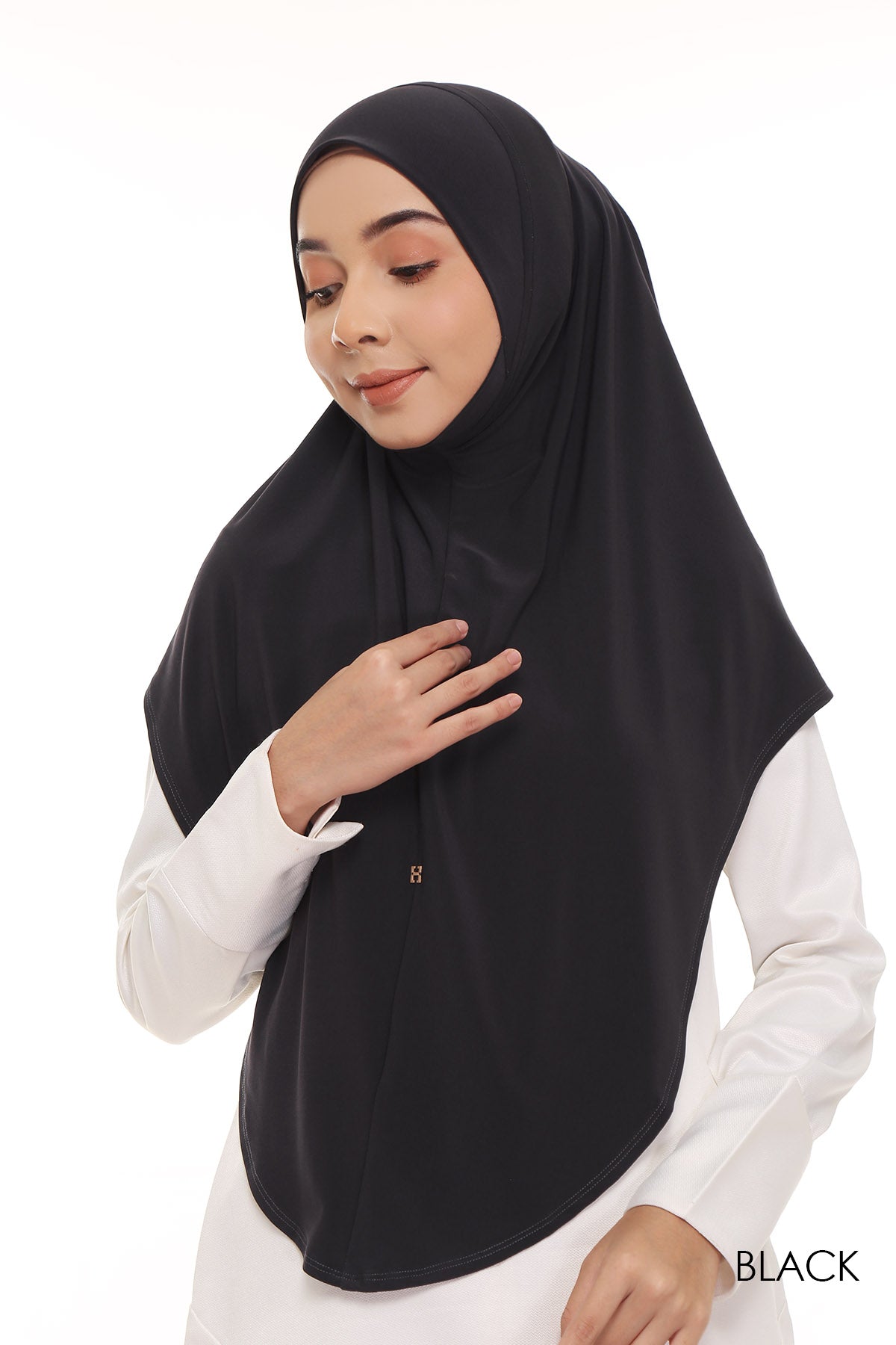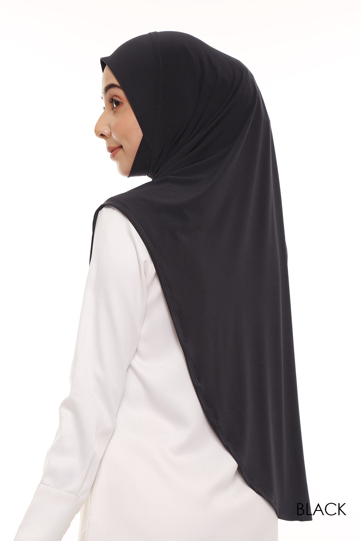 Made from an ironless, soft-to-touch lycra for its body and awning, guaranteeing a hassle-free, stretchable look. It is perfect to be matched with either printed or plain outift, making it a versatile tudung option. Comes in three different tudung length.