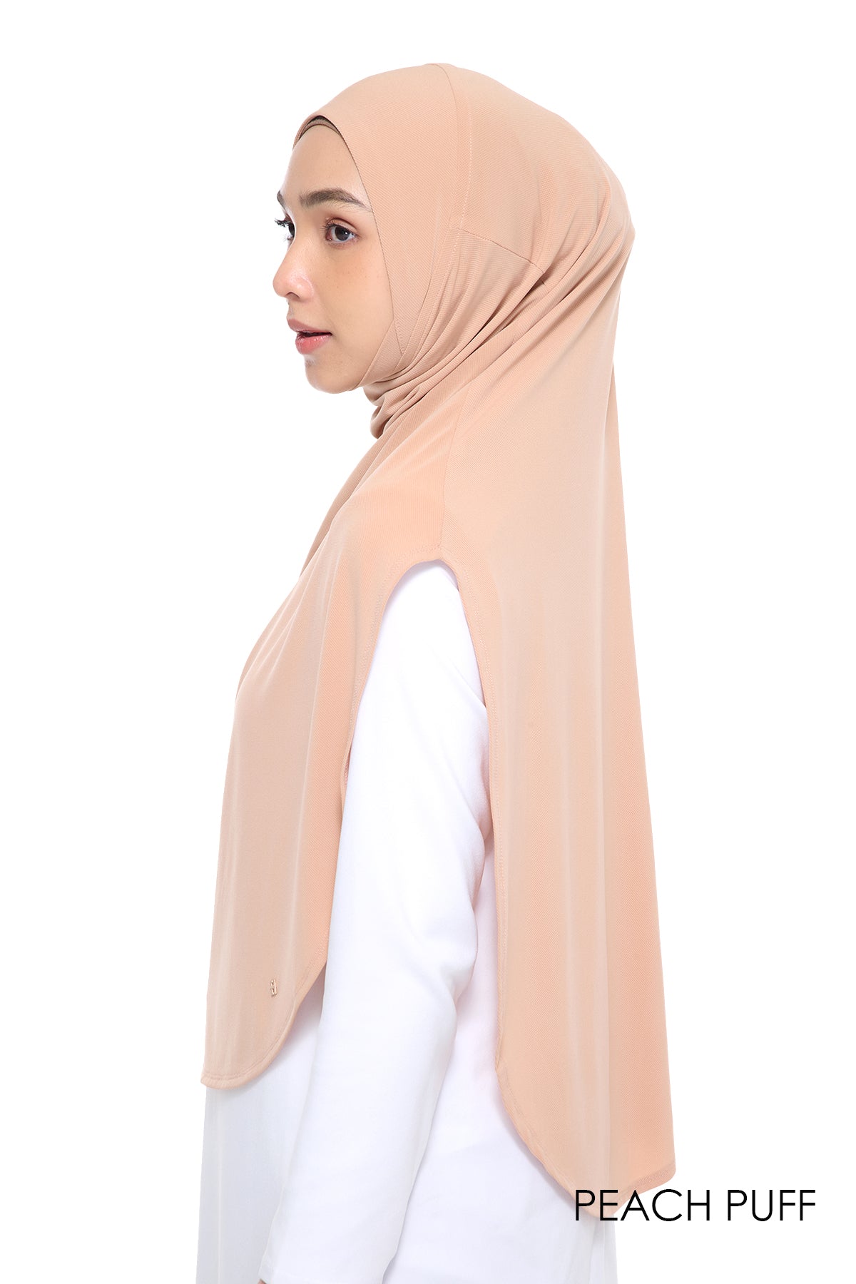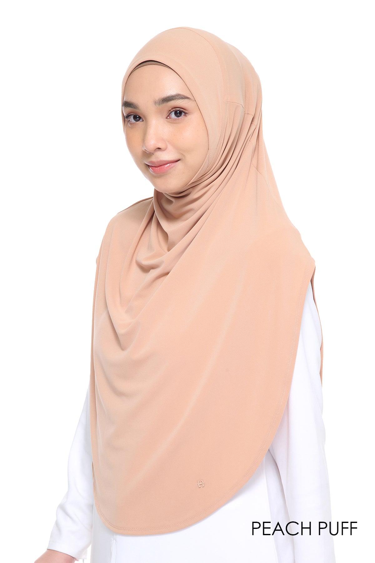 Simplicity is the ultimate sophistication. So-Lovey is designed to fit different kinds of face shapes and sizes with with its Soft Awning. It has a stretchable band that hugs the face very neatly and comfortably, while the Twill Crepe body allows the hijab to drape and flow nicely. Imagine going to work or any event, wearing this special design. It does have professional and elegant vibe to it.