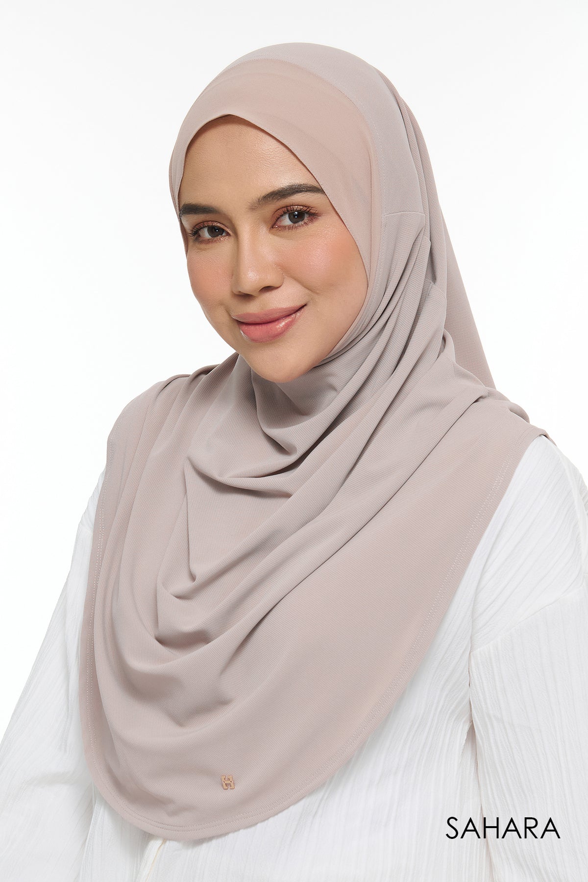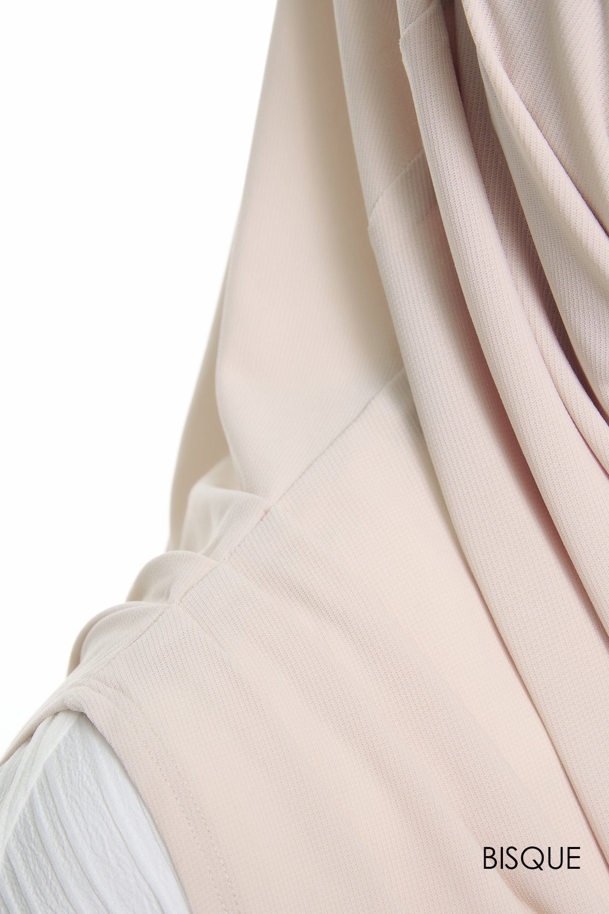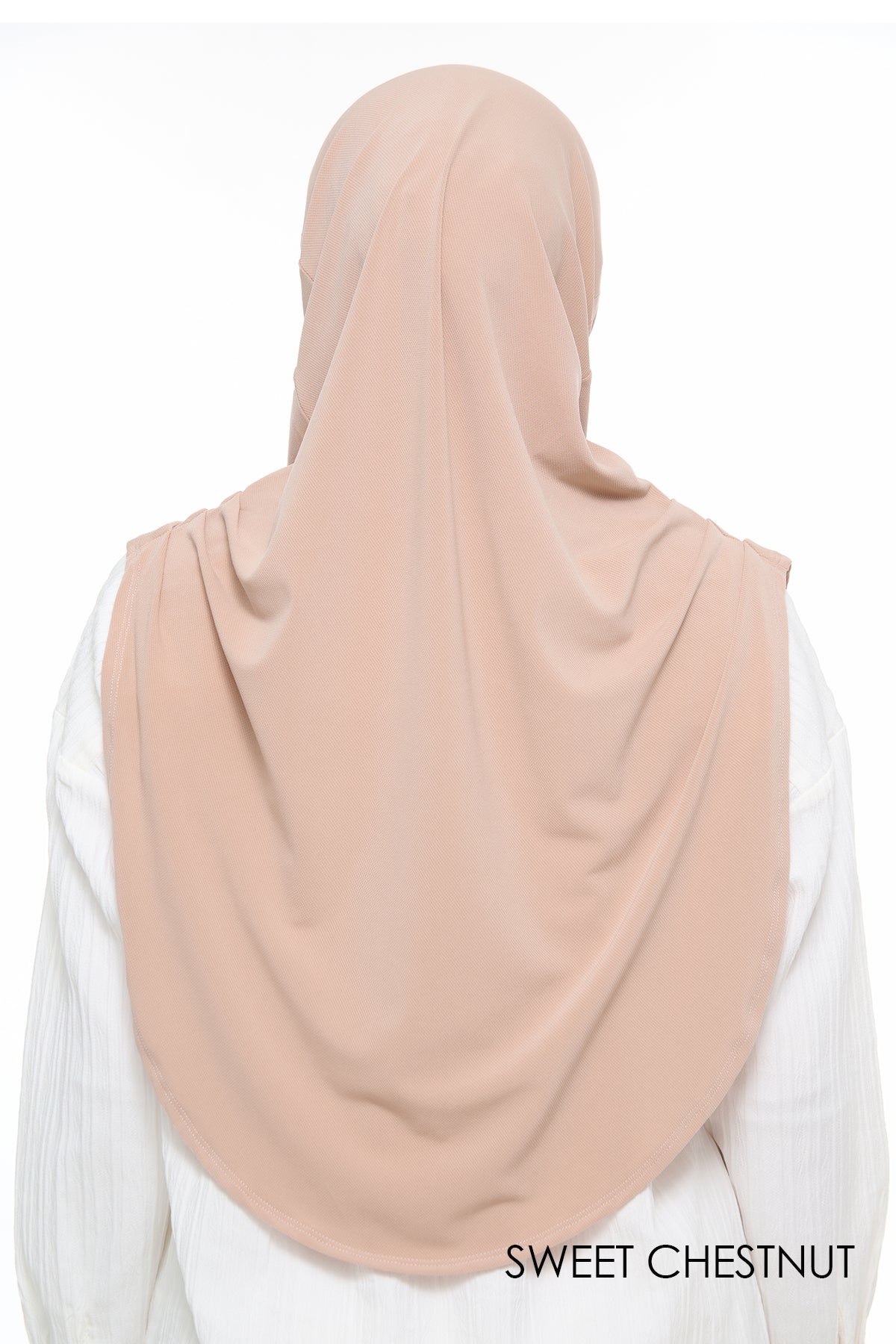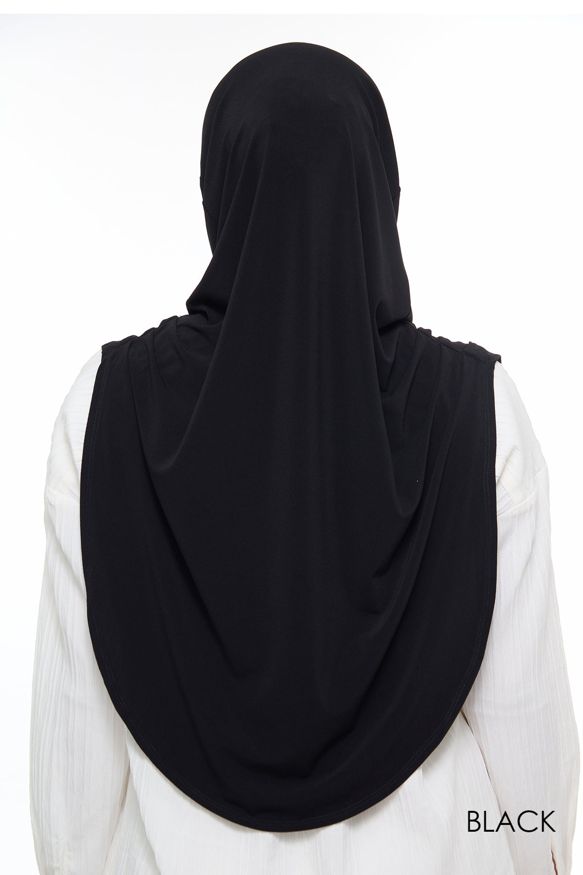 Made to resemble a complete shawl, it has a seamless front and a pleated design to guarantee a fabulous look but with minimal effort. Made from a twill-textured fabric of poly spandex and easy to shape awning (chiffon) in plain colors.
