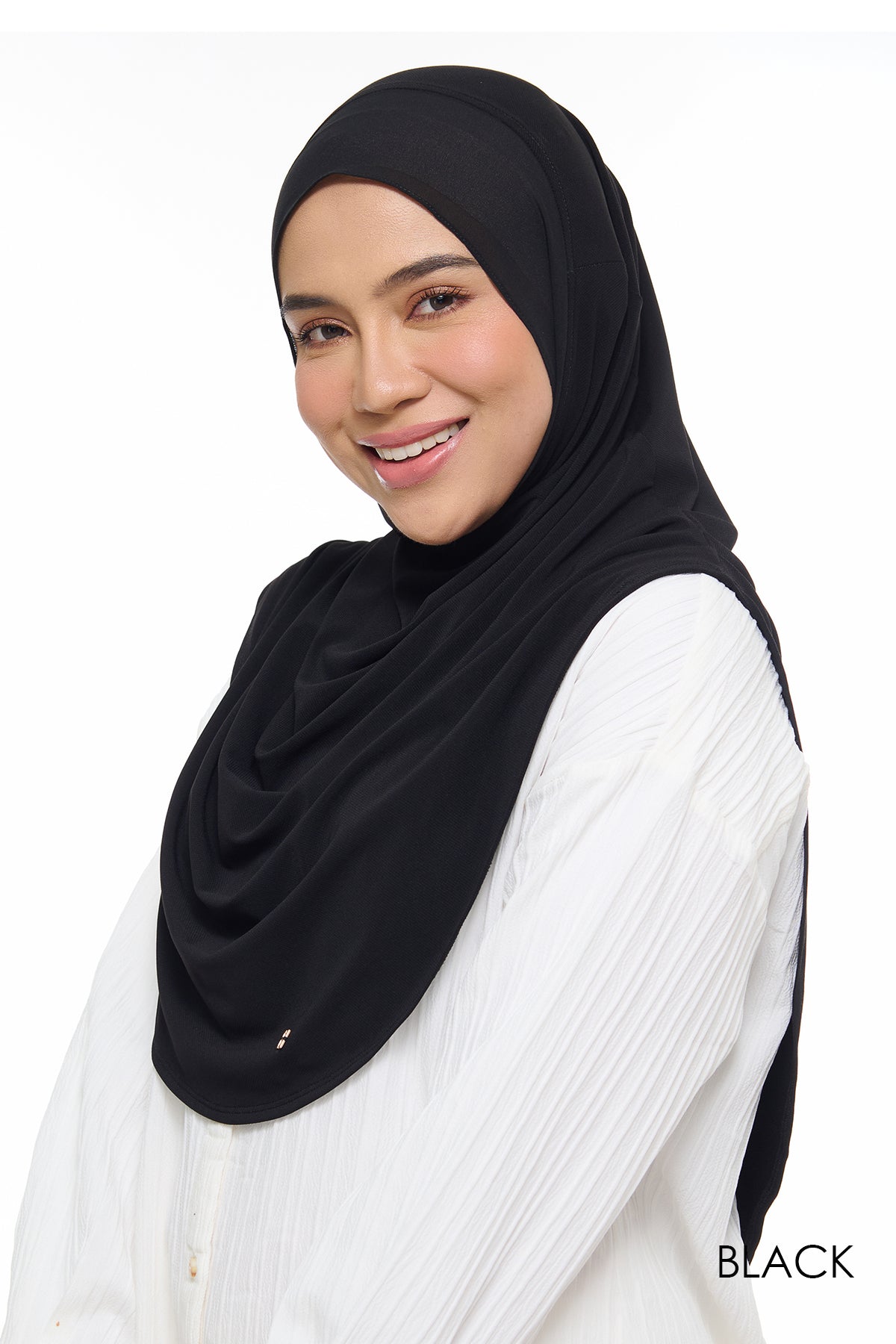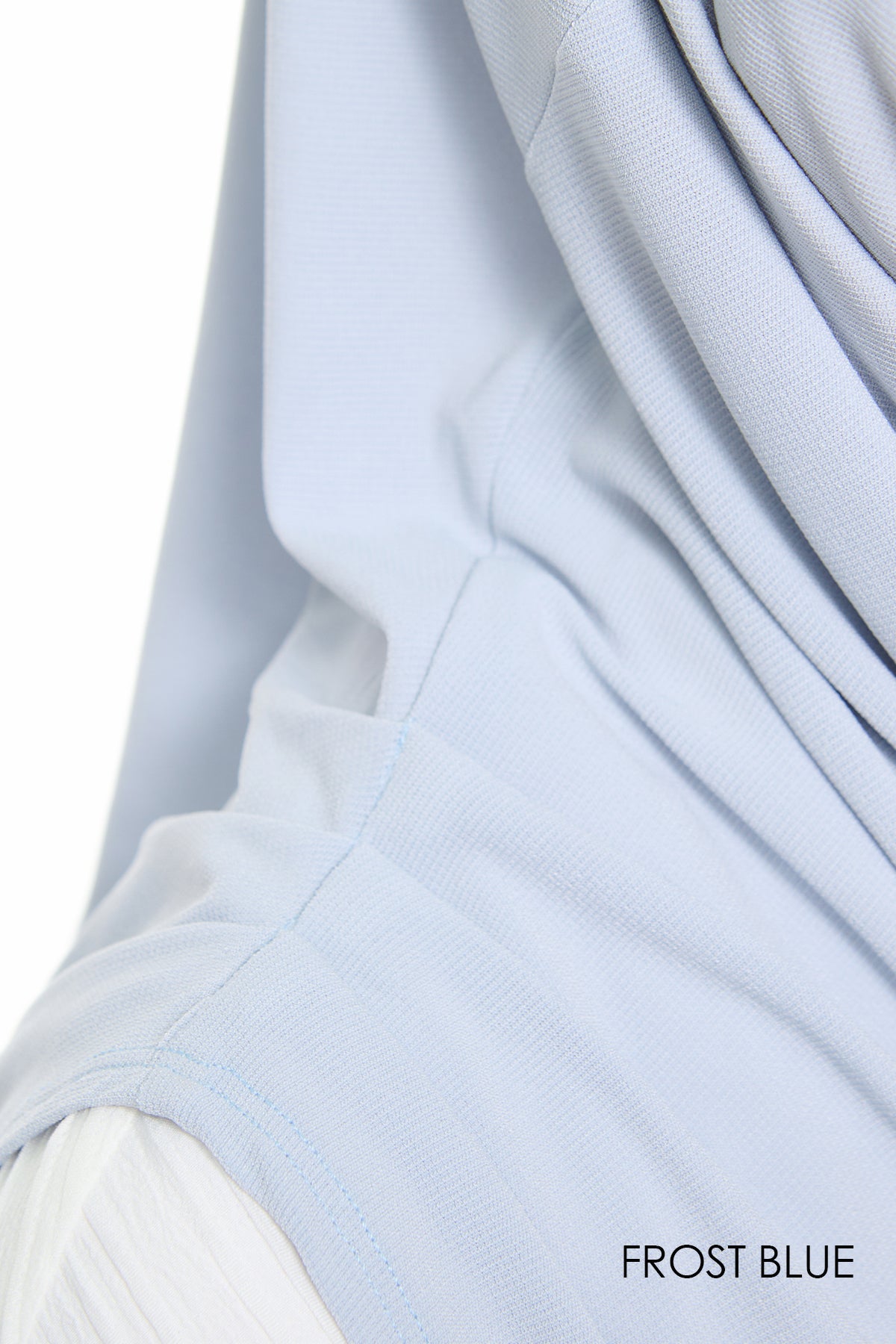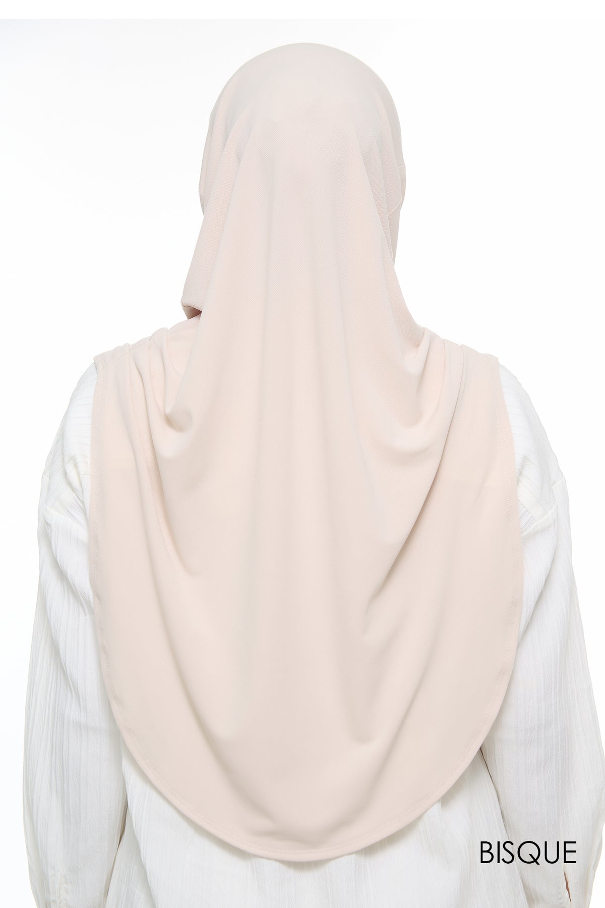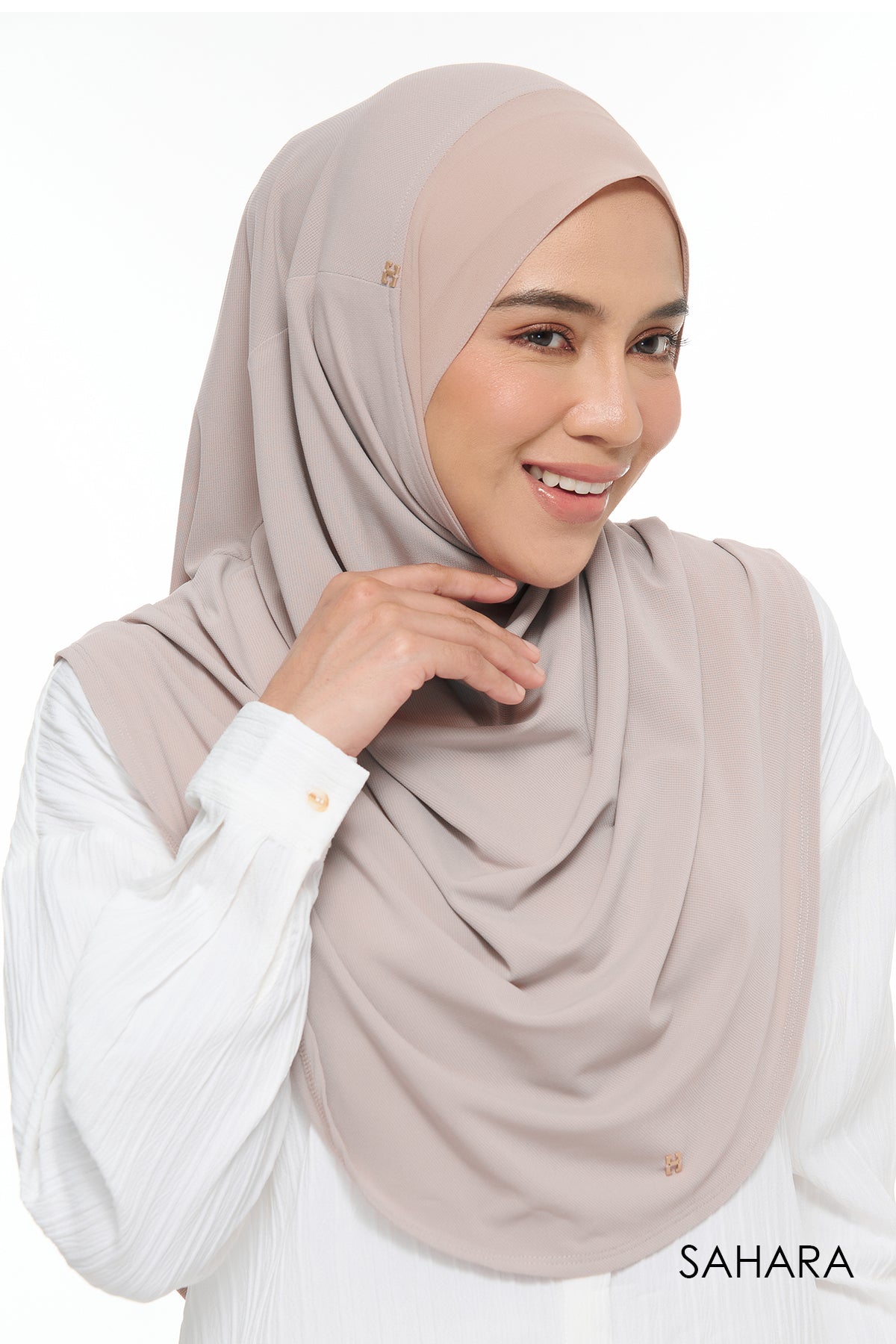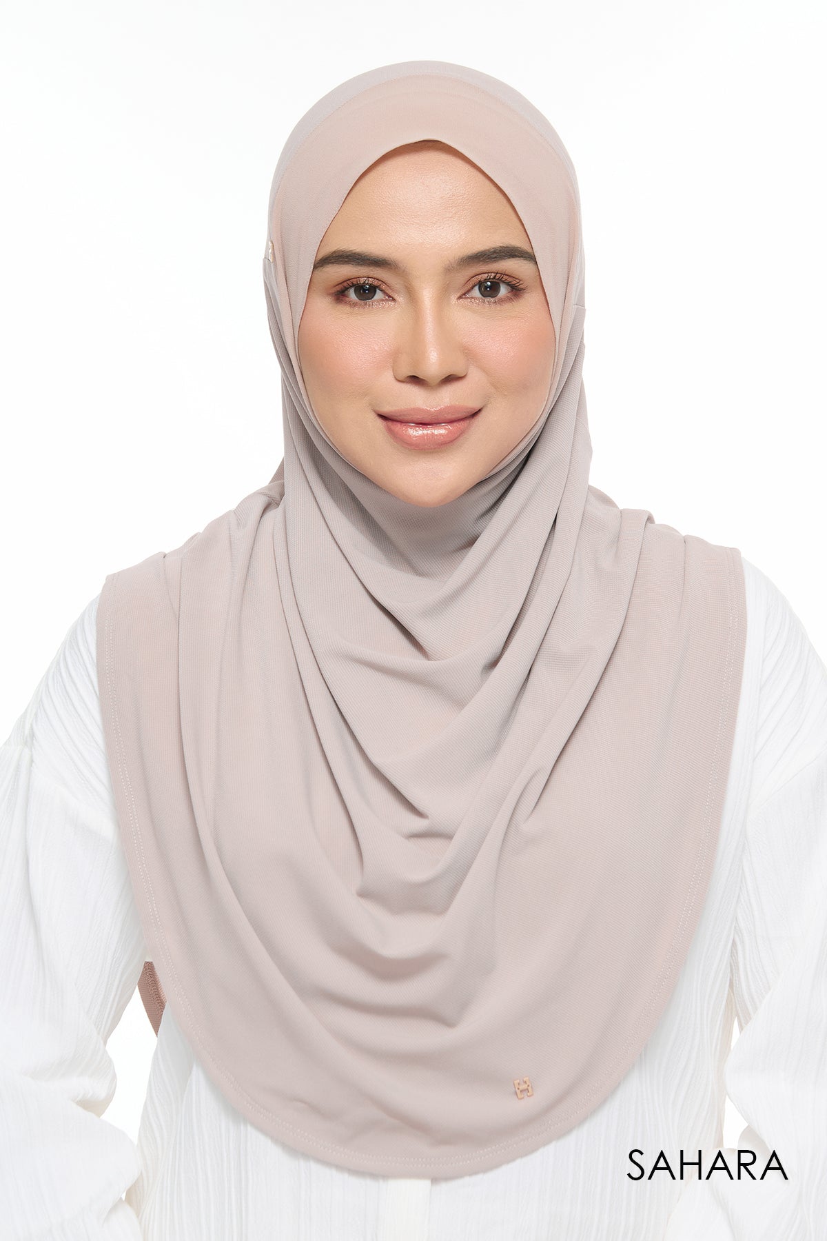 Made to resemble a complete shawl, it has a seamless front and a pleated design to guarantee a fabulous look but with minimal effort. Made from a twill-textured fabric of poly spandex and easy to shape awning (chiffon) in plain colors.