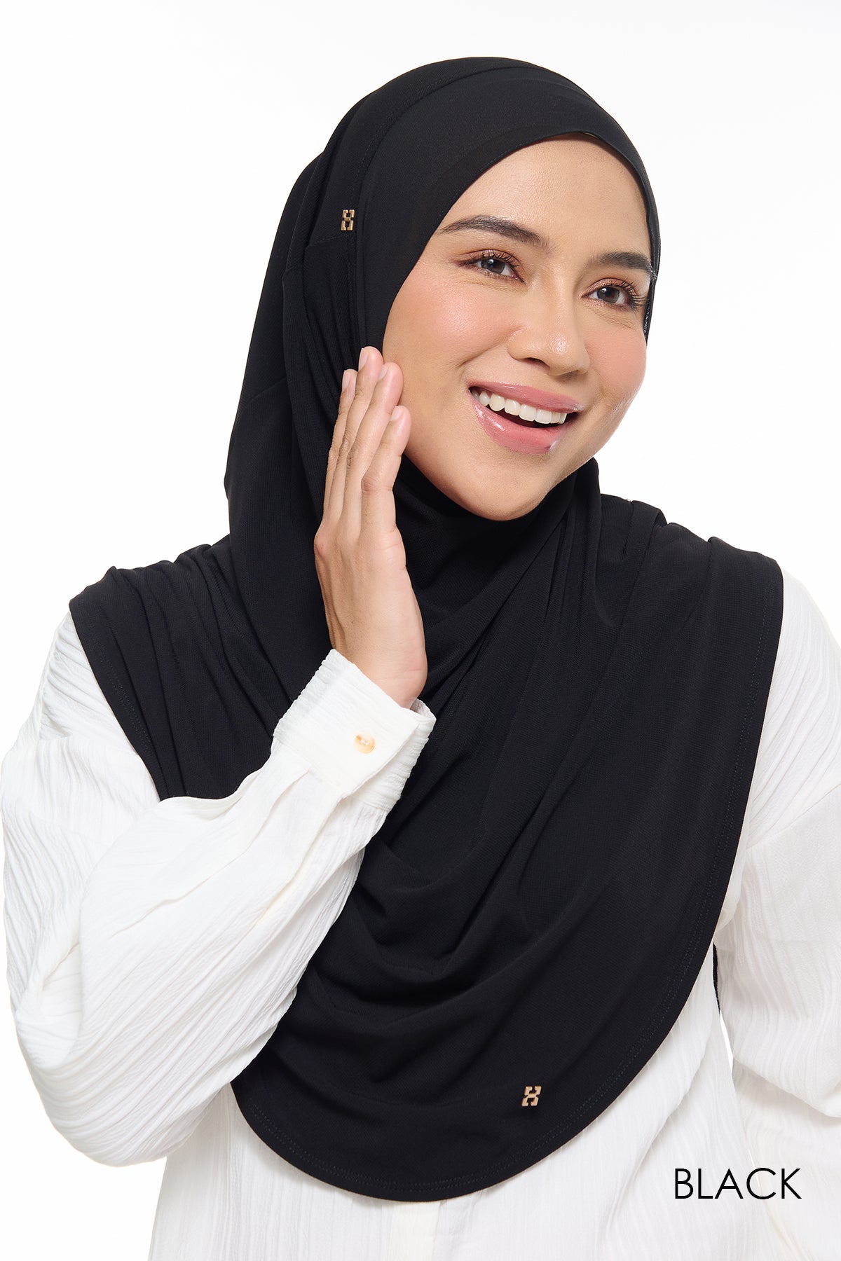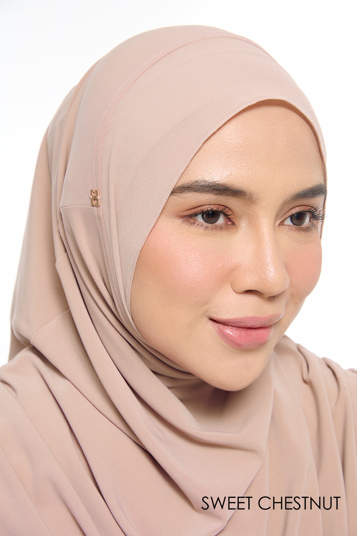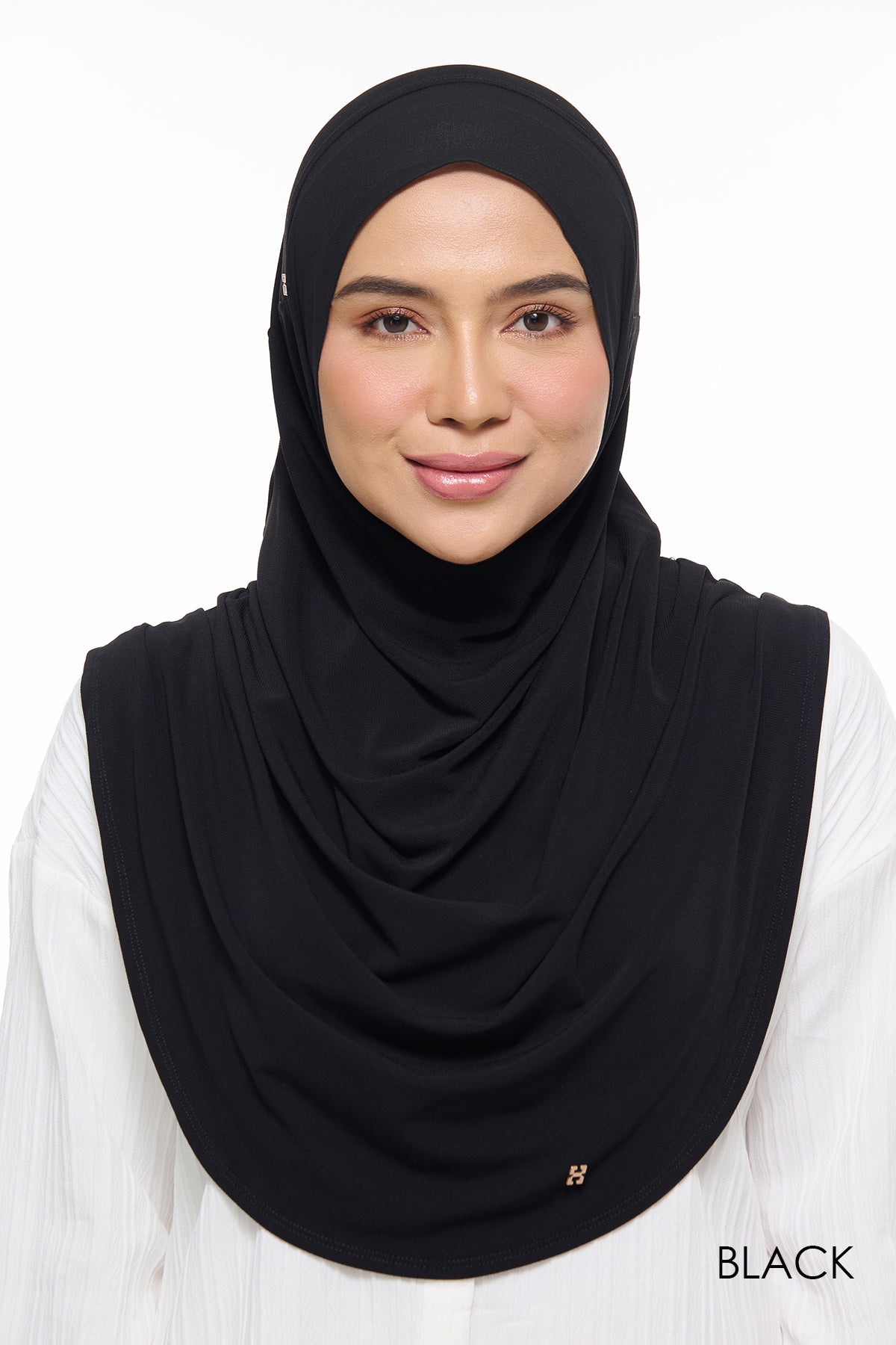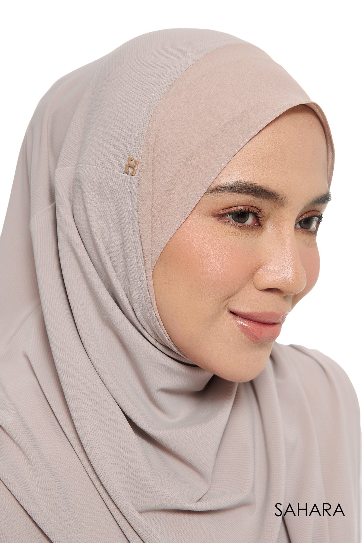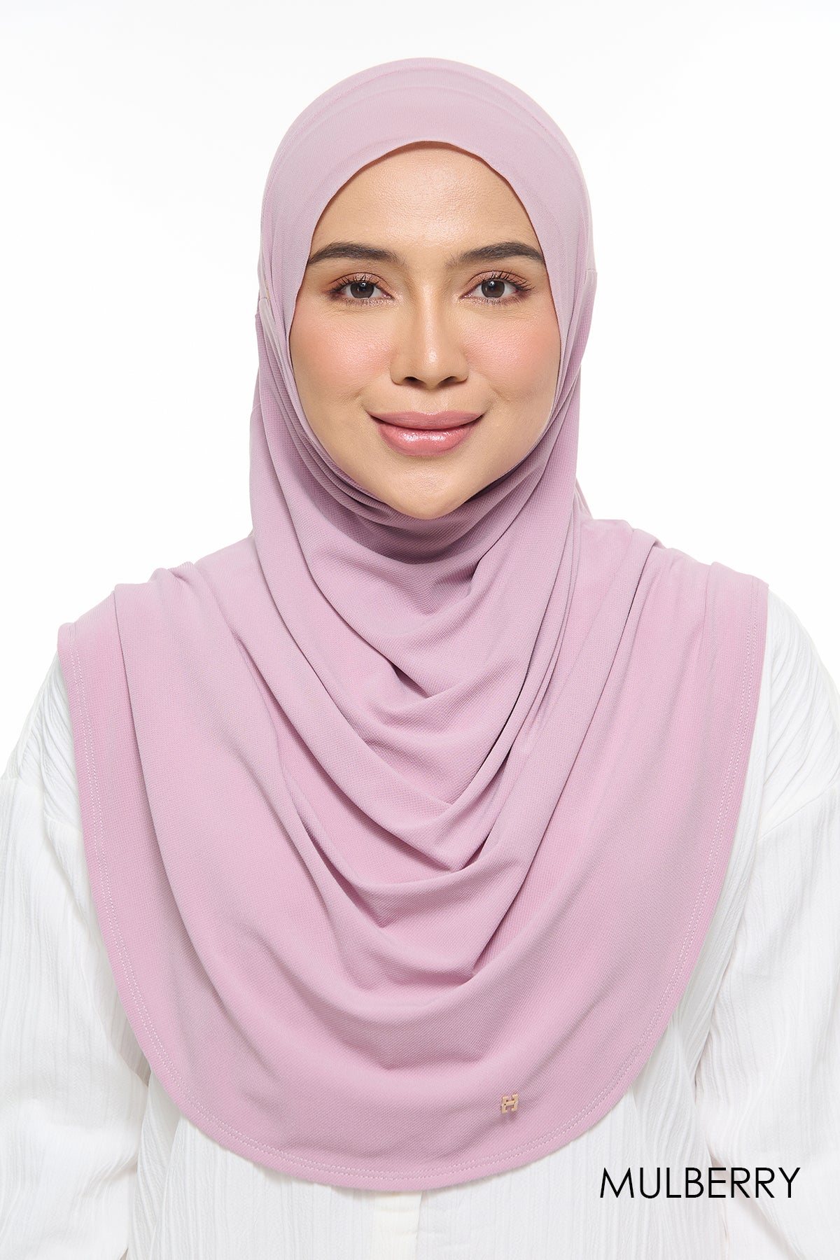 Made to resemble a complete shawl, it has a seamless front and a pleated design to guarantee a fabulous look but with minimal effort. Made from a twill-textured fabric of poly spandex and easy to shape awning (chiffon) in plain colors.