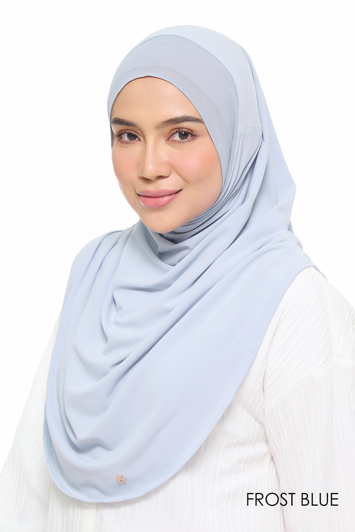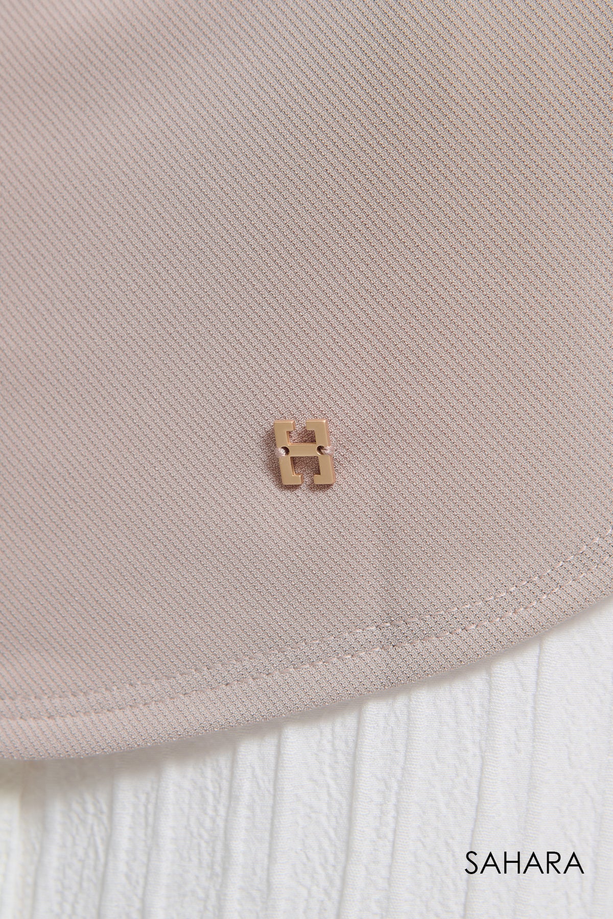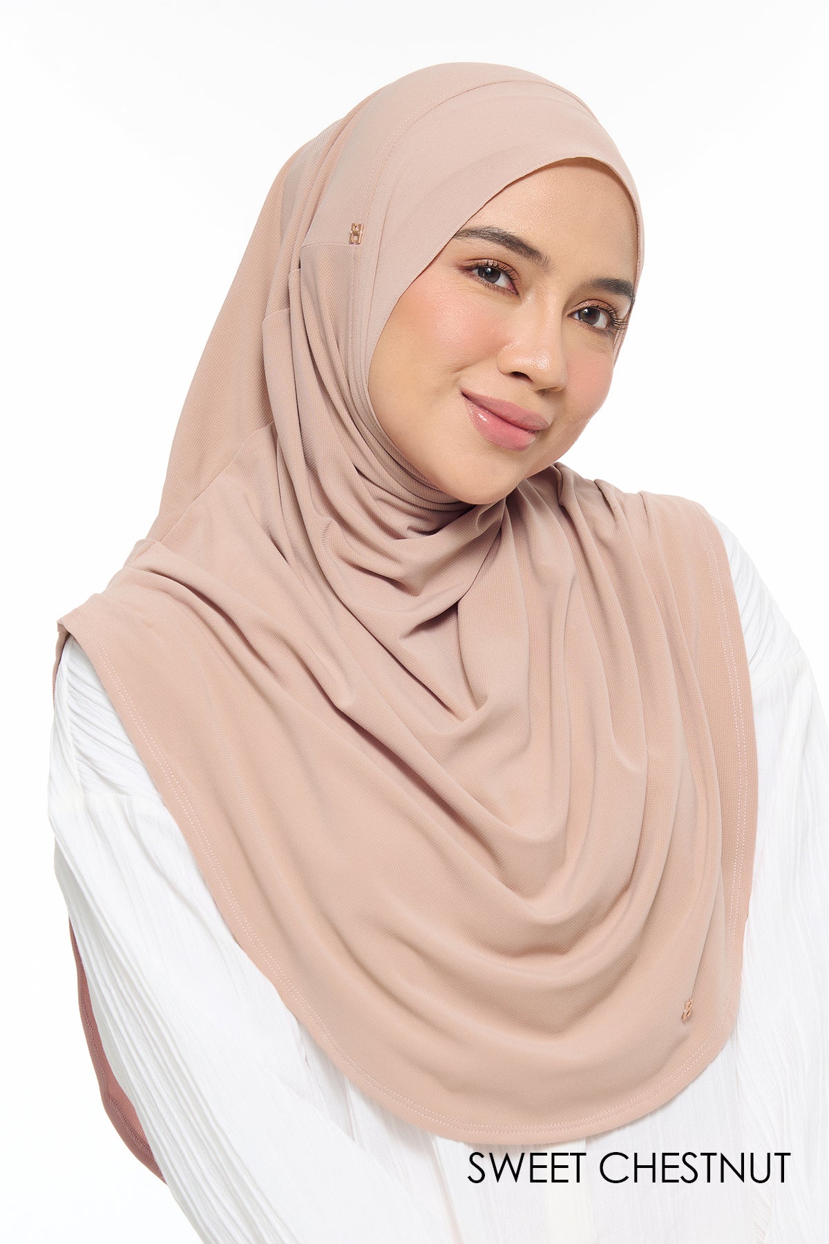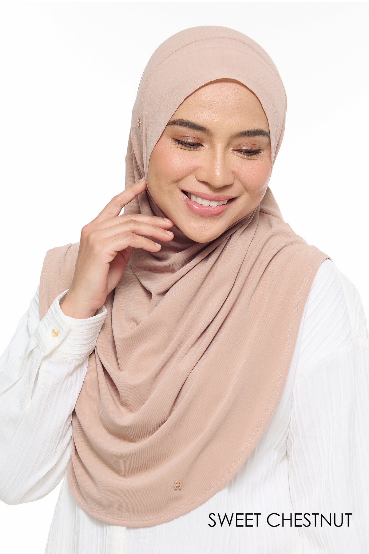 Made to resemble a complete shawl, it has a seamless front and a pleated design to guarantee a fabulous look but with minimal effort. Made from a twill-textured fabric of poly spandex and easy to shape awning (chiffon) in plain colors.