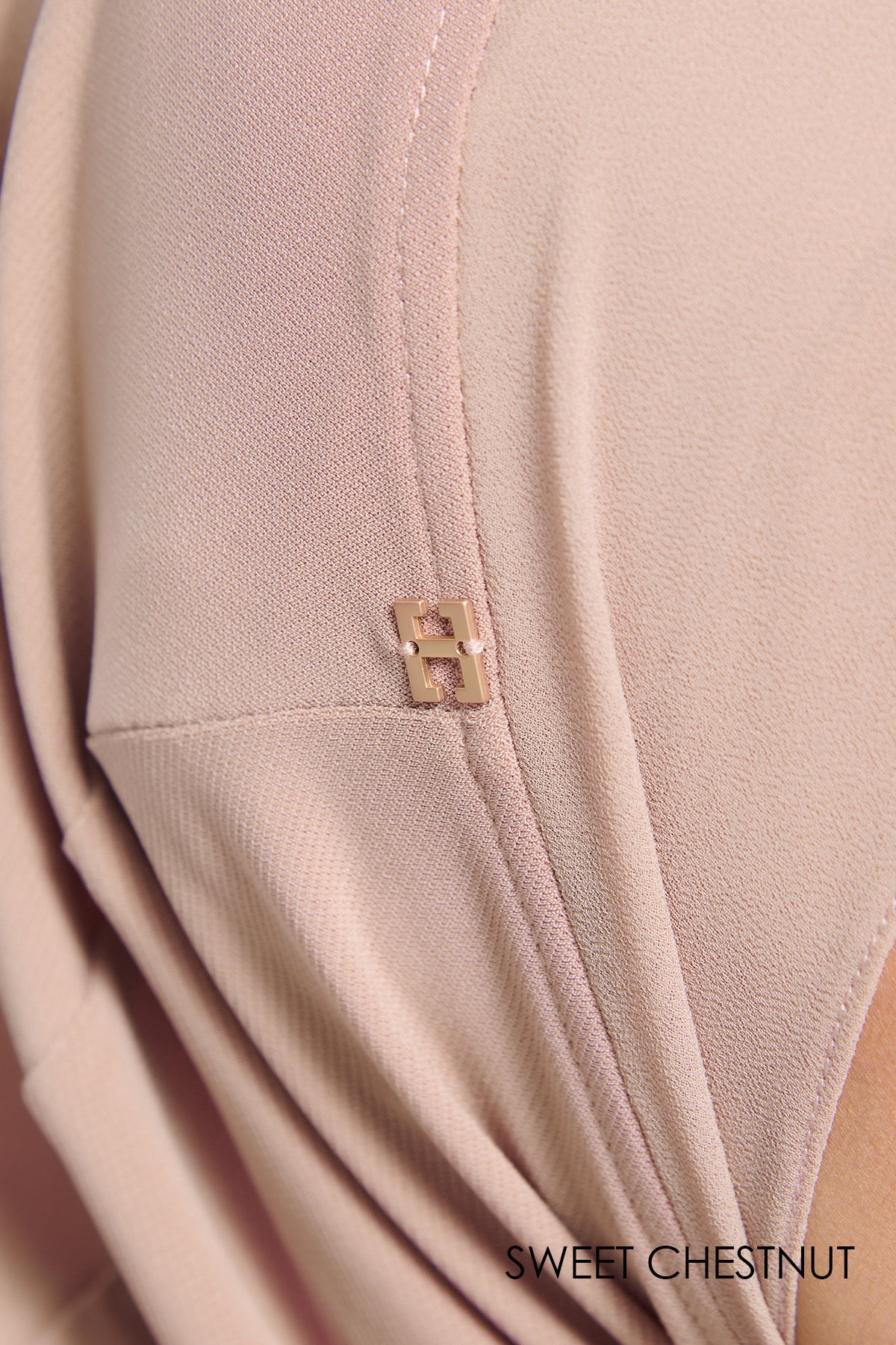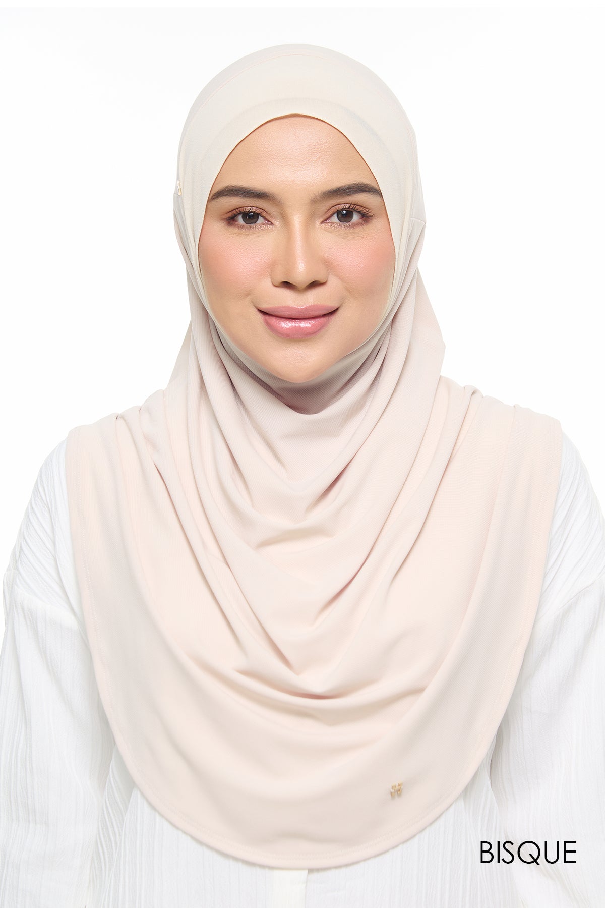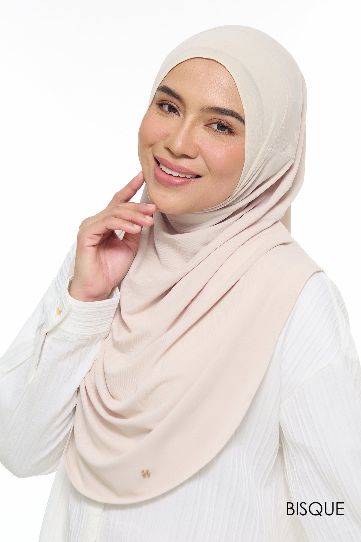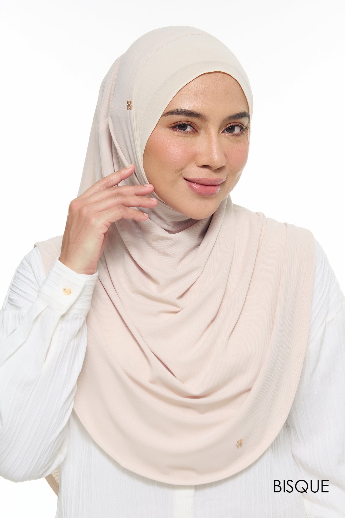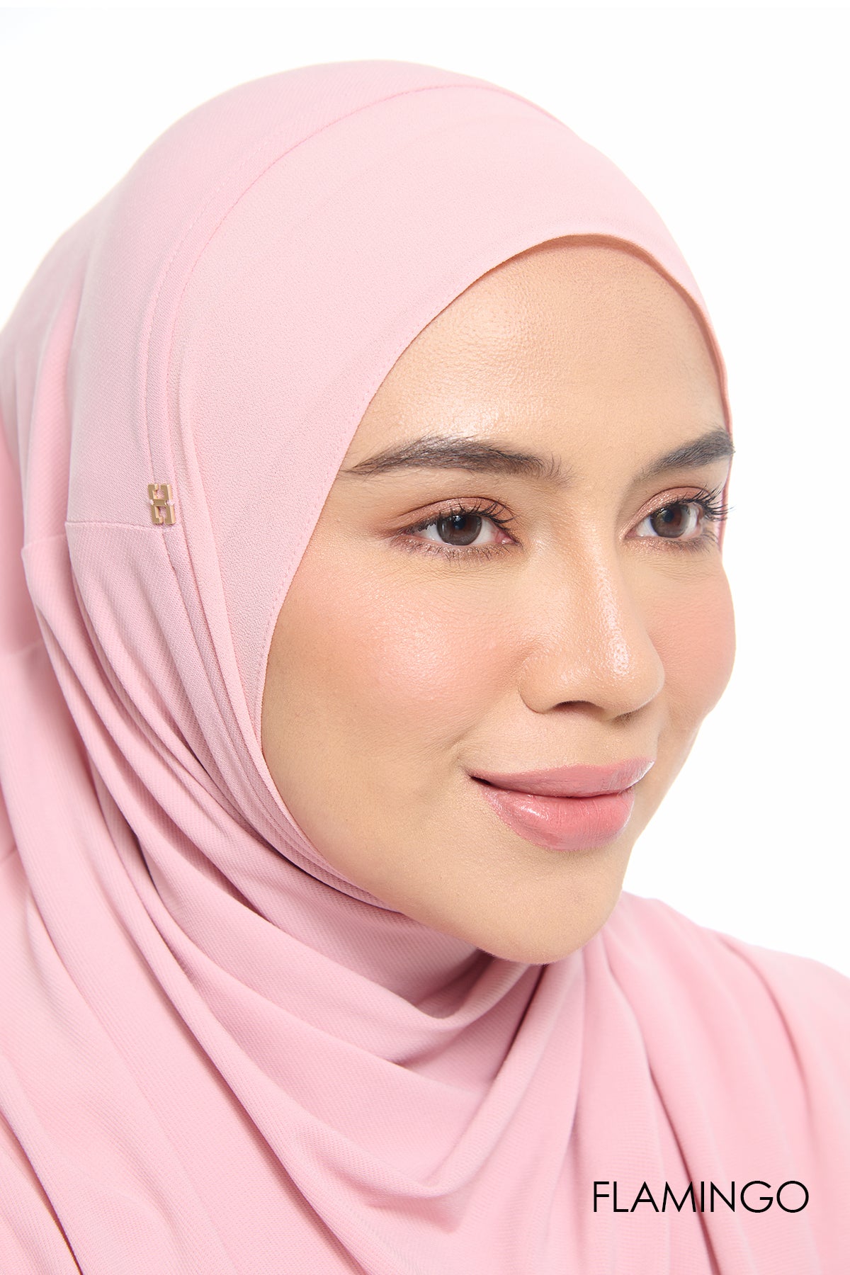 Made to resemble a complete shawl, it has a seamless front and a pleated design to guarantee a fabulous look but with minimal effort. Made from a twill-textured fabric of poly spandex and easy to shape awning (chiffon) in plain colors.
