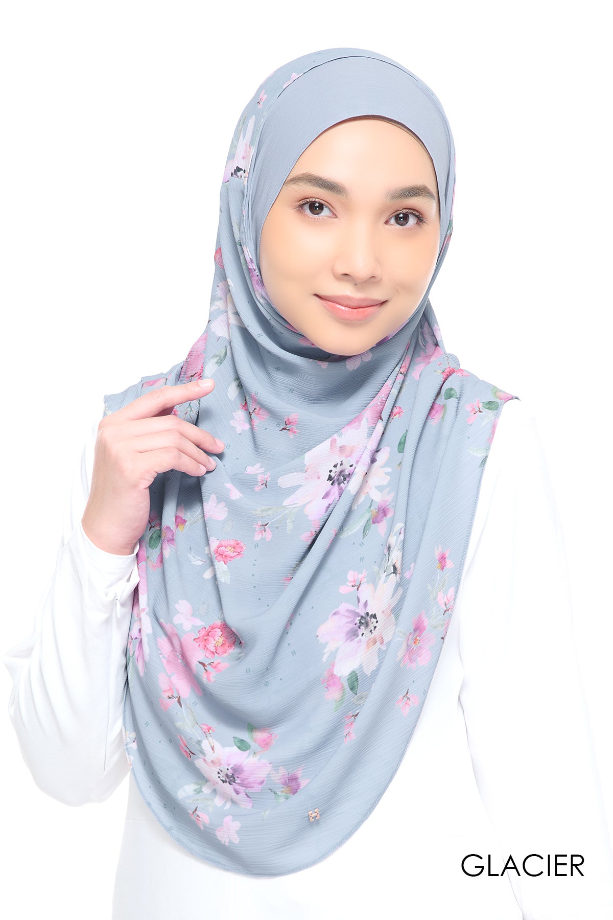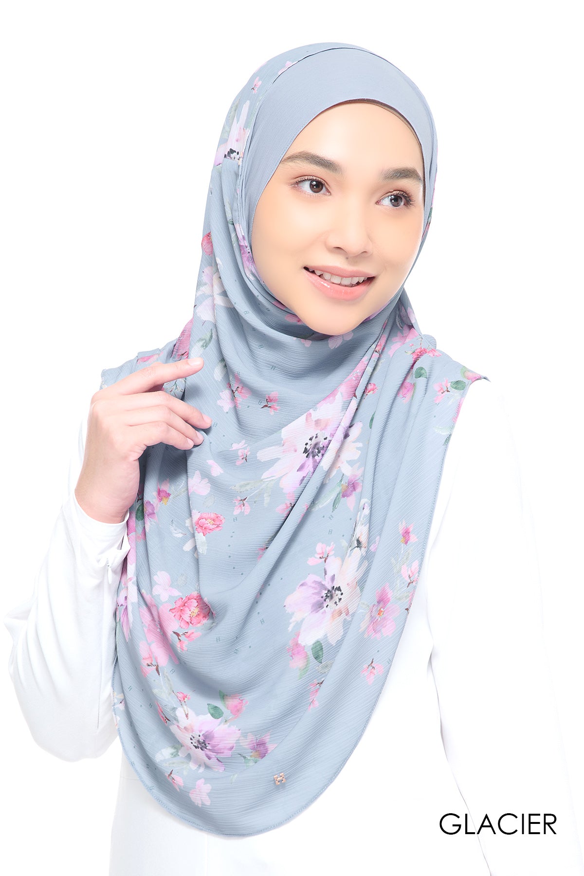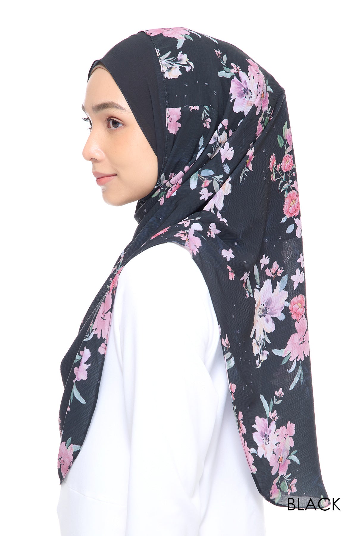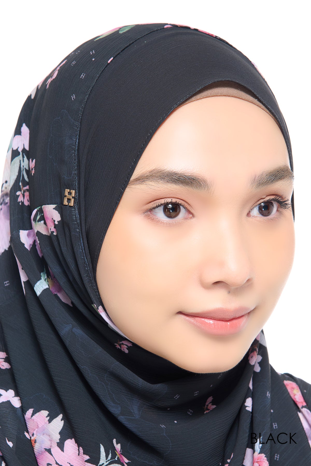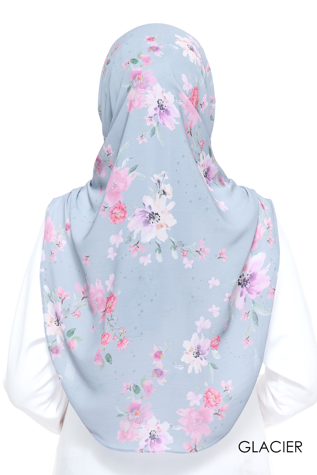 Made from custom printed-textured Chiffon, it provides a seamless look on the face, facilitating easy styling with its sleek design. Additionally, it offers the convenience of less ironing for an effortlessly stylish appearance.