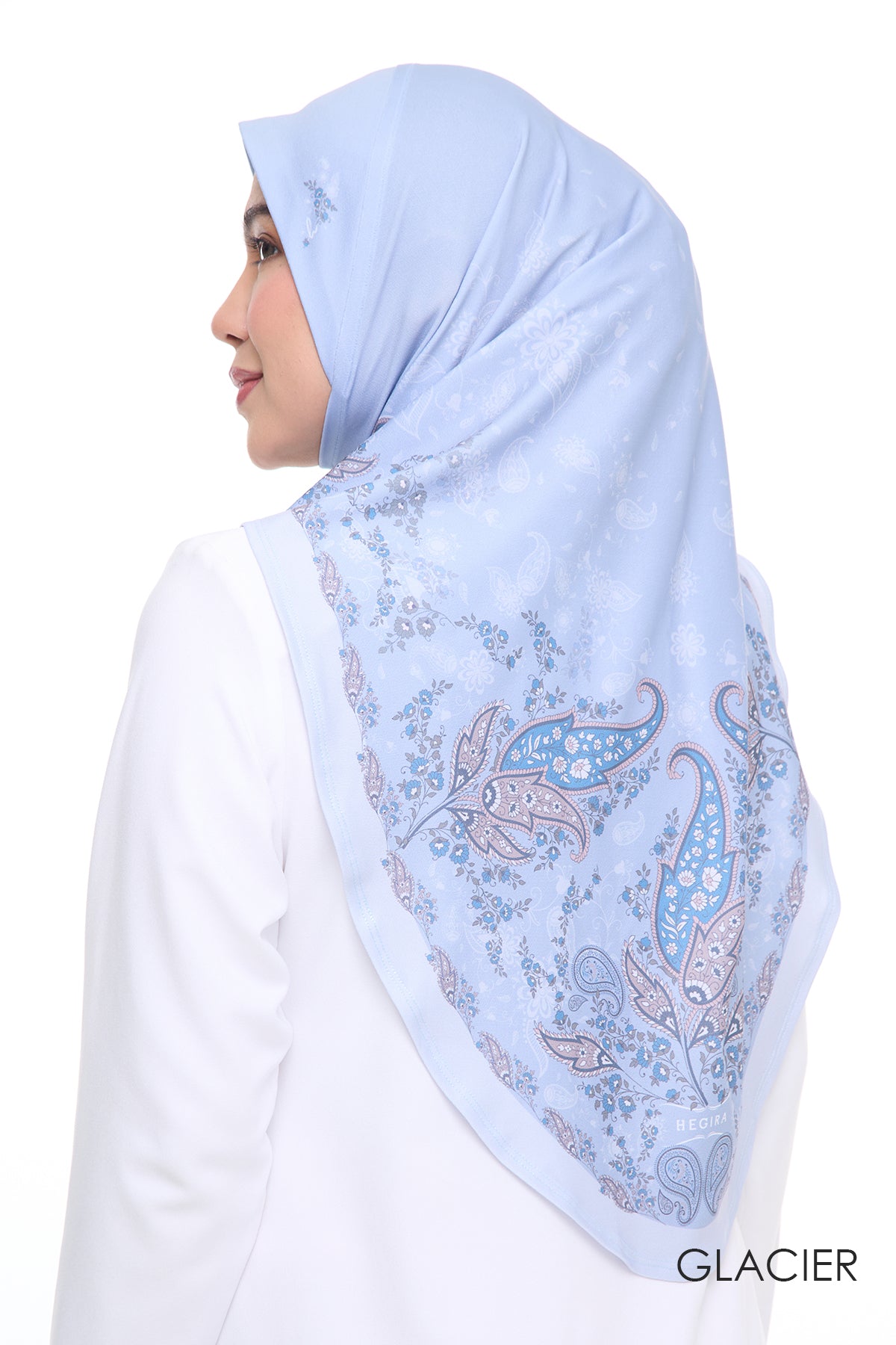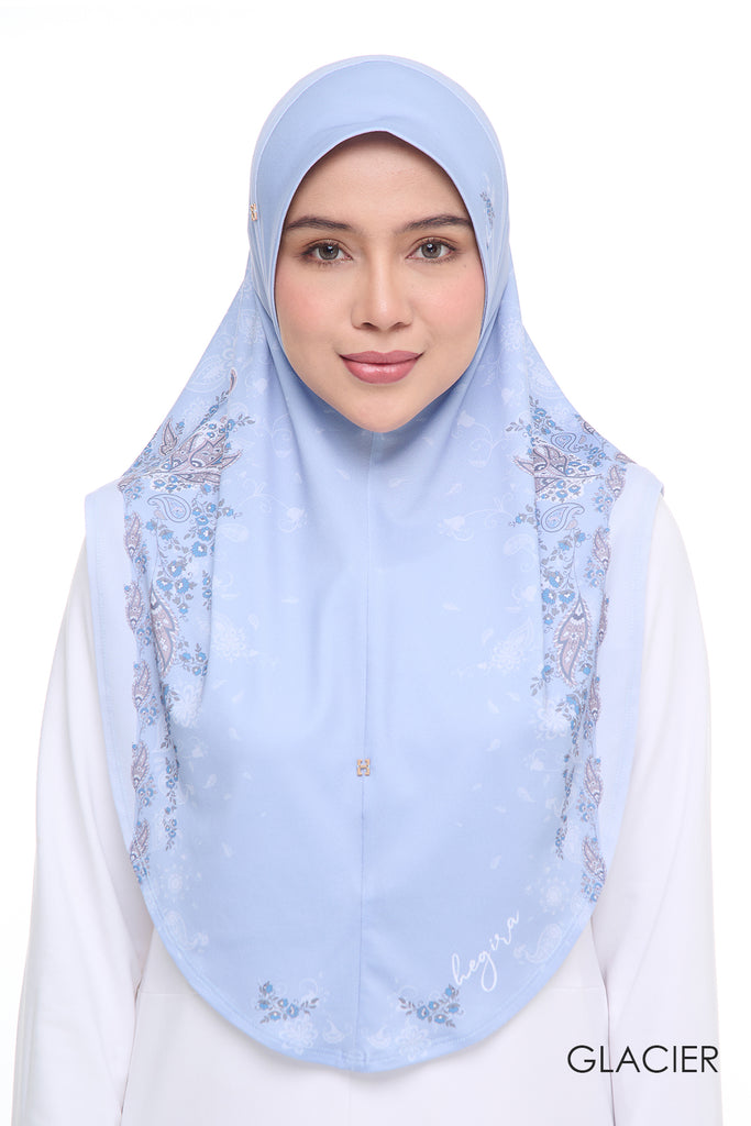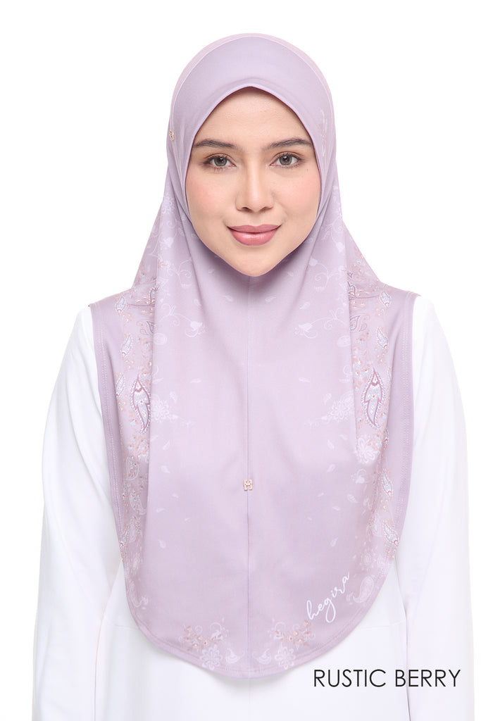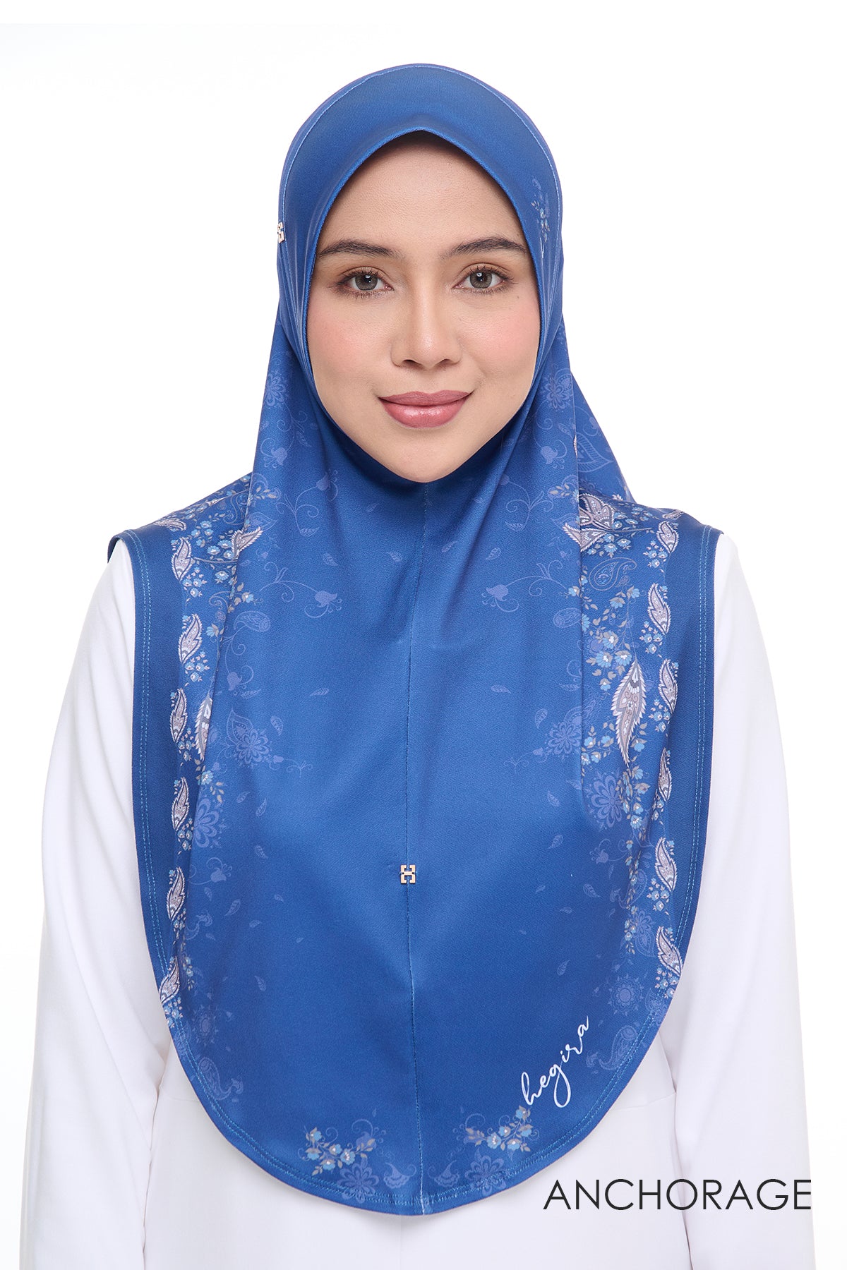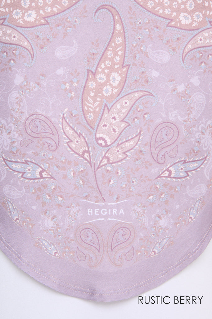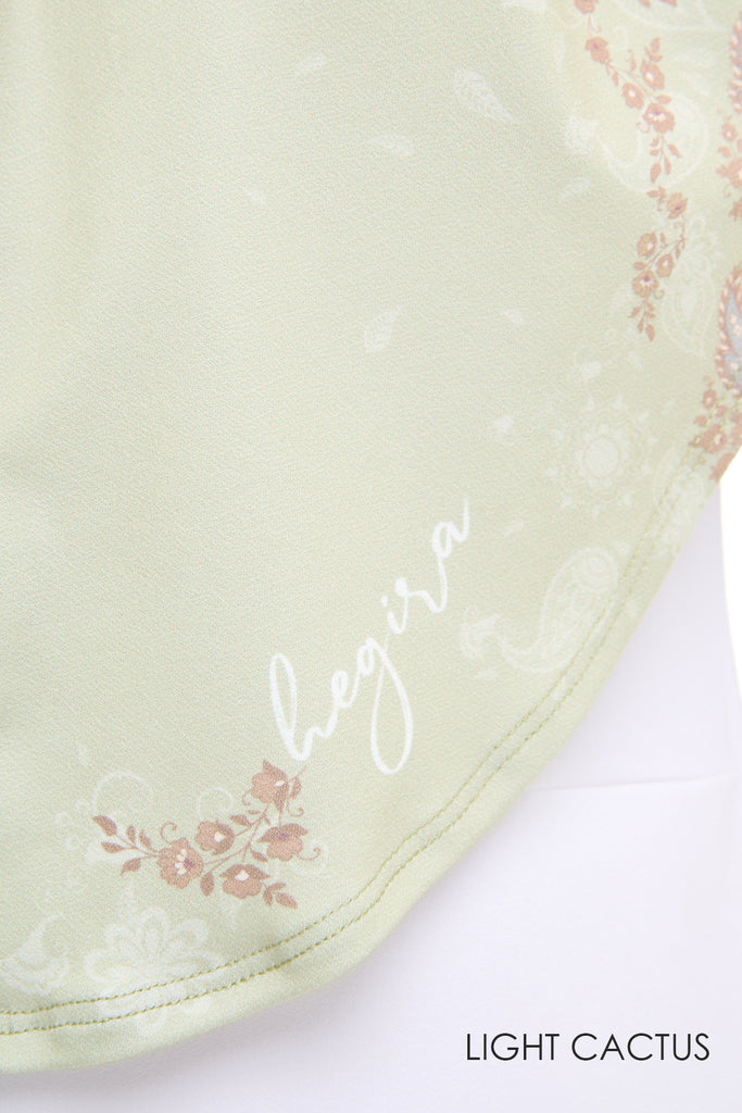 Made from moss crepe to ensure no-ironing needed and comes in a unique awning cutting for a slimmer face illusion. It adopts a seamless print pattern inspired teardrop-shaped motif, making it a timeless aesthetics.