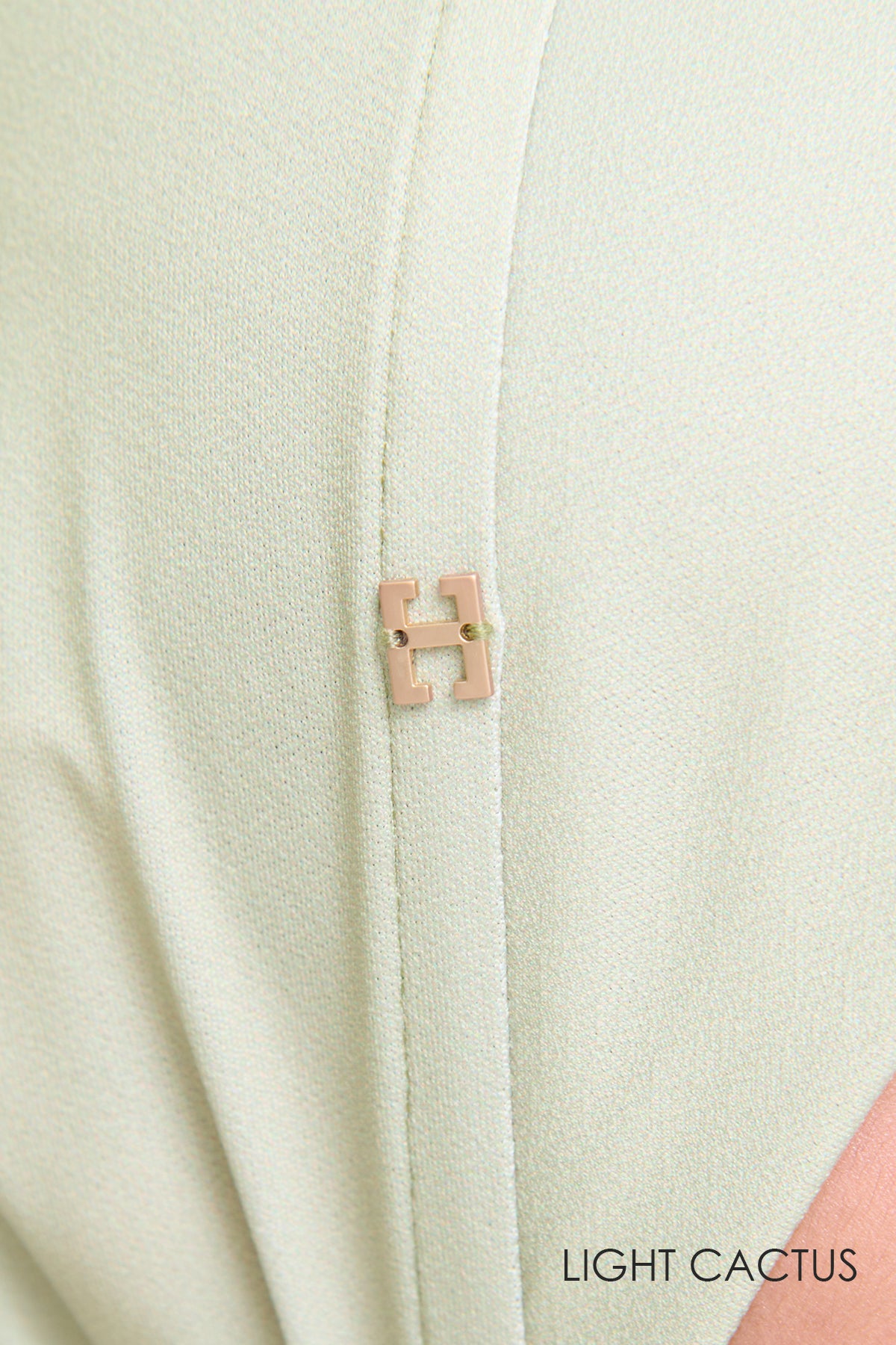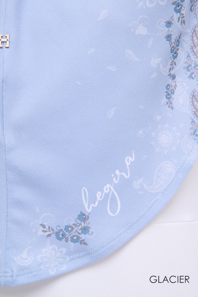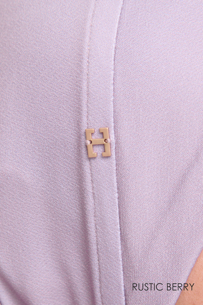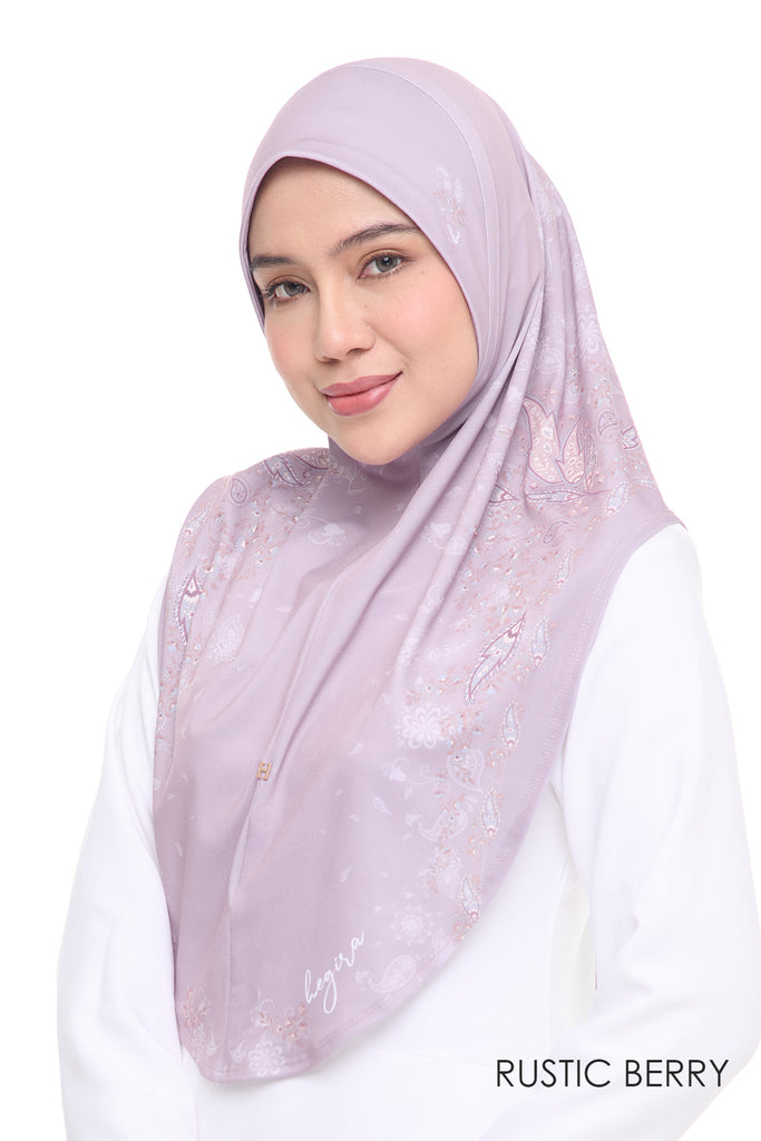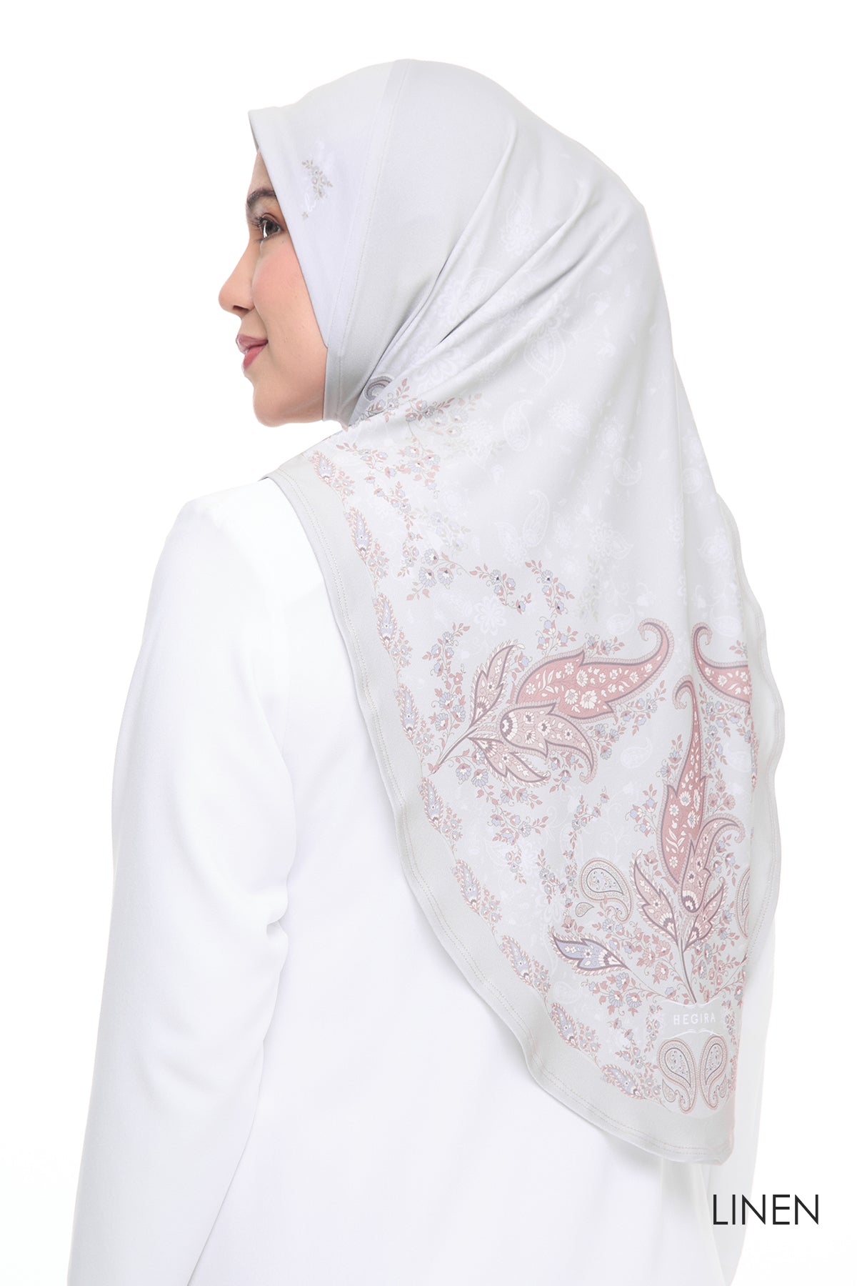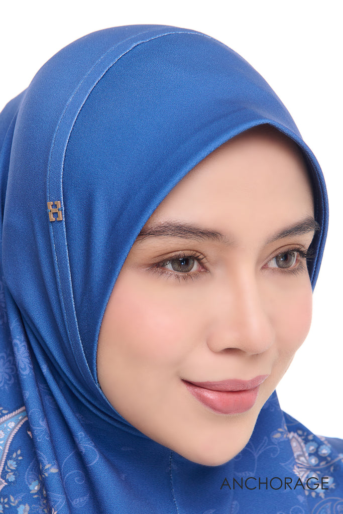 Made from moss crepe to ensure no-ironing needed and comes in a unique awning cutting for a slimmer face illusion. It adopts a seamless print pattern inspired teardrop-shaped motif, making it a timeless aesthetics.