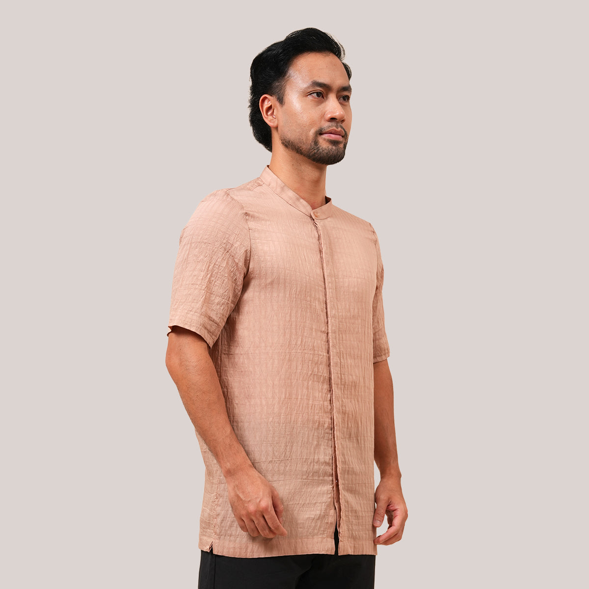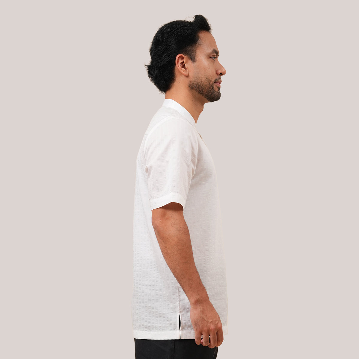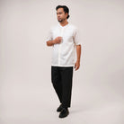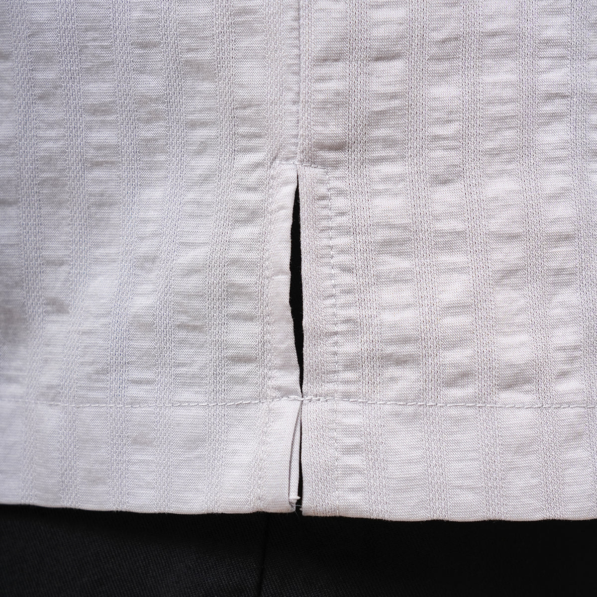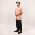 Azwaad Top is made from a blend of 83.7% Viscose and 16.3% Nylon with textured dobby fabric that gives a neat and comfortable feel. This short-sleeve casual top is designed to be versatile, making it suitable for both casual and formal occasions while maintaining a modest style. The hidden front buttons help keep the top neatly closed during movement, while the side slits provide extra comfort and ease of movement. The name Azwaad, derived from Arabic, means “black” and also symbolizes a “promise.”