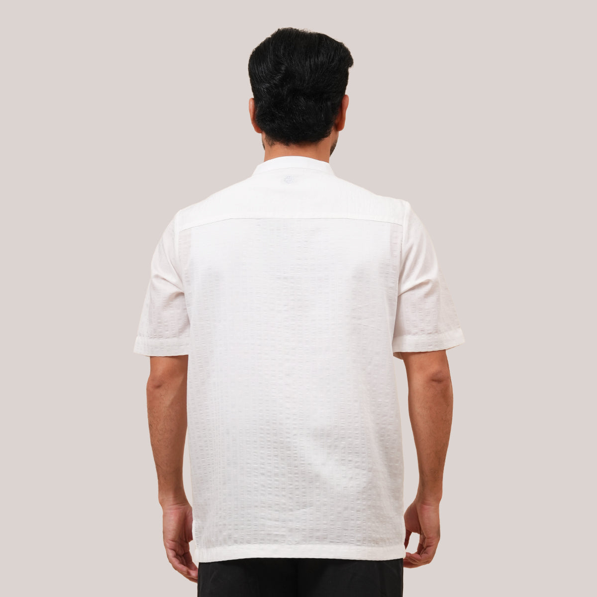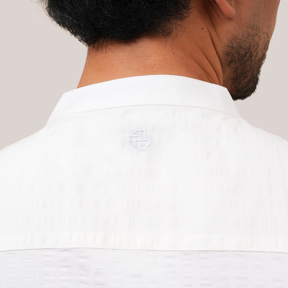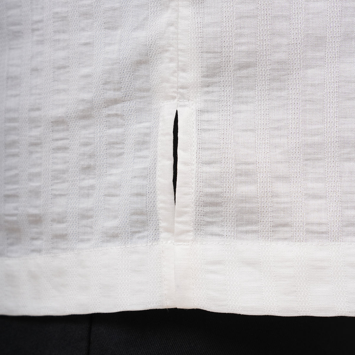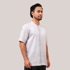 Azwaad Top is made from a blend of 83.7% Viscose and 16.3% Nylon with textured dobby fabric that gives a neat and comfortable feel. This short-sleeve casual top is designed to be versatile, making it suitable for both casual and formal occasions while maintaining a modest style. The hidden front buttons help keep the top neatly closed during movement, while the side slits provide extra comfort and ease of movement. The name Azwaad, derived from Arabic, means “black” and also symbolizes a “promise.”