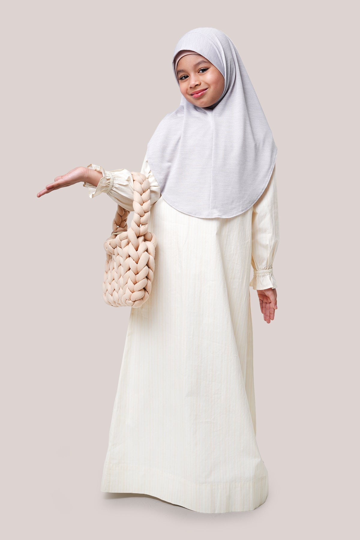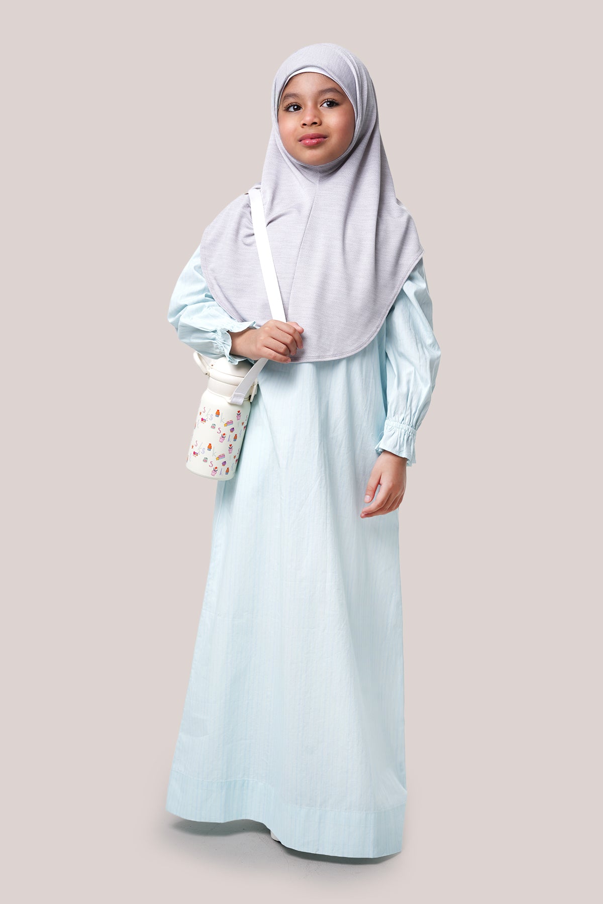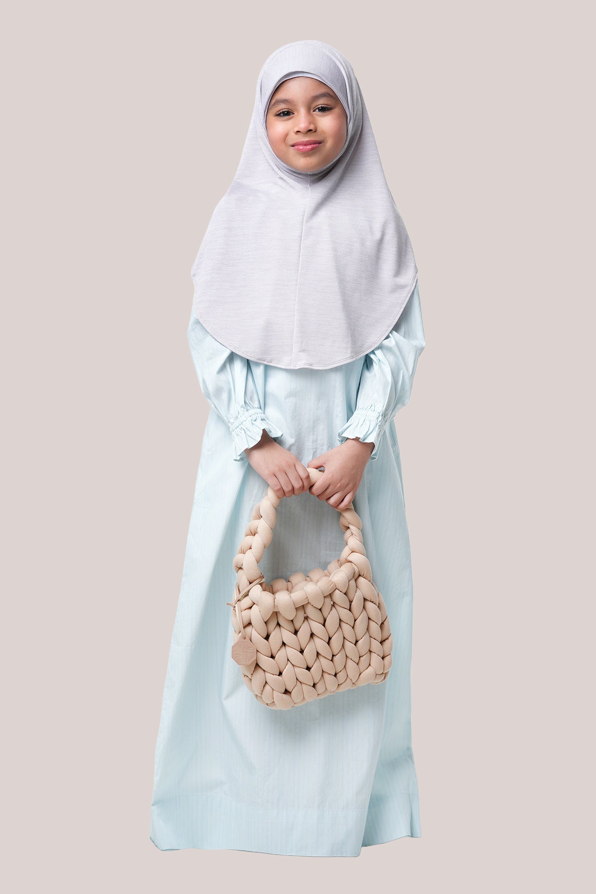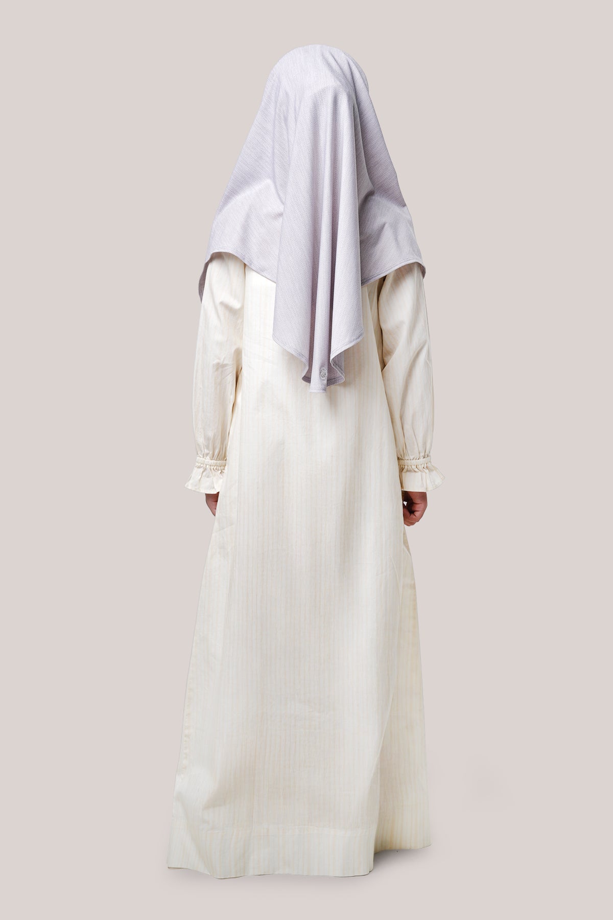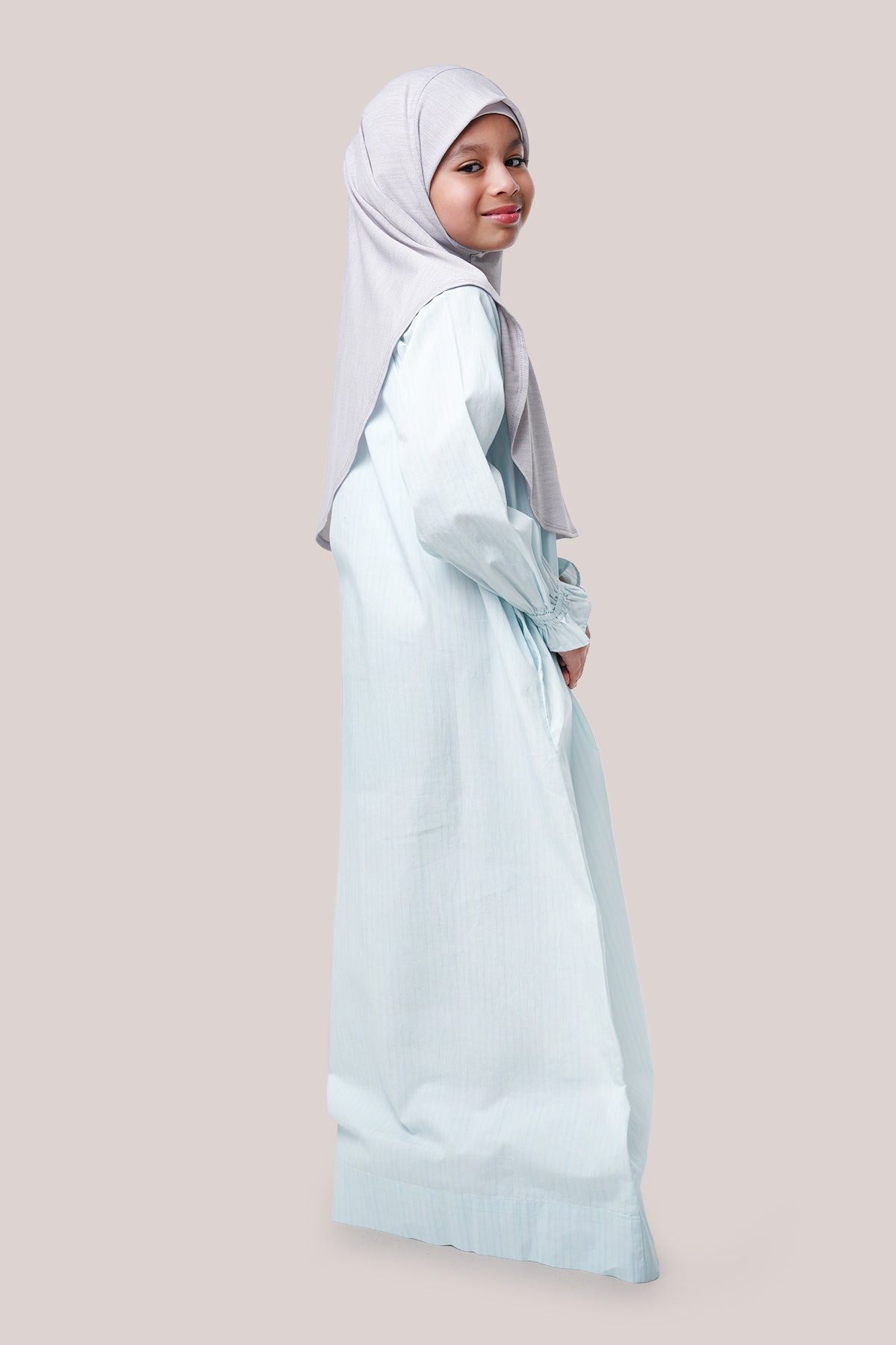 This modern children's jubah is comfortable, modest, and practical. Made from 100% cotton poplin, it feels soft, cool, and breathable—great for hot days. The loose, simple design gives full coverage while still looking neat and stylish. It includes elastic cuffs, gentle gathers for a tidy shape, raglan sleeves for easy movement, side pockets, and a back button for easy wearing. A perfect choice for a modest and stylish everyday look.