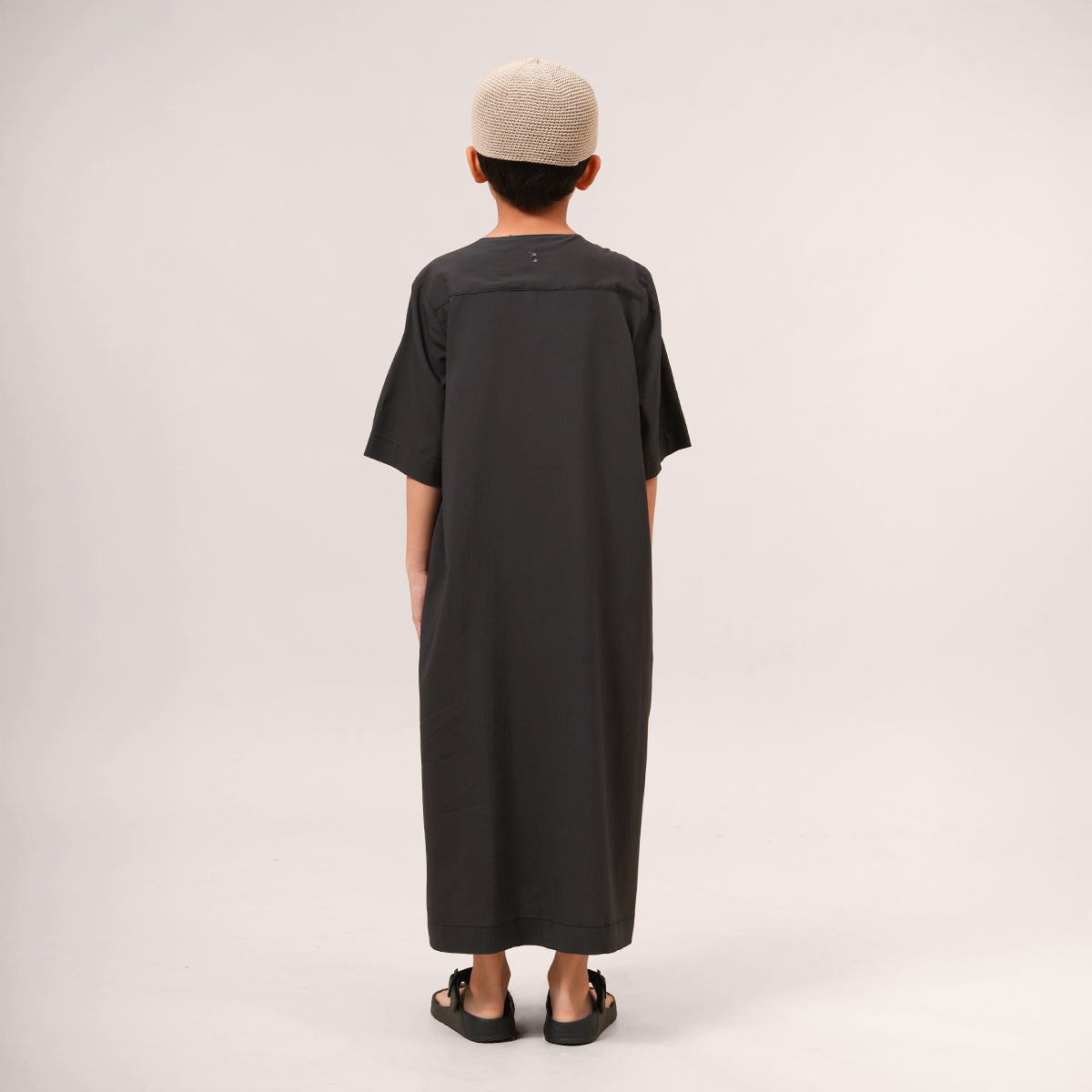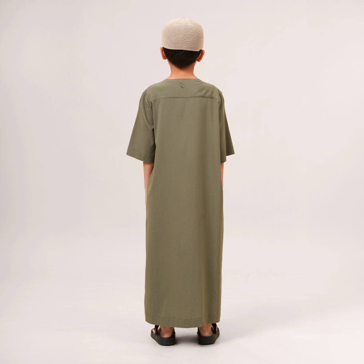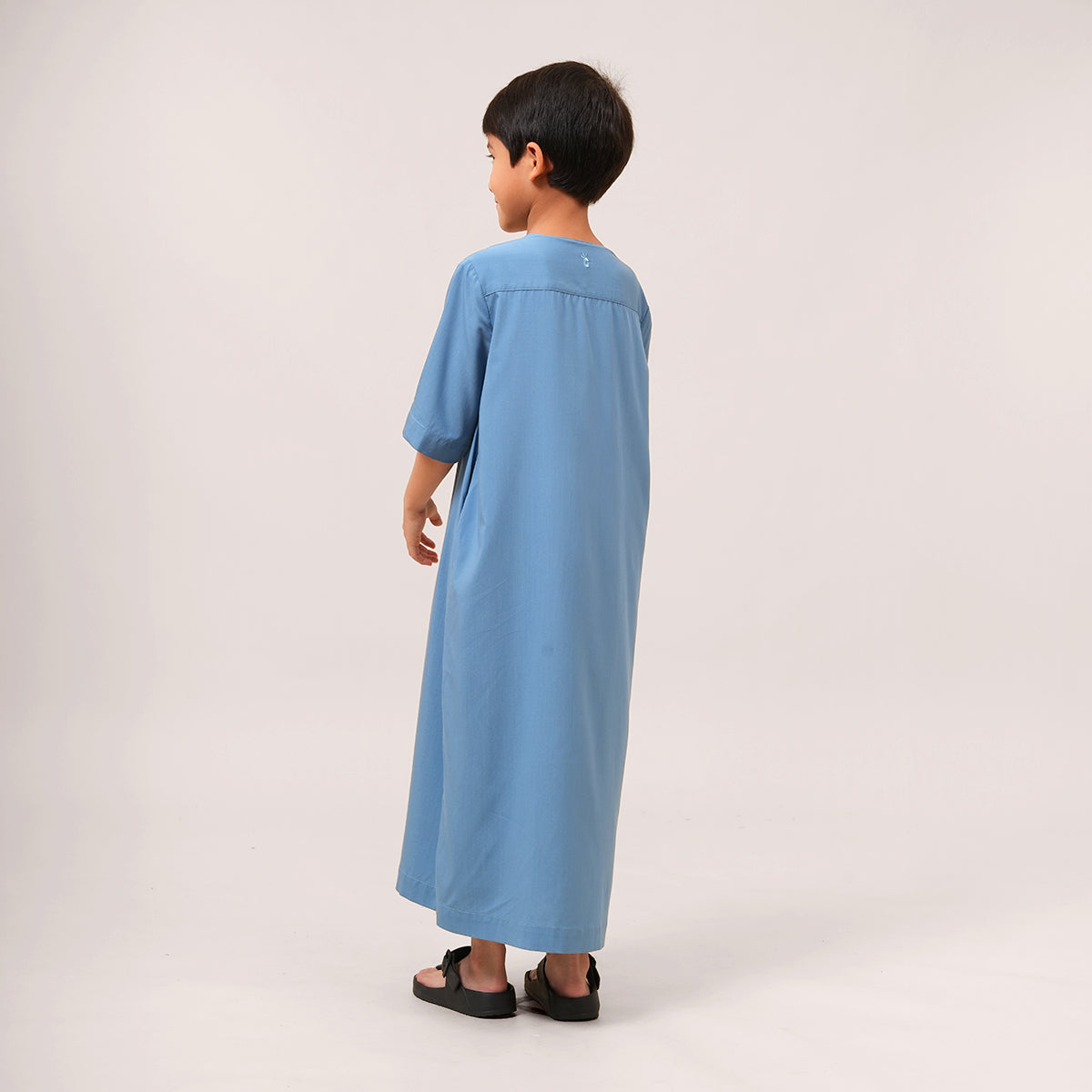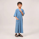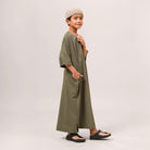 Mikhail Thobe Kids is soft, cool, and comfortable for active children. The stretch fabric allows easy movement while keeping its shape throughout the day. Designed with a front pocket and side slits for practicality, it can also be paired with the adult Saif Thobe Casual for a neat and matching Raya look.