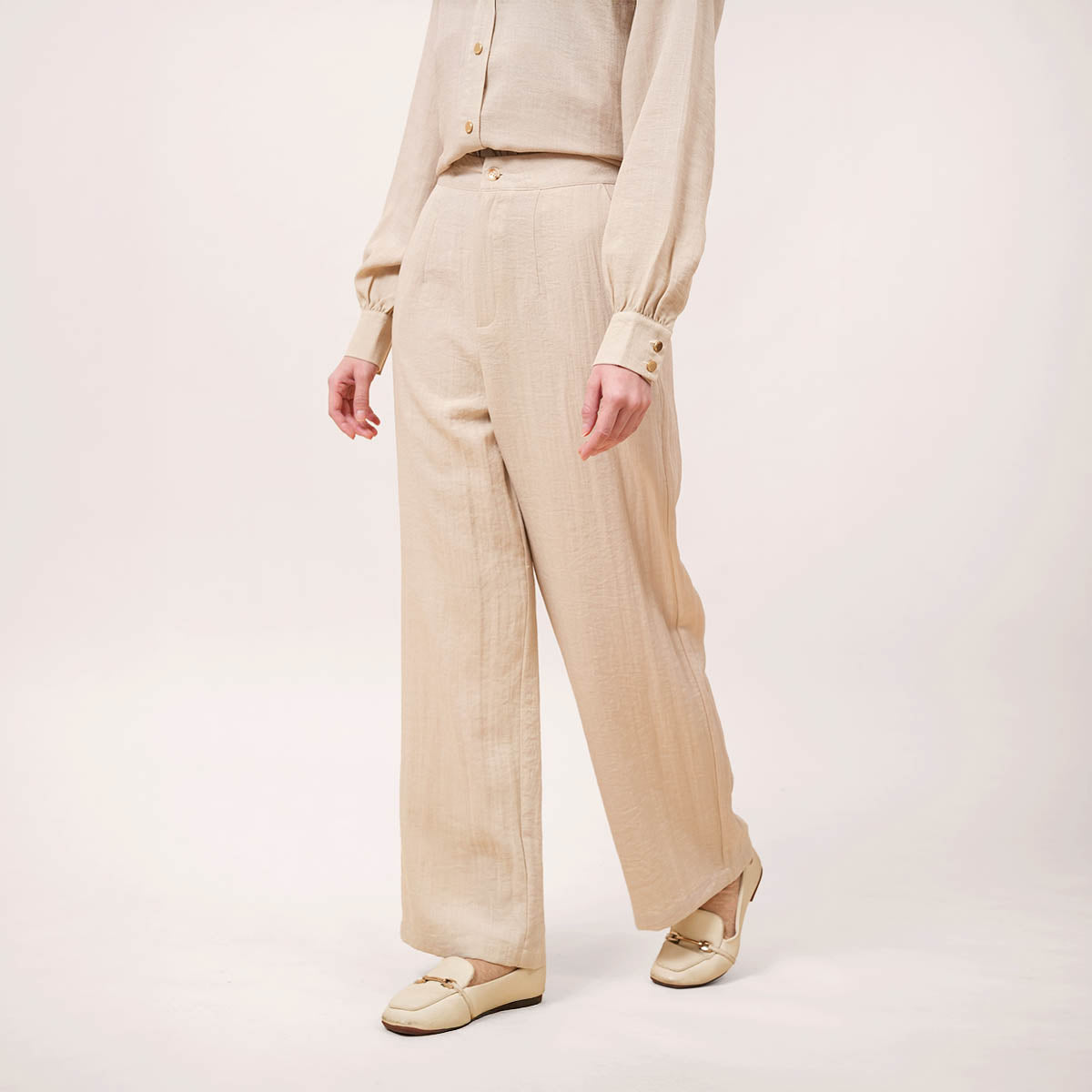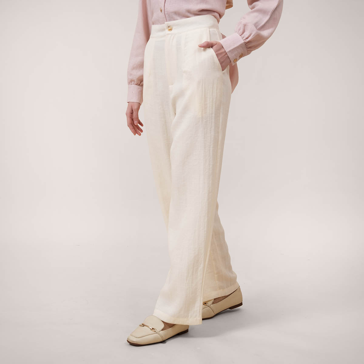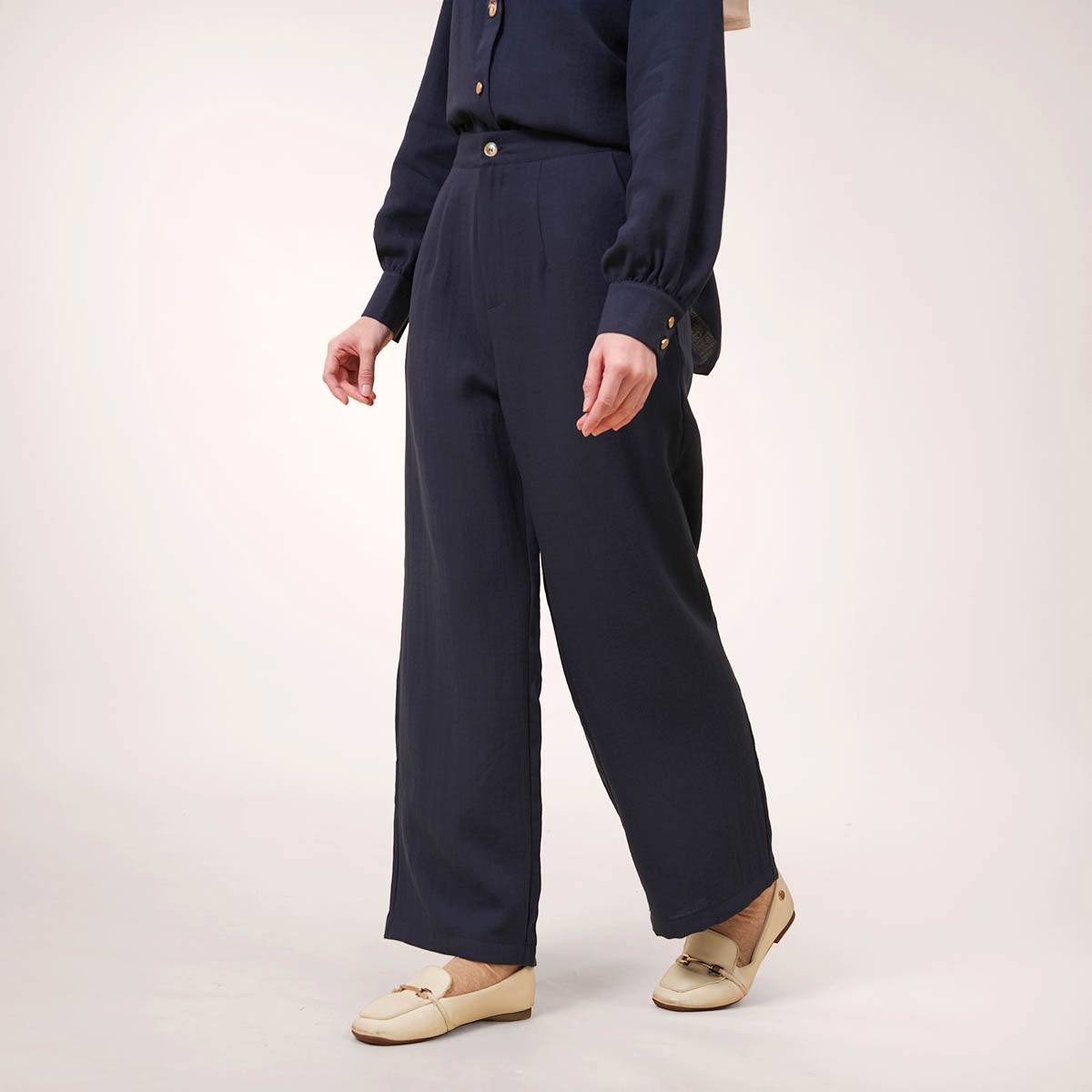 Designed to perfectly complement the Solena collection, this piece features a clean and modern loose silhouette that balances structure with comfort. The subtle slub texture adds gentle dimension to the fabric, elevating the overall look without compromising ease of wear. Created for versatile styling, it transitions effortlessly from work to casual outings, or as a complete premium set paired with the Solena Slub Blouse.