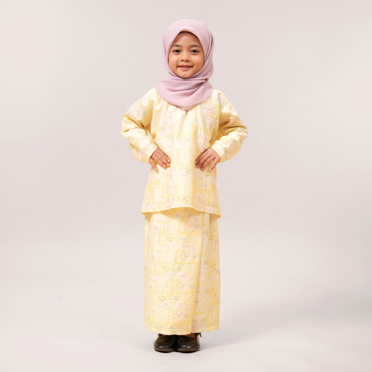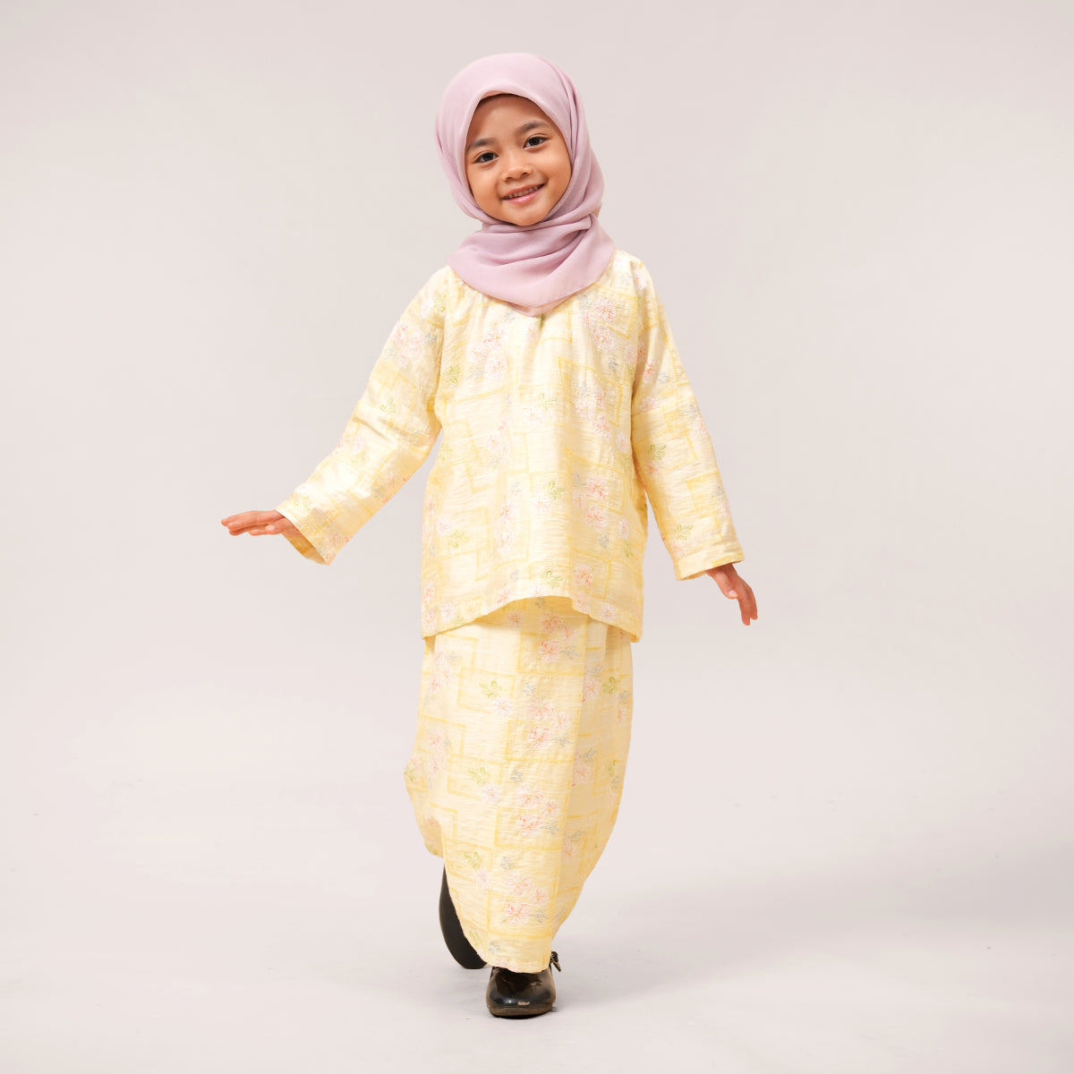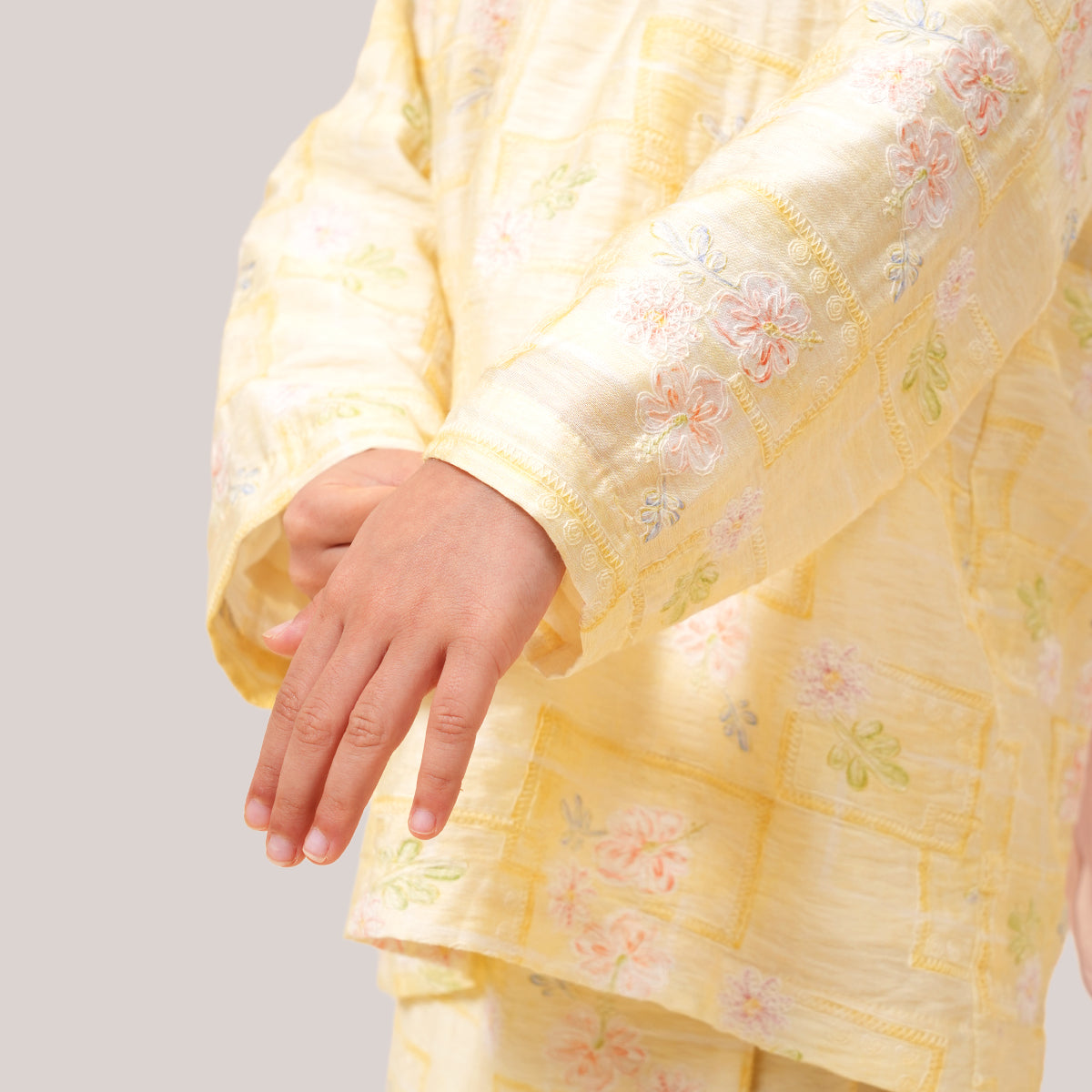 This Kurung Kedah features a modern, minimal design that is easy to style for any occasion. The loose silhouette offers modest coverage while allowing comfortable movement throughout the day. Detailed with delicate embroidery over prints, it adds a subtle premium touch. The lightweight, breathable fabric drapes softly without clinging, keeping you cool and comfortable from day to night.