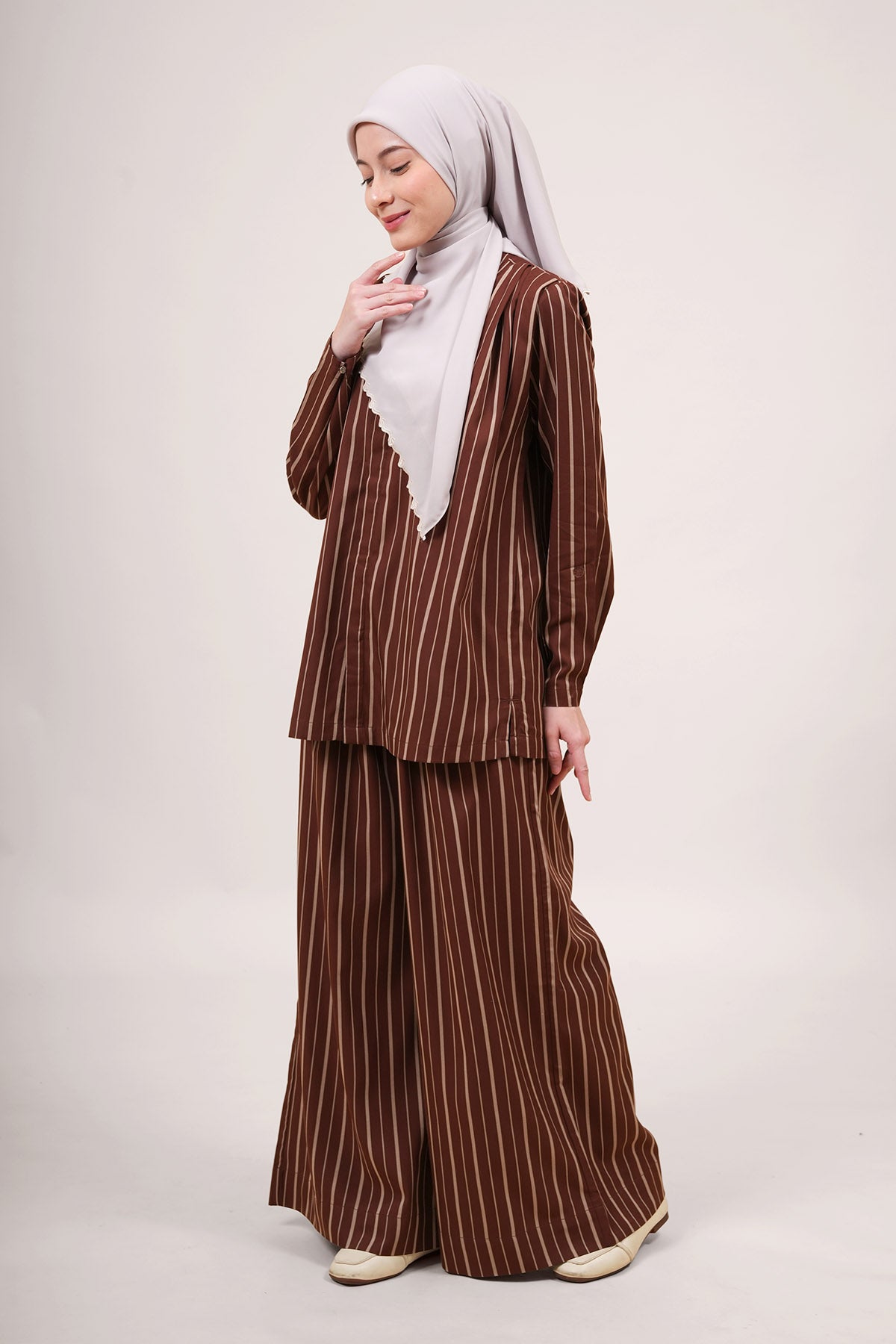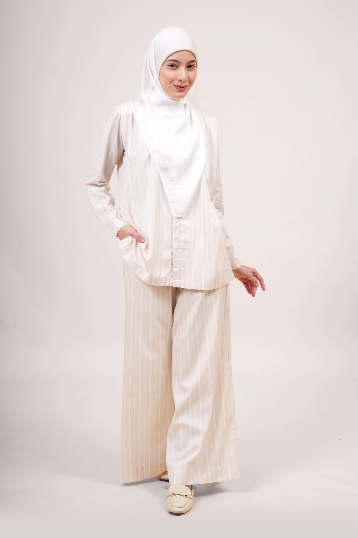 These full-length pants are made for comfort, modesty, and everyday wear. Crafted from a soft blend of 60% TENCEL™ and 40% polyester, they feel smooth on the skin, are gentle for sensitive skin, and help keep you dry all day. The fabric is also eco-friendly, made from sustainably sourced wood. Designed with a loose, modest cut, the pants are easy to pair with blouses, tunics, or outerwear. They feature a front button and zip for easy wear, side pockets for small items, and an adjustable waistband belt for a neat and comfortable fit.