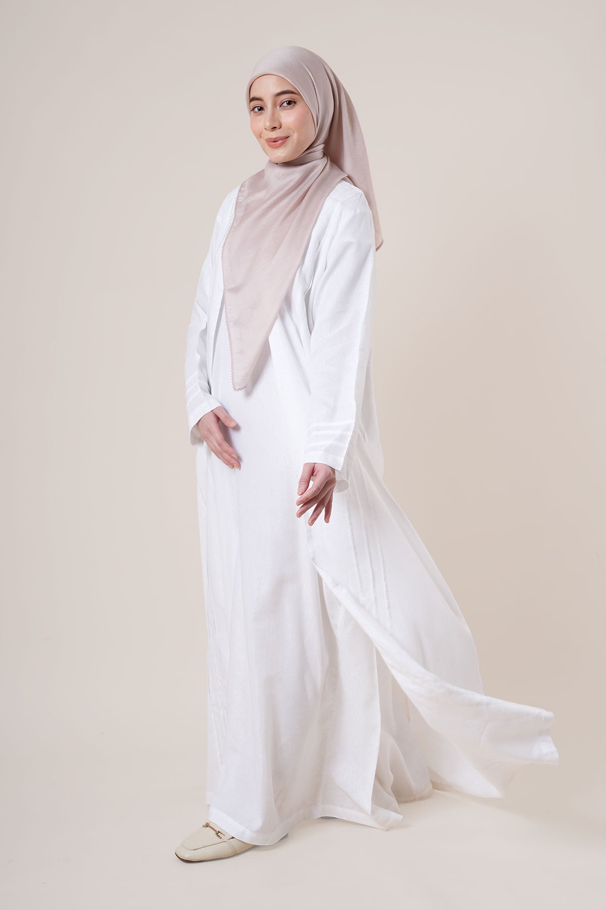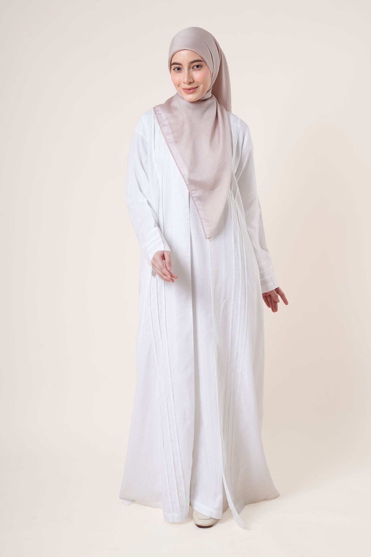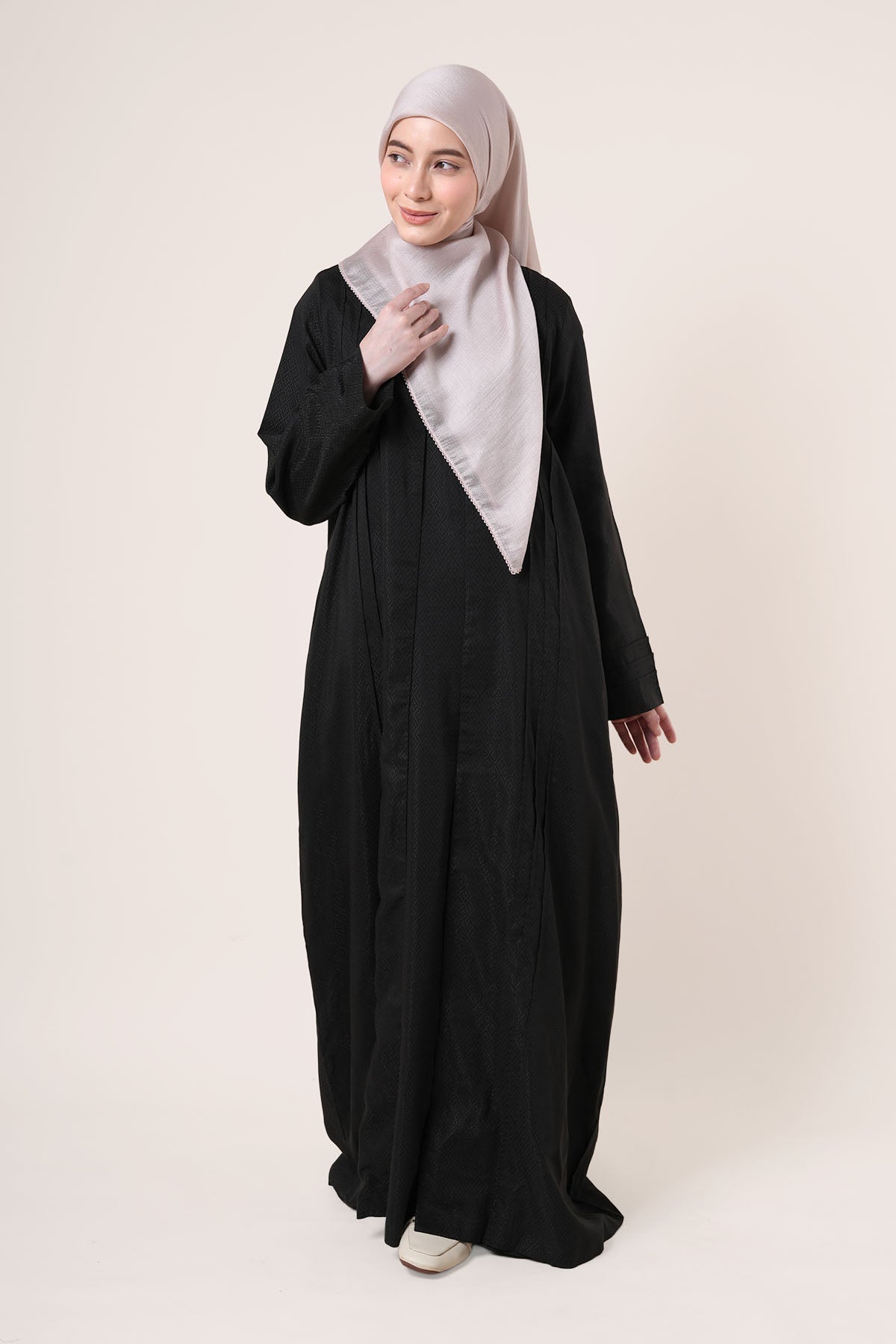 Made from wrinkle-resistant matte satin, the Adra Abaya Set combines effortless sophistication with functional modesty. The full-length outer abaya is paired with a sleeveless inner dress made from stretchable polyknit for comfortable layering. Designed for movement and ease, it includes side slits, a front opening, and elastic cuffs for wudhu convenience.