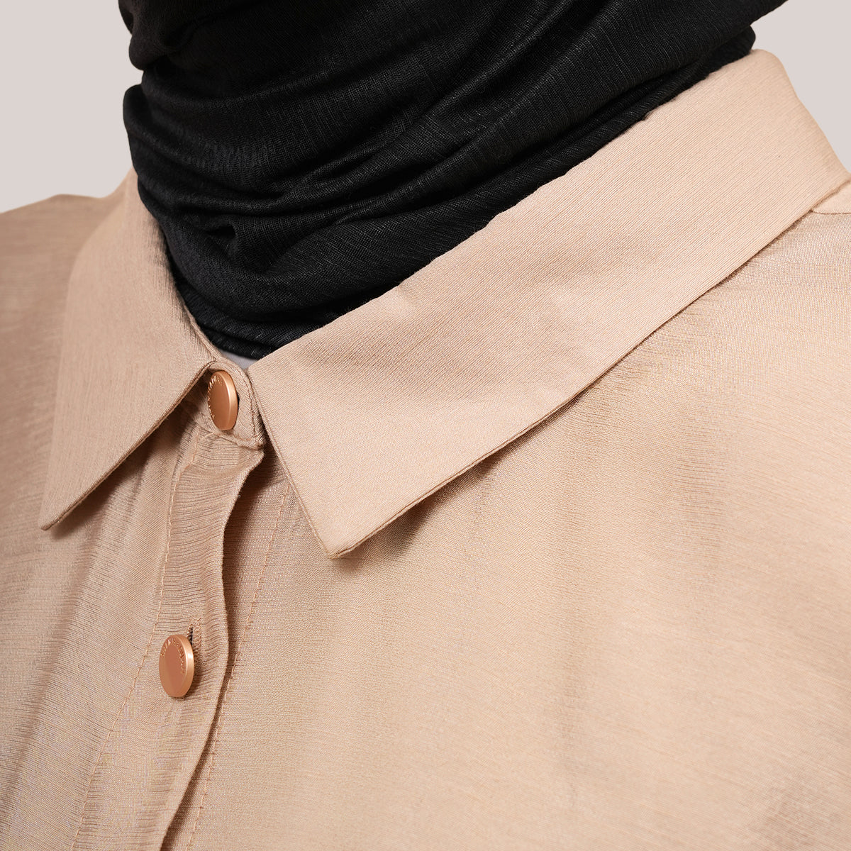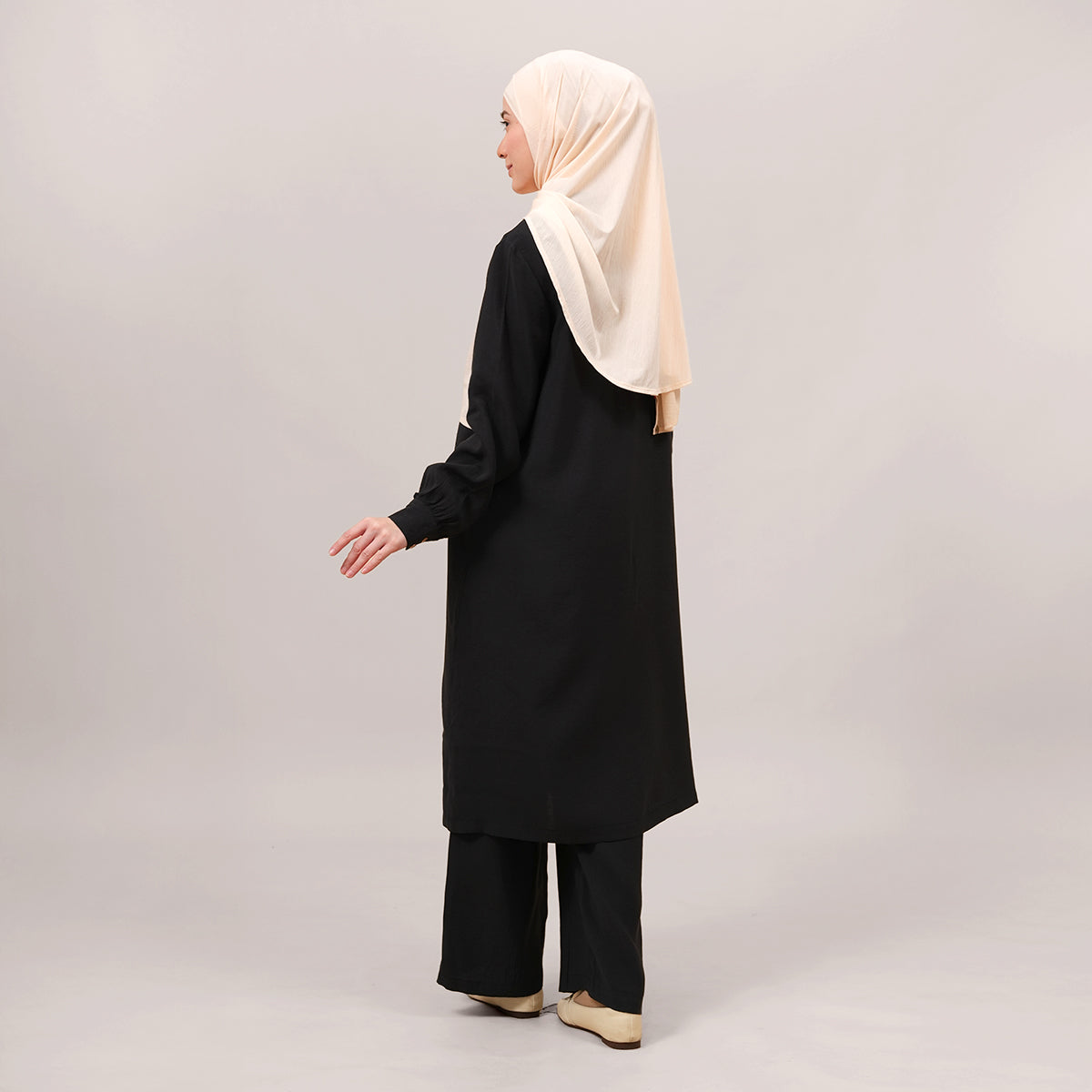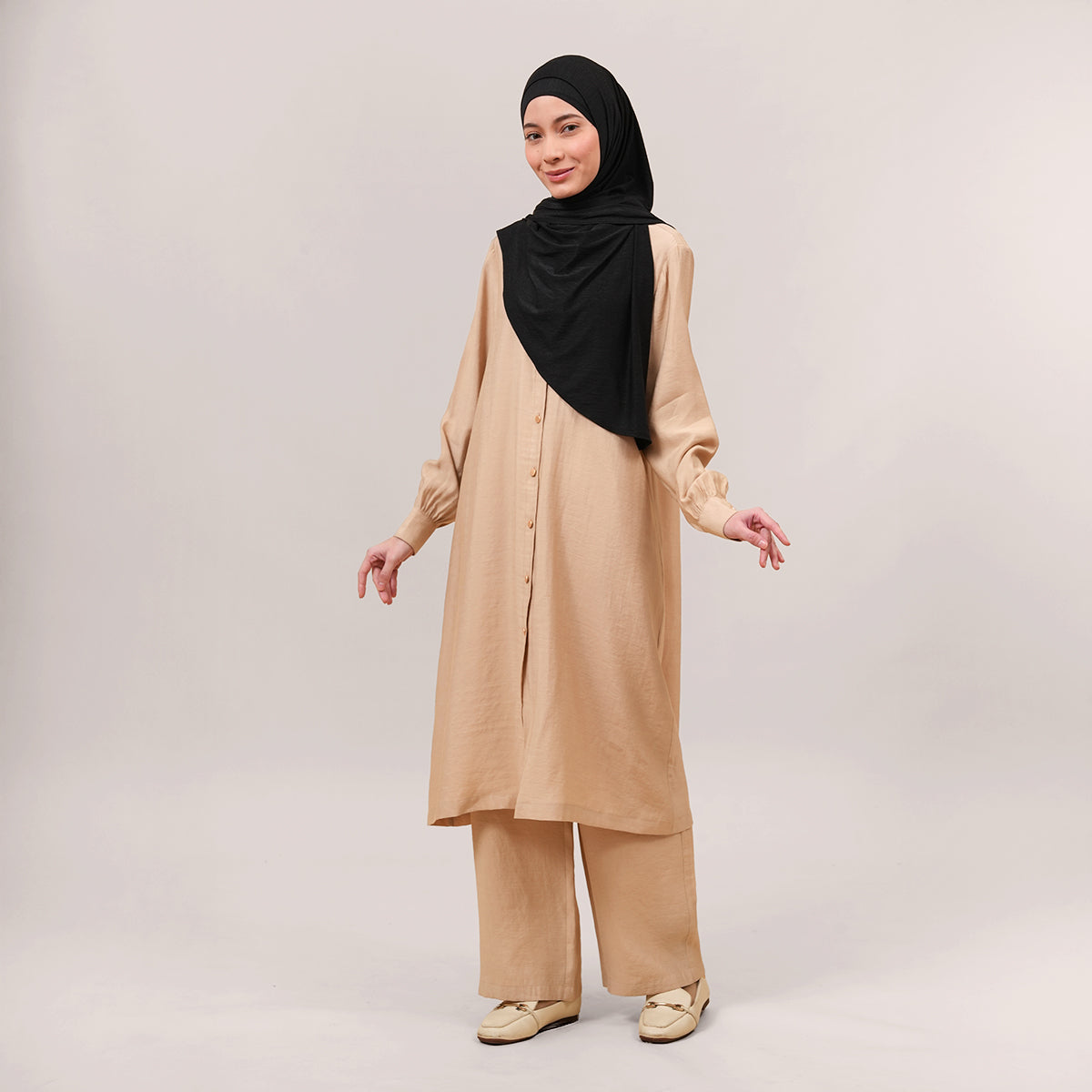 This blouse features a clean, modern minimalist design that blends everyday comfort with subtle elegance. The loose, straight cut offers all-day ease and versatile styling, while the lightweight yet structured fabric gives a neat, modest look without clinging to the body. Finished with buttoned cuffs for easy movement, it is soft, cool, and breathable—perfect for Malaysia’s warm climate and comfortable to wear throughout the day.