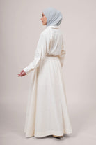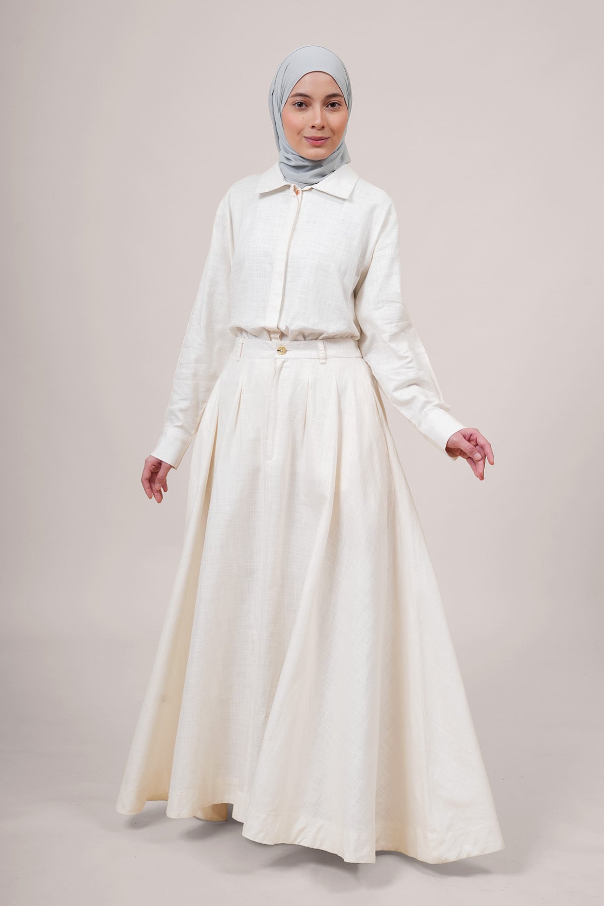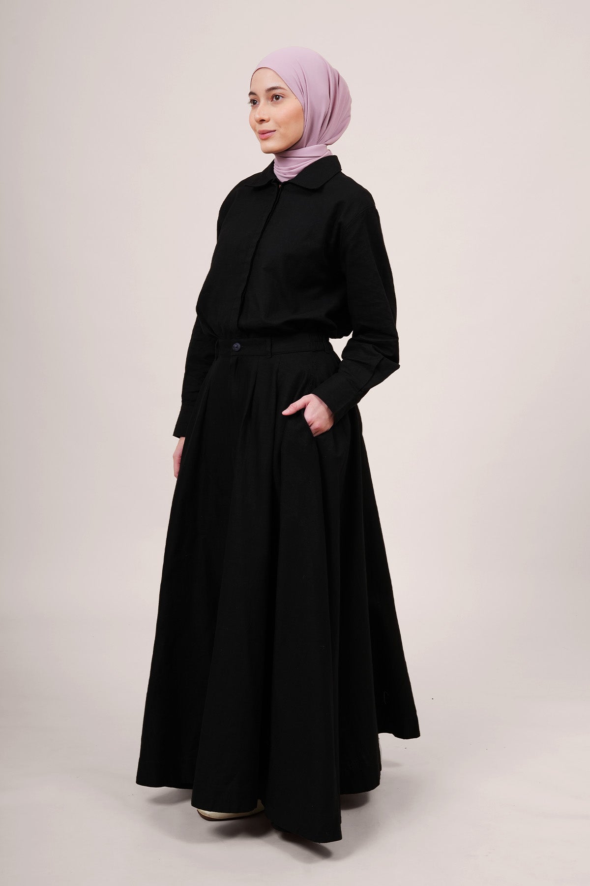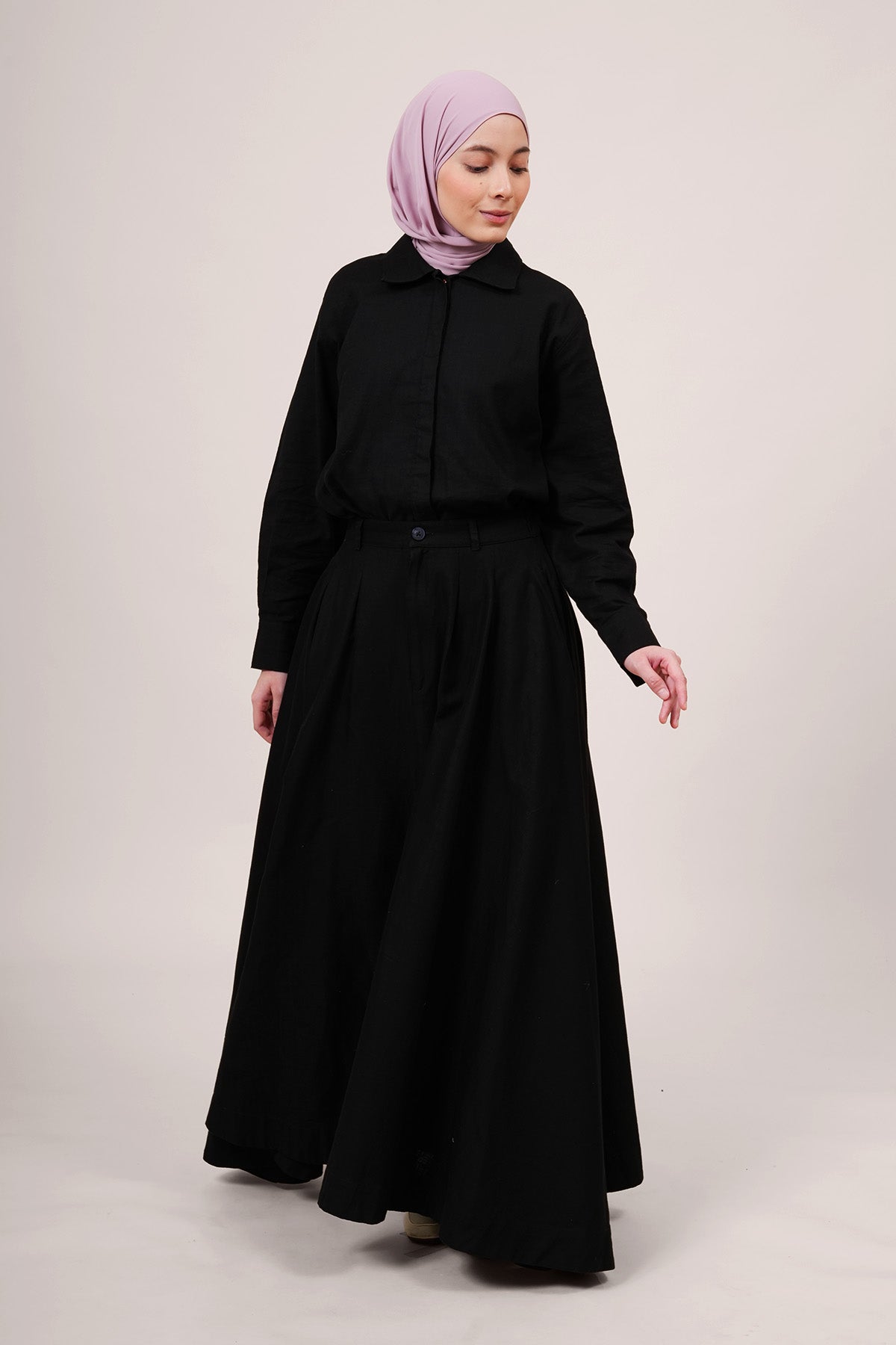 This skirt is made from 100% cotton, making it soft, breathable, and comfortable even in hot weather. It has a loose, long maxi cut for modest coverage and easy movement. Designed for everyday wear, it features front buttons and a zip for easy wearing, side pockets for small items, and an adjustable waistband for a better fit. You can pair it with petticoat pants or a skirt underneath for extra comfort and coverage. With its flowy shape, it gives a modest and feminine look, perfect for casual days.
