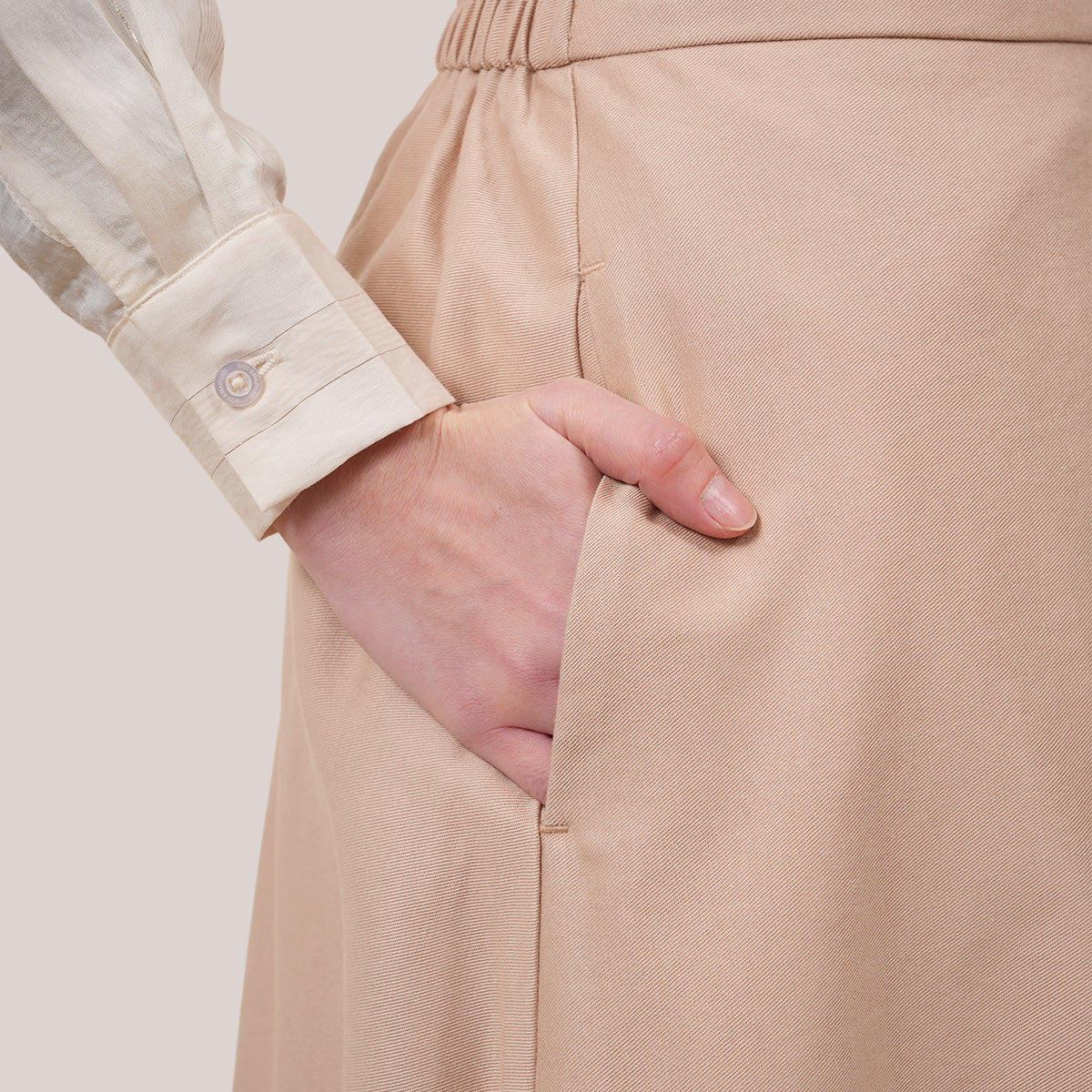 Designed to create a structured and neat silhouette, this A-Line skirt is versatile enough to take you effortlessly from the office to weekend outings. It features a firm fabric structure that provides modest coverage without clinging to the body, ensuring a polite and professional look. Lightweight and cooling for all-day wear, it is finished with a comfortable back-elastic waistband and a practical side zipper for easy wear.