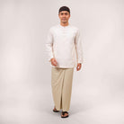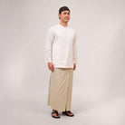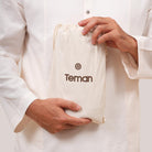 The Renaissance (Rena) & An-Nafees Jacquard Pelikat is made from 70% polyester and 30% viscose, featuring a modern jacquard texture inspired by the Renaissance theme. Designed with woven motifs and the signature “T” logo at the head of the kain, it reflects TEMAN’s exclusive identity. The elegant design makes it suitable to be worn as a samping with Baju Melayu. Each piece also comes with a canvas drawstring pouch for convenient storage, combining style and practicality in one.