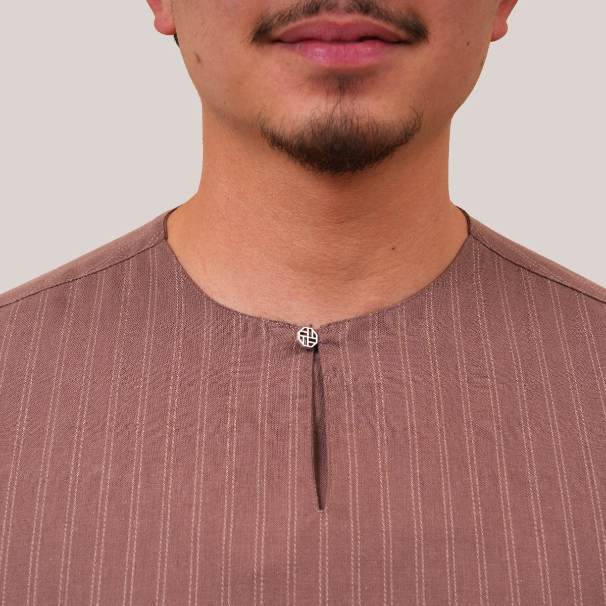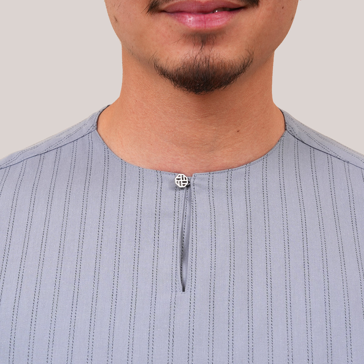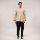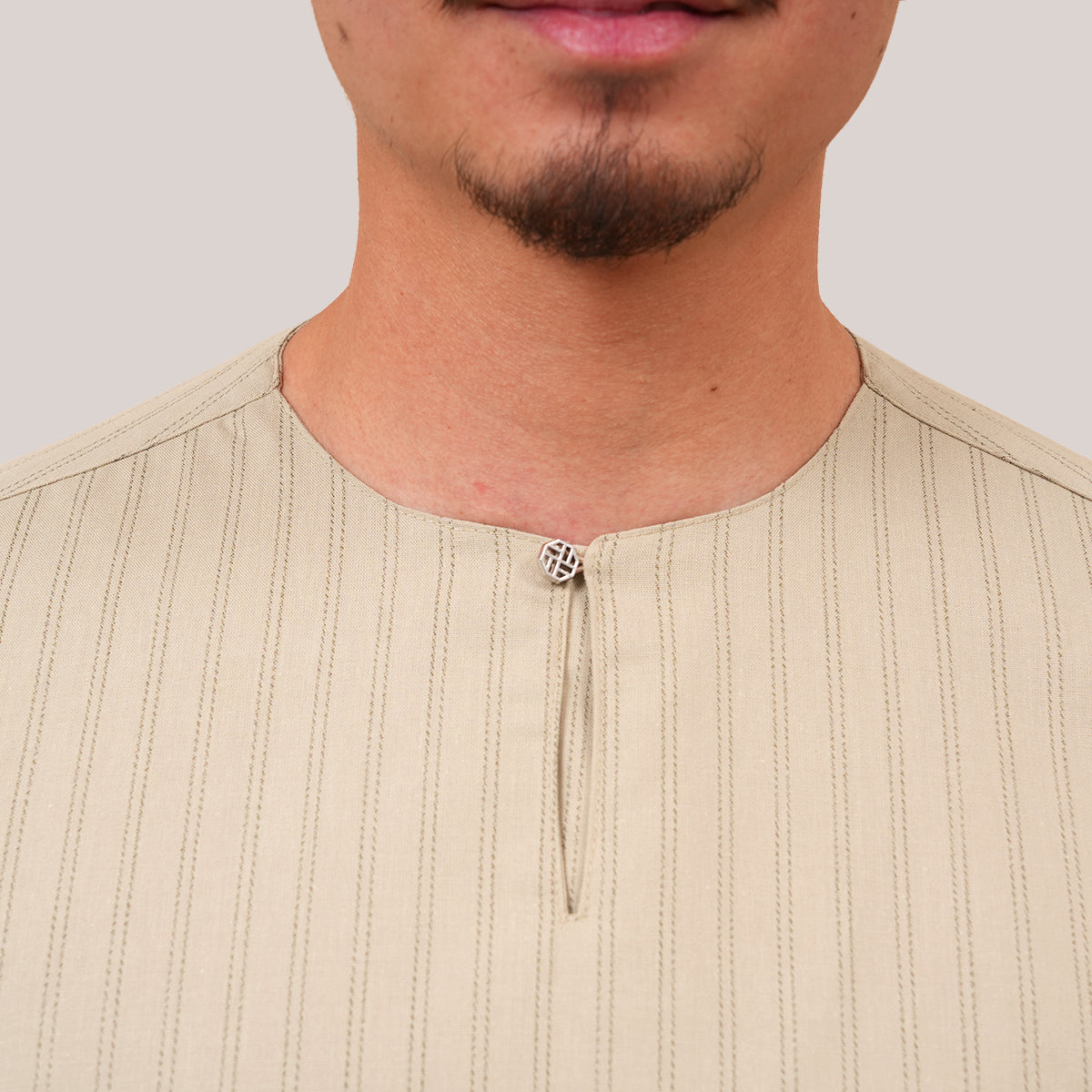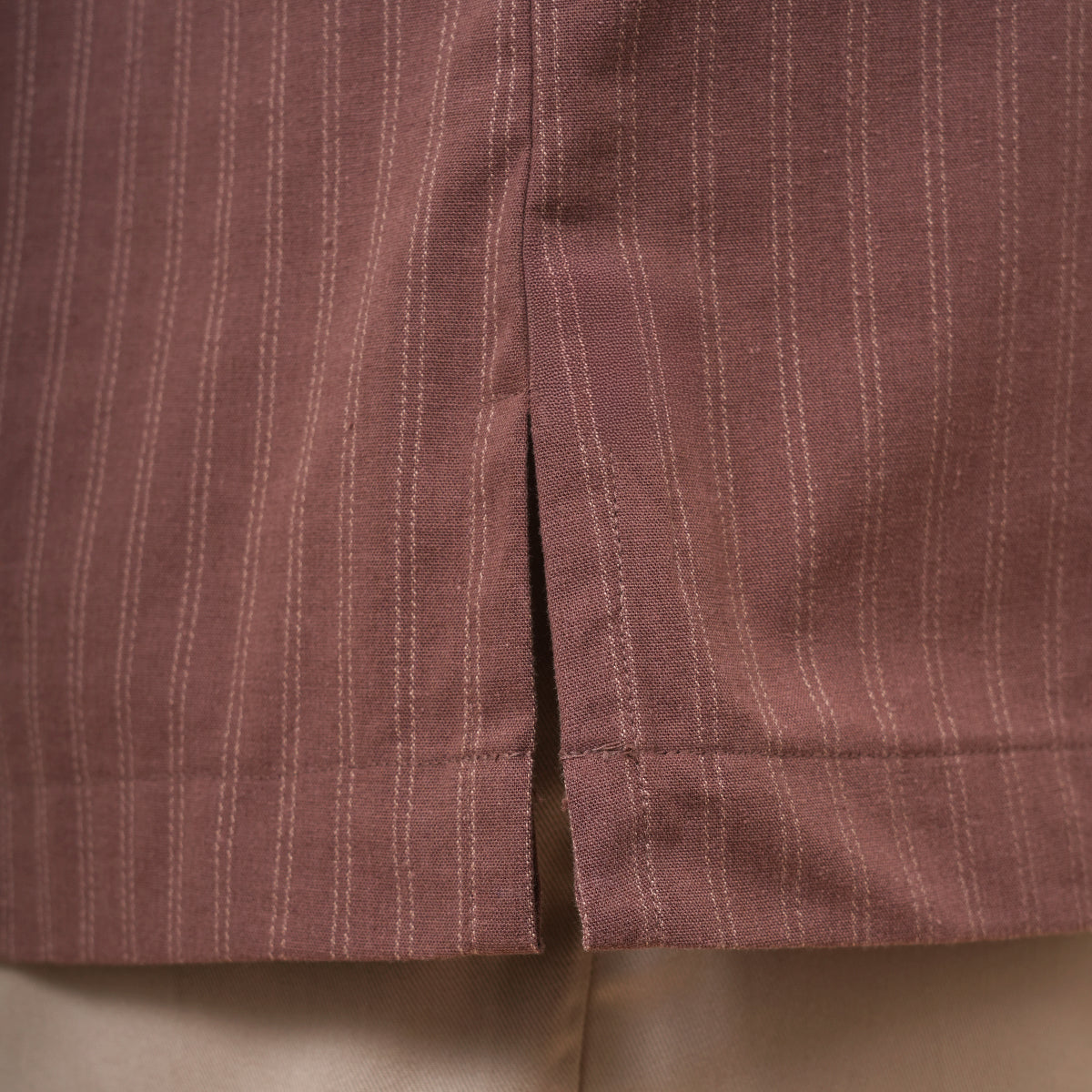 The Imran Top is made from a comfortable 60% cotton and 40% polyester blend, featuring a modern double-stripe design in trendy neutral and pastel colours. Inspired by the Aidan Top, it comes with a teluk belanga collared neckline for a subtle traditional touch. With side pockets, side slits, and a relaxed regular fit, this modest long-sleeve top offers comfort and ease of movement, making it suitable for ibadah, formal occasions, or everyday wear.