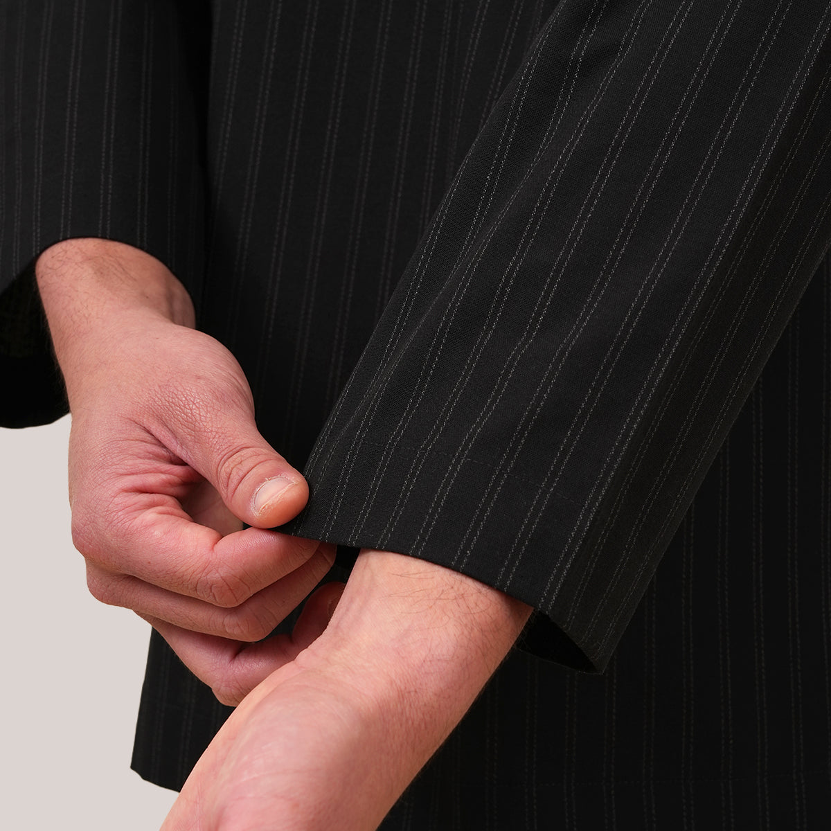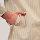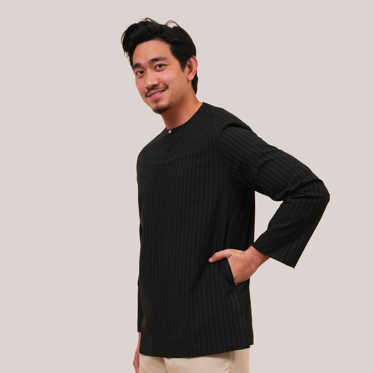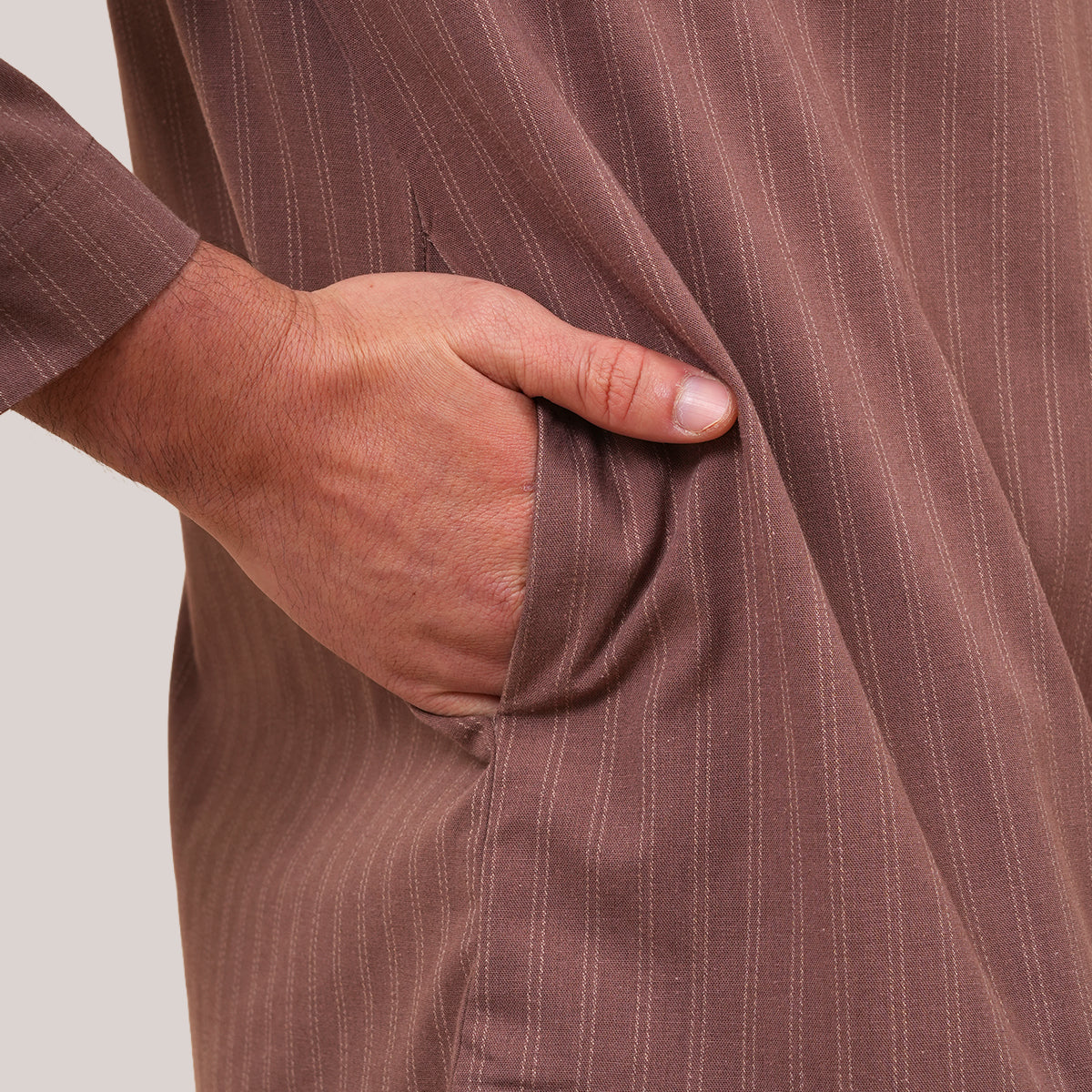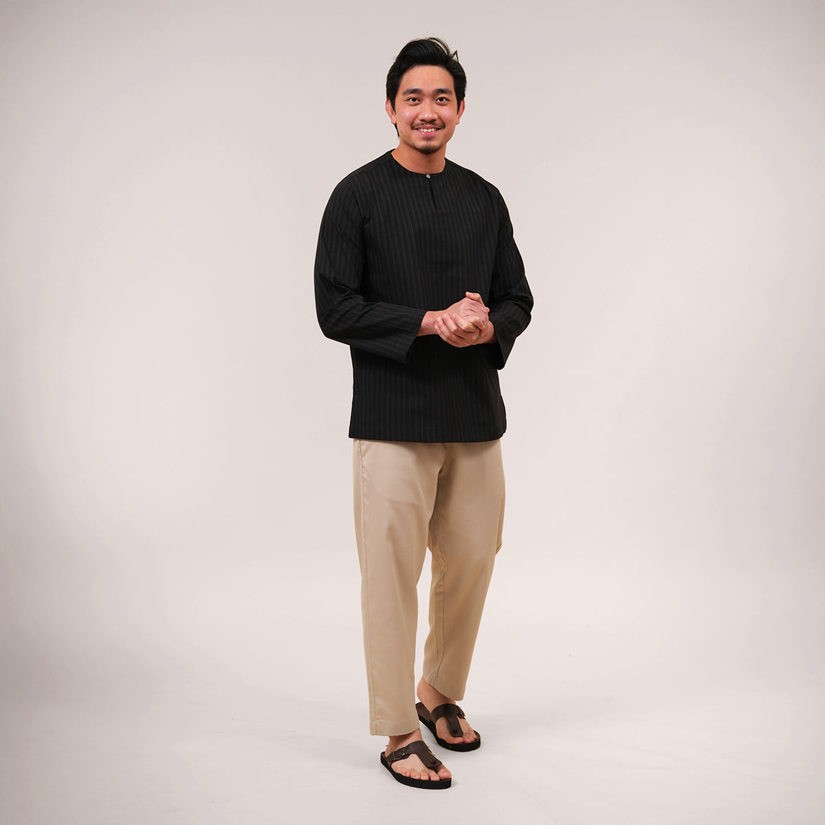 The Imran Top is made from a comfortable 60% cotton and 40% polyester blend, featuring a modern double-stripe design in trendy neutral and pastel colours. Inspired by the Aidan Top, it comes with a teluk belanga collared neckline for a subtle traditional touch. With side pockets, side slits, and a relaxed regular fit, this modest long-sleeve top offers comfort and ease of movement, making it suitable for ibadah, formal occasions, or everyday wear.